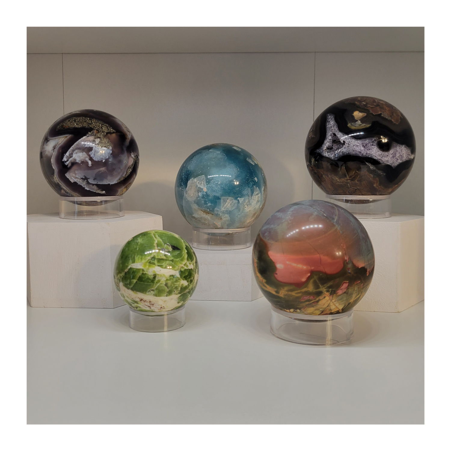 Display items for spheres, slabs, specimens and even carvings.