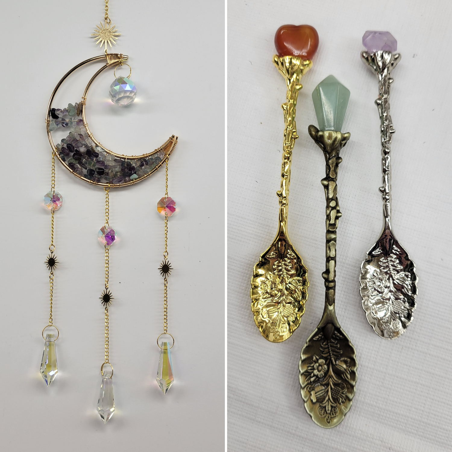 Suncatchers, hair pins, spoons, keychains and other crystal goodies