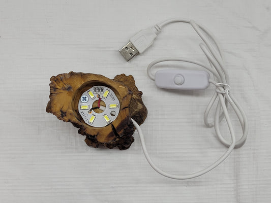 Lighted sphere stand - wood stump