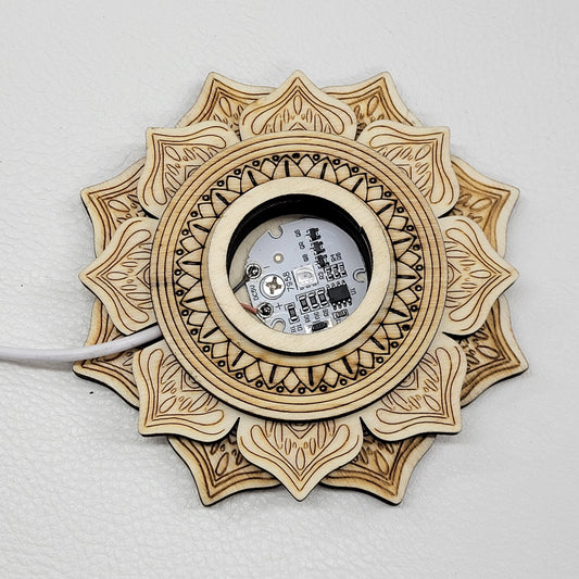 Lighted sphere stand - Wood lotus