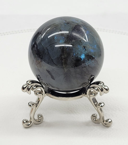 Metal sphere stand w/ scroll legs