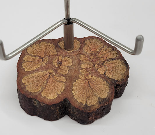 Crystal display stand with funky wood base