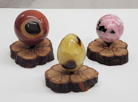Crystal sphere stand with funky wood base