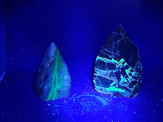 Polished crystals and crystal specimen that are UV reactive or Phosphorescent.