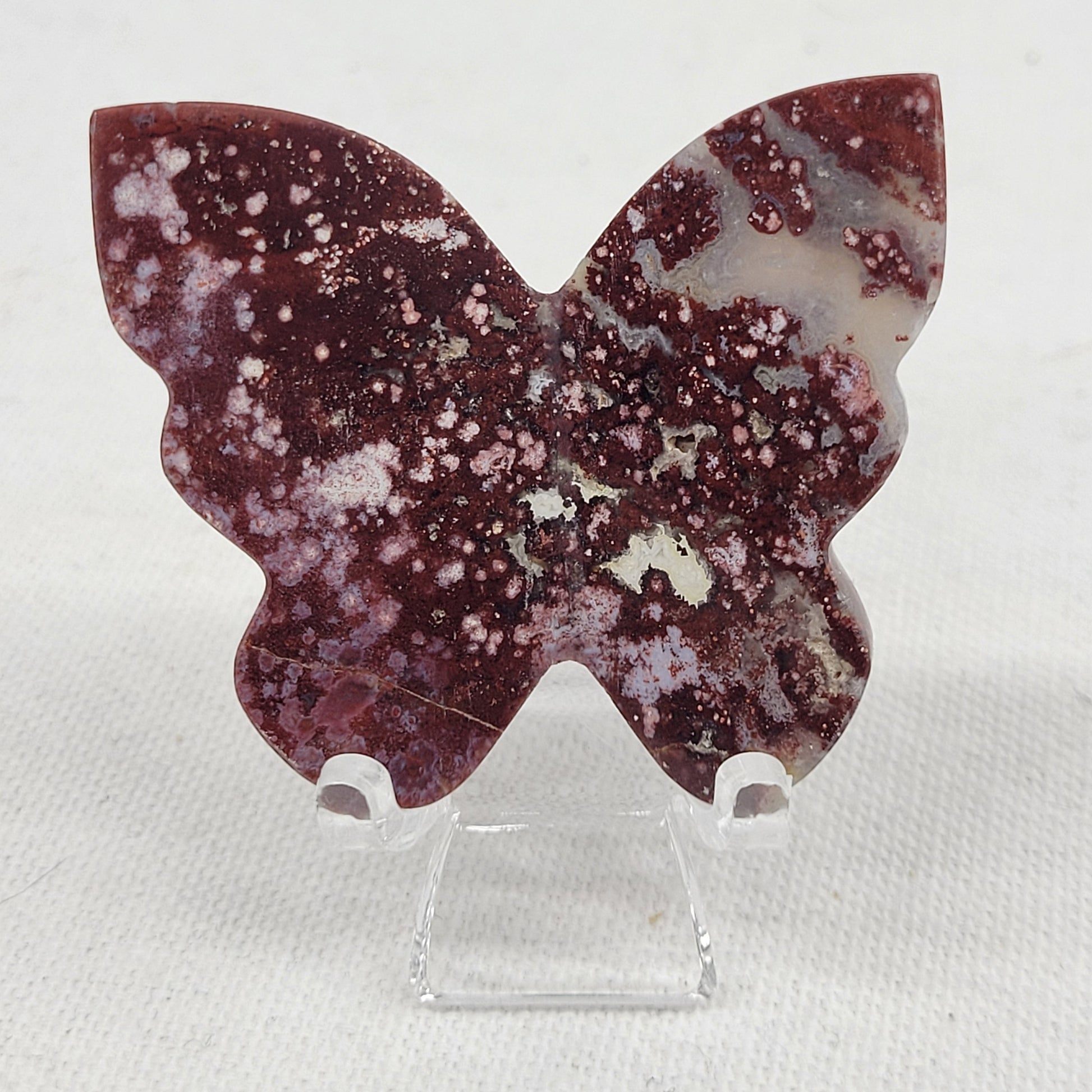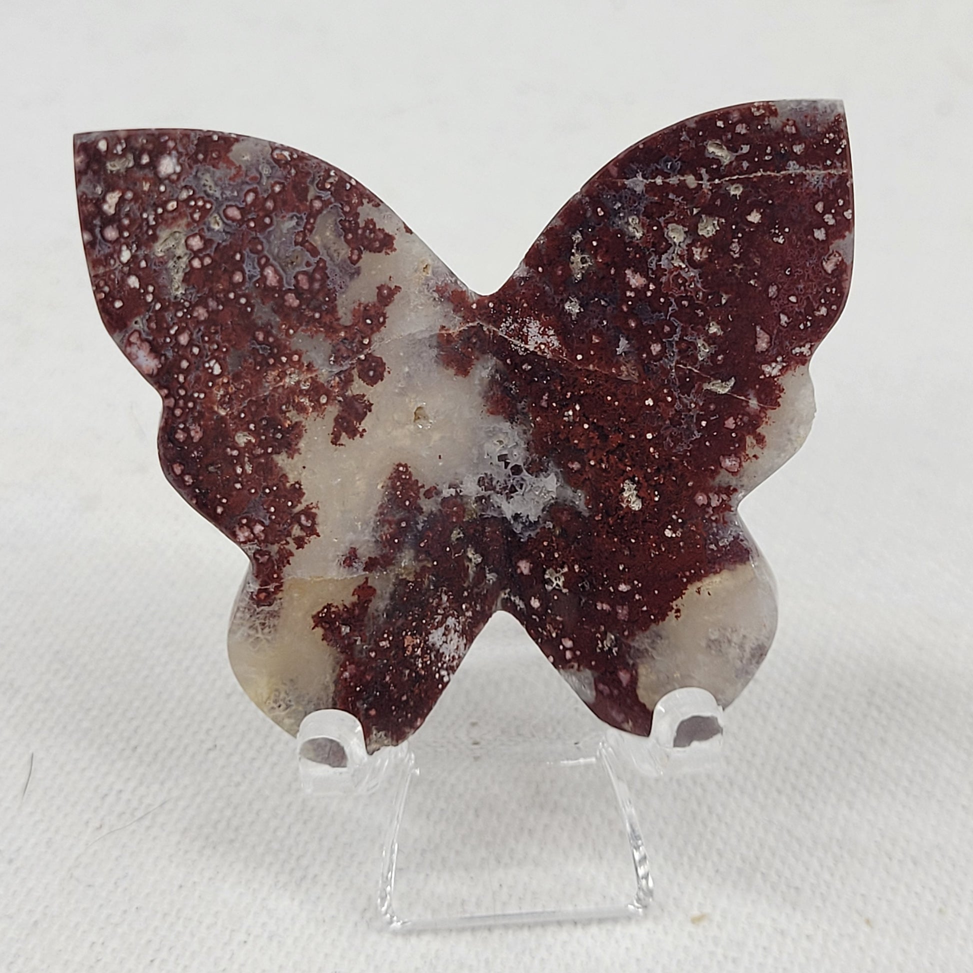 Brecciated jasper is simply fragments of different stone melded together. These unnamed Jasper palms have a mix of Jasper, Quartz, Marcasite and other crystals.