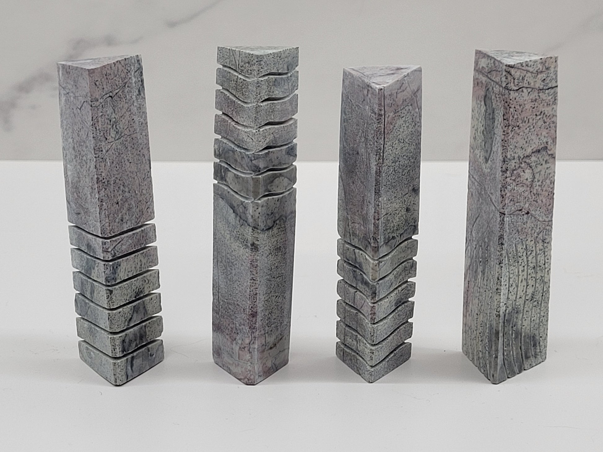 The pictures represent the style and coloring of the set of 4 you will receive. Each stone measures 3.5" to 4"
