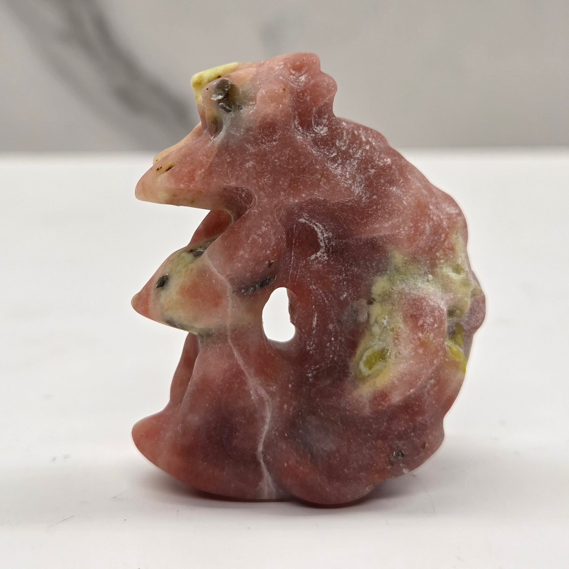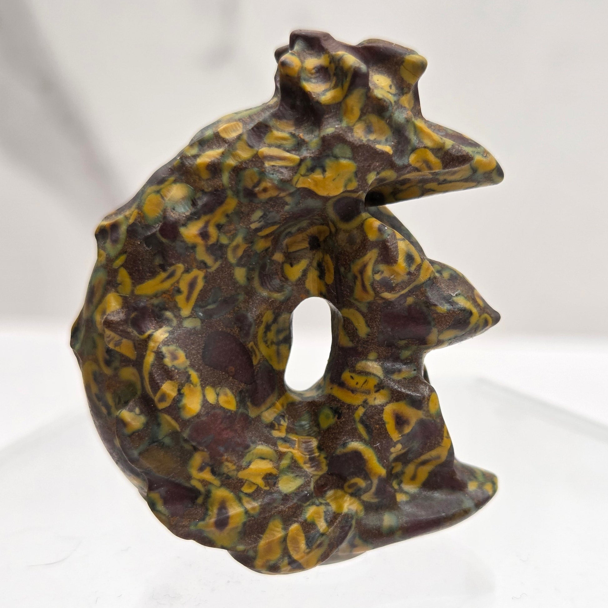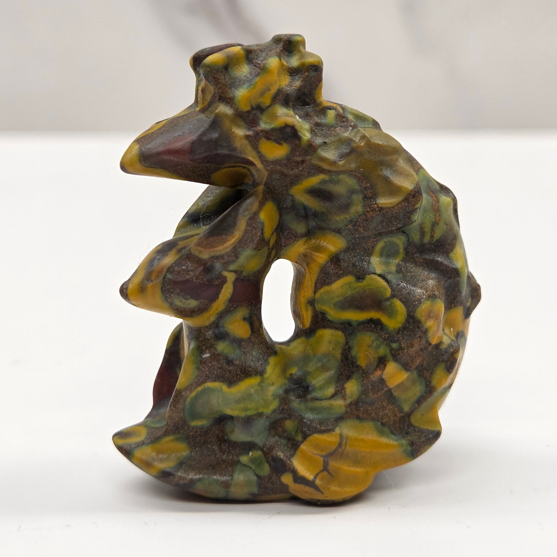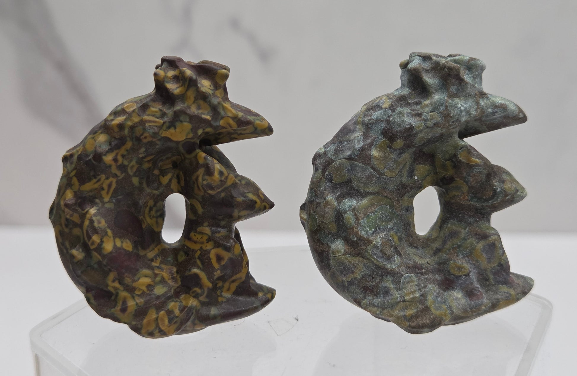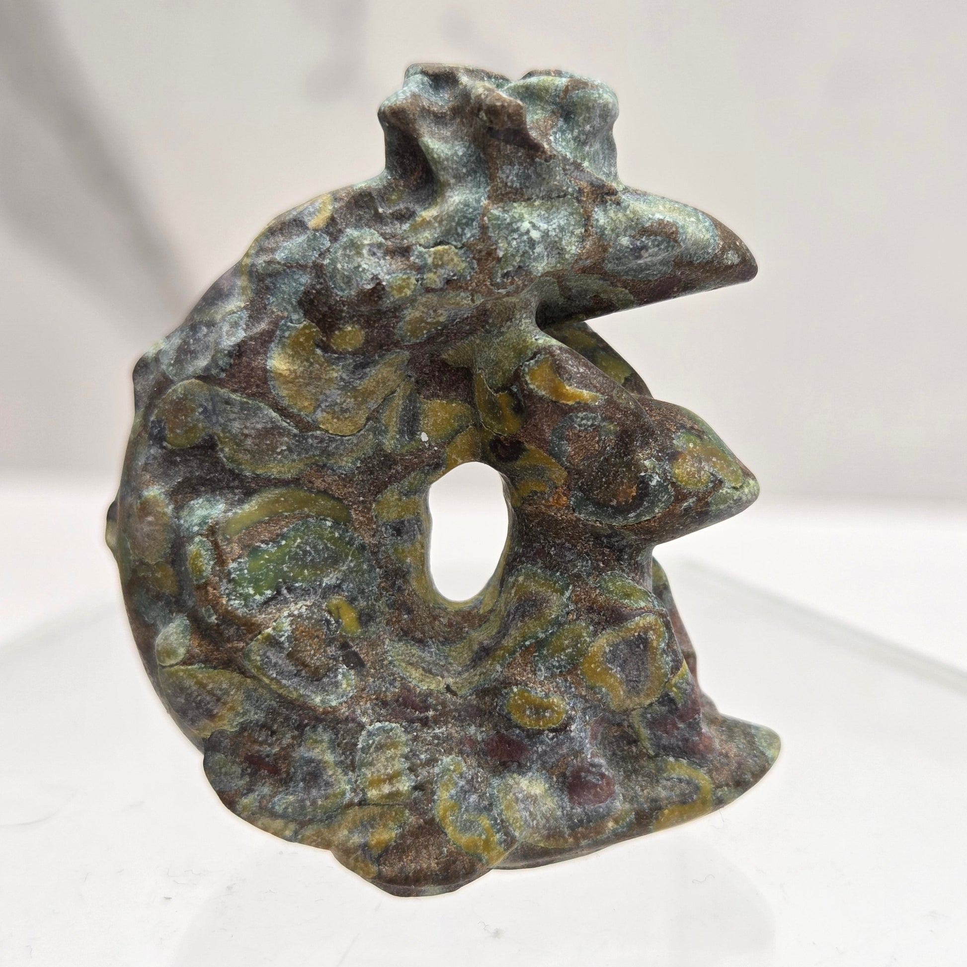 Nine (9) tail fox carvings sitting on a moon, in a variety of materials.