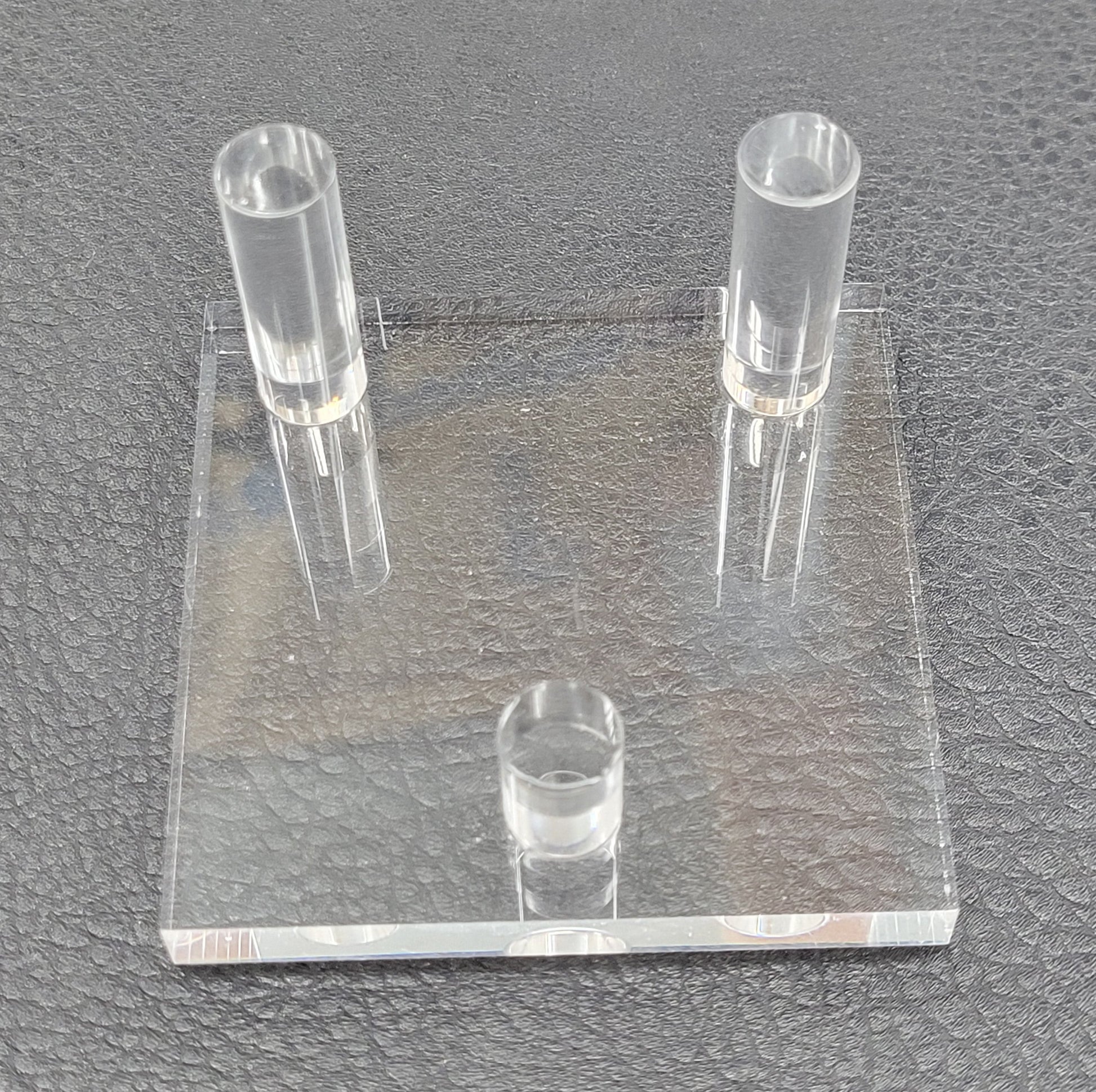 Acrylic specimen stand with 3 pegs.