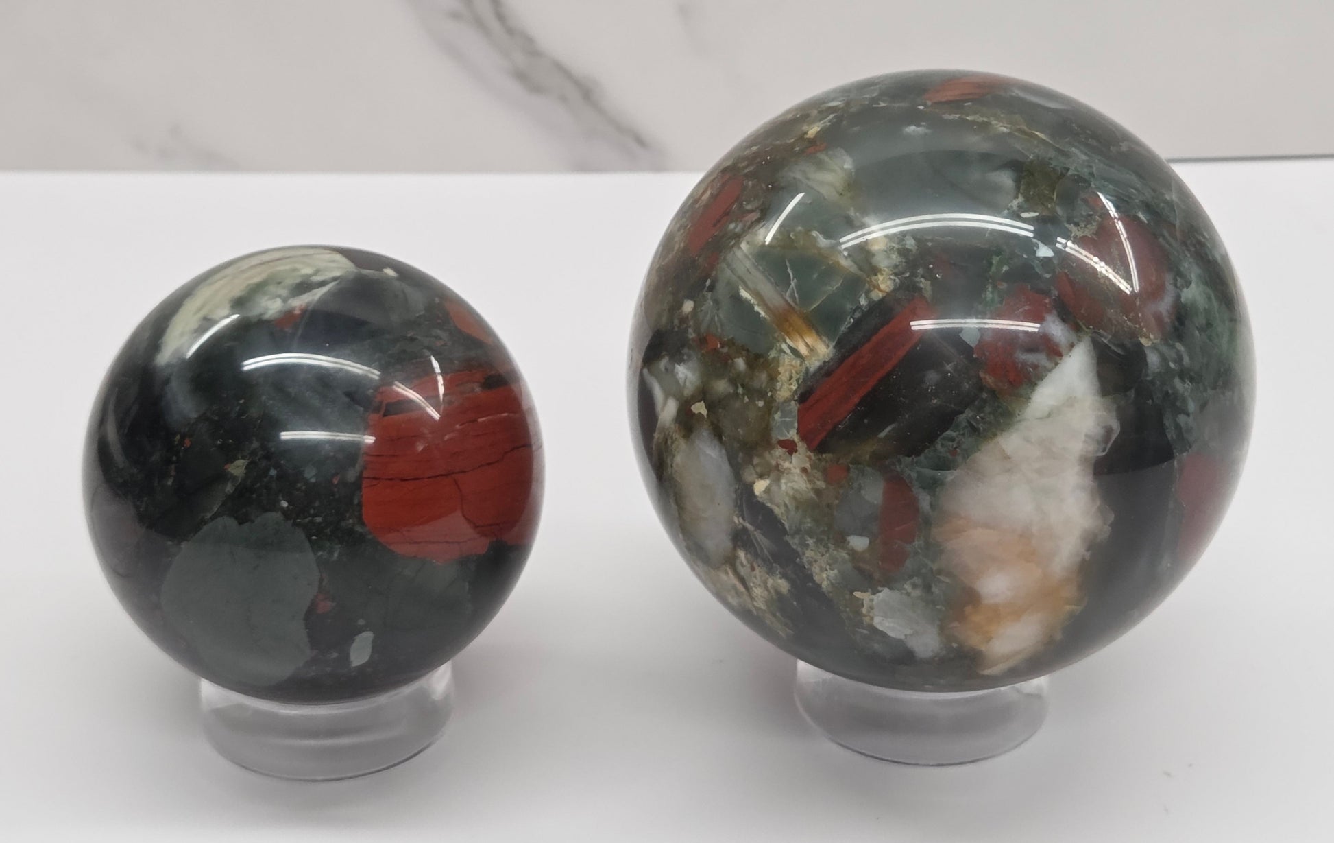 African Bloodstone, also known as setonite, is a type of jasper that gets its distinctive coloring from the presence of iron oxide. It is a variety of deep-green chalcedony, a crypto-crystalline quartz and red jasper flecks