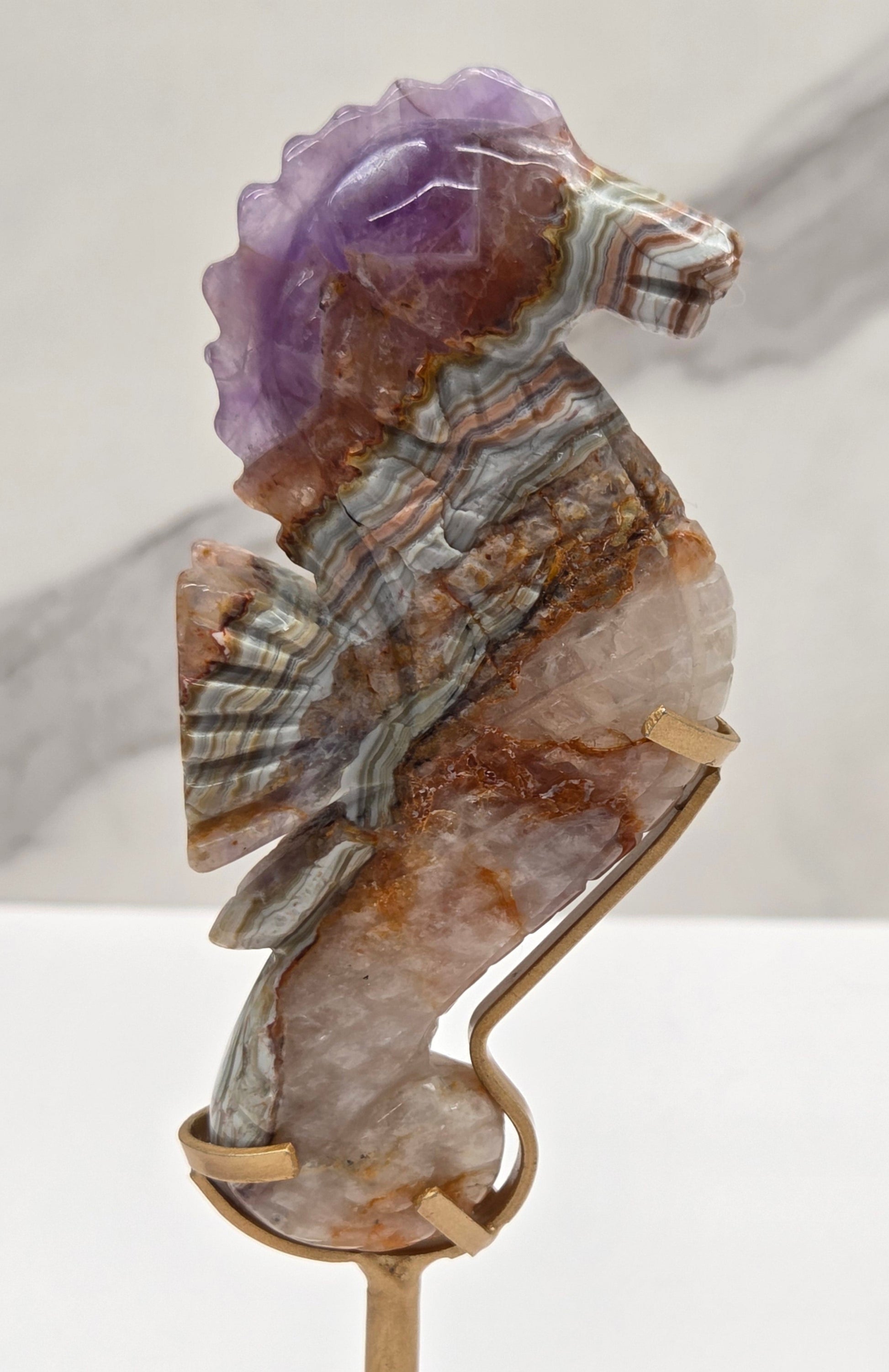 Amethyst w/ Agate seahorse (on stand)