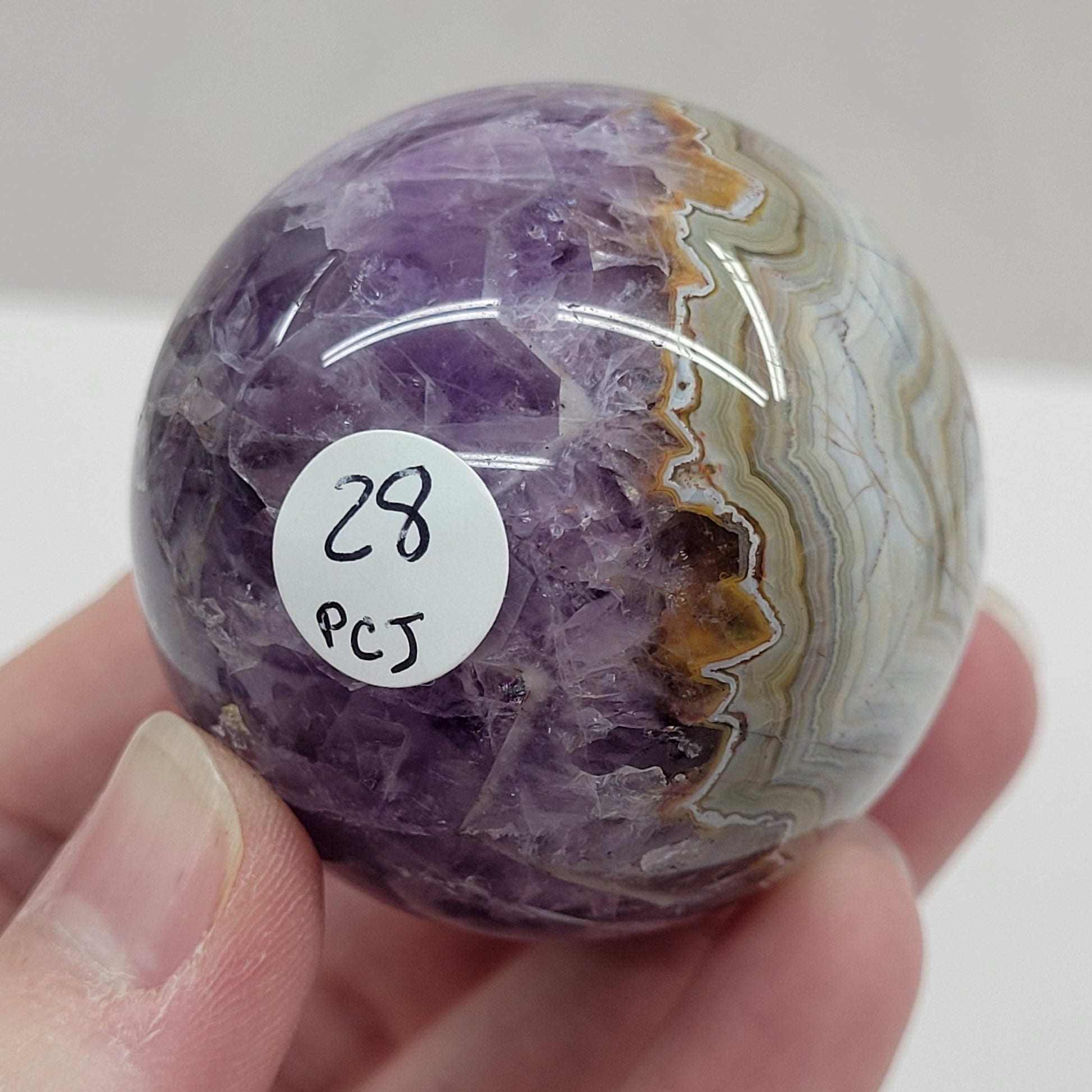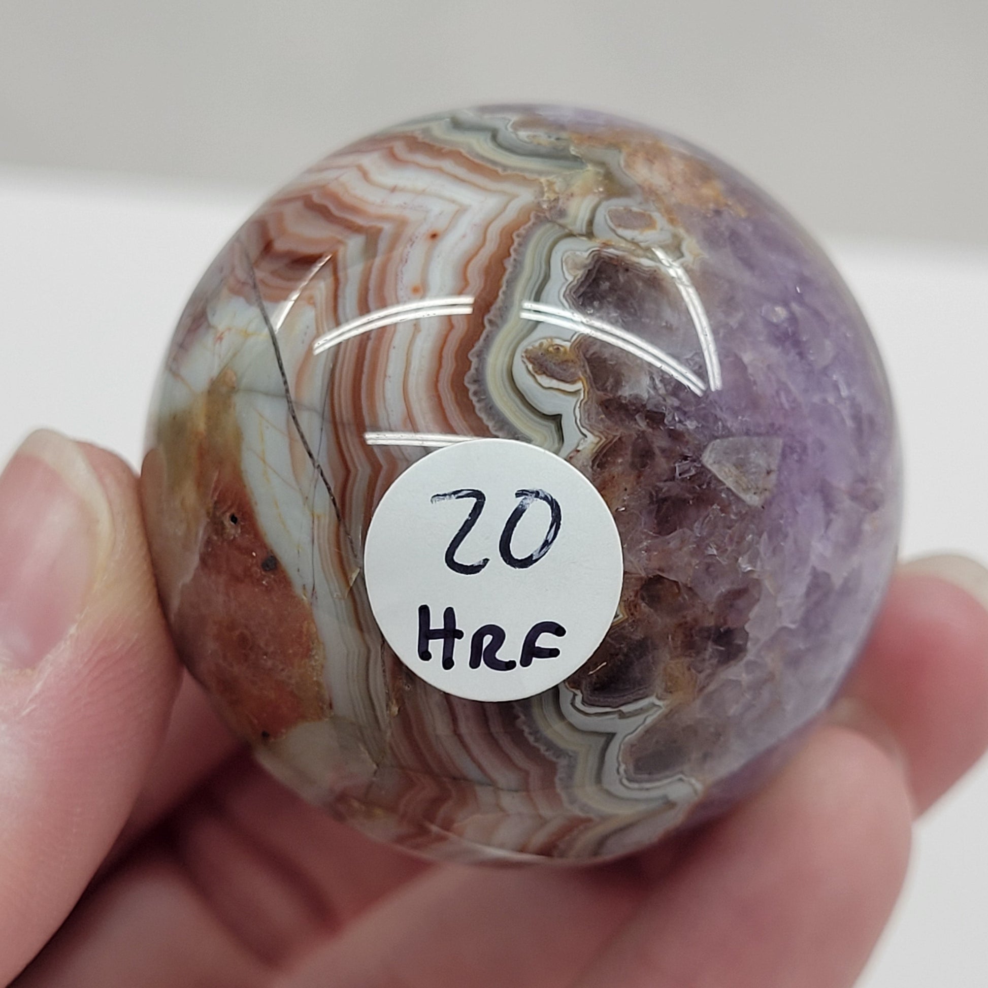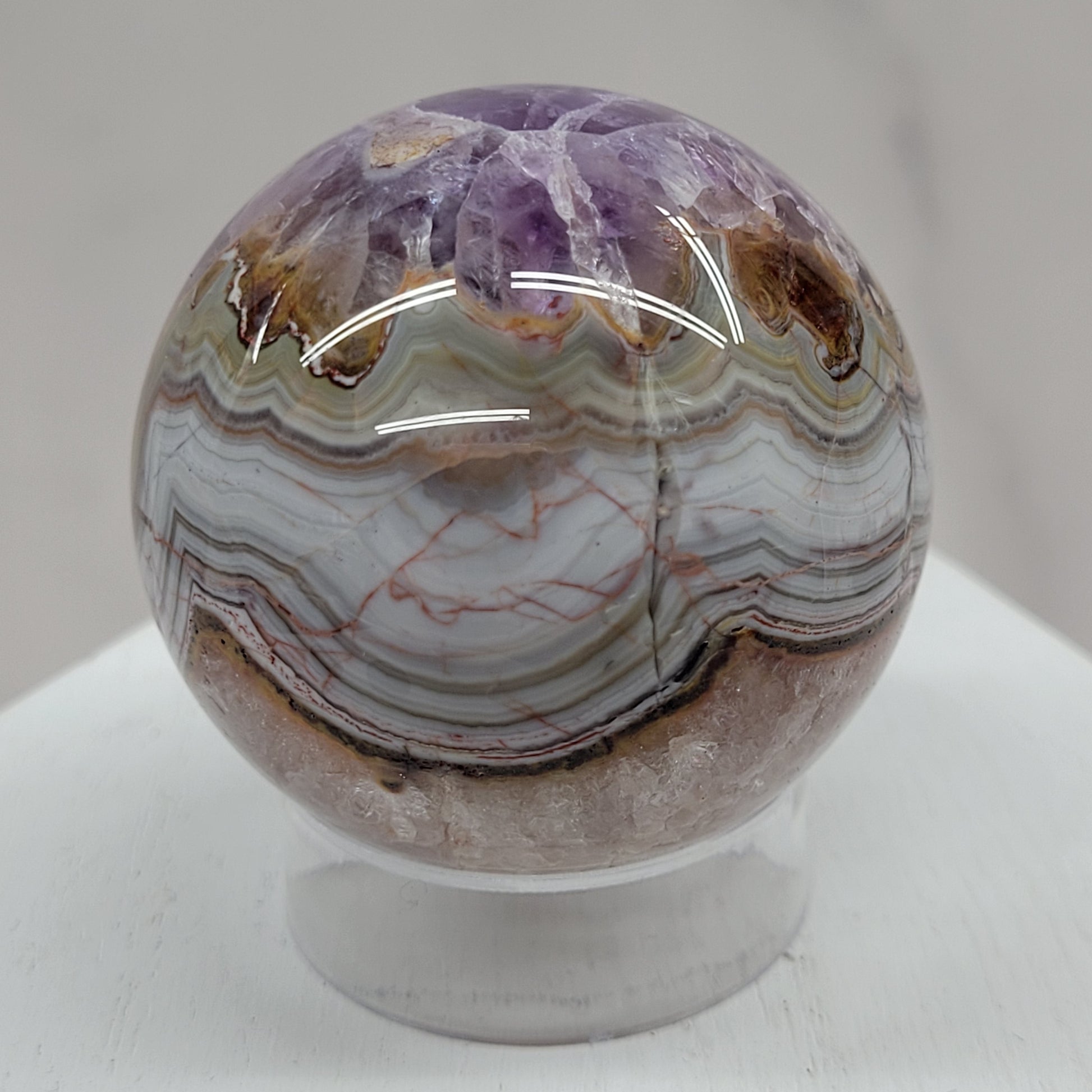 A rare combination of Amethyst crystal with banding of red and white Mexican Crazy Lace Agate - this is from a single pocket of unique Amethyst in Mexico and is a new material coming to the crystal market.