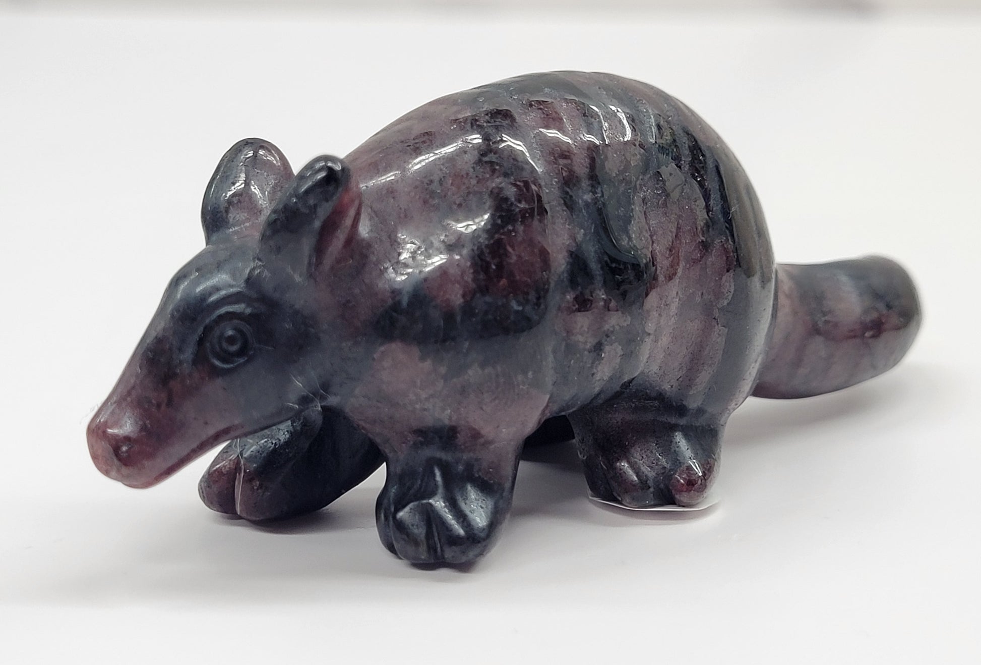 Armadillo carvings in a variety of materials. Each carving measures 3.9" x 1.3"