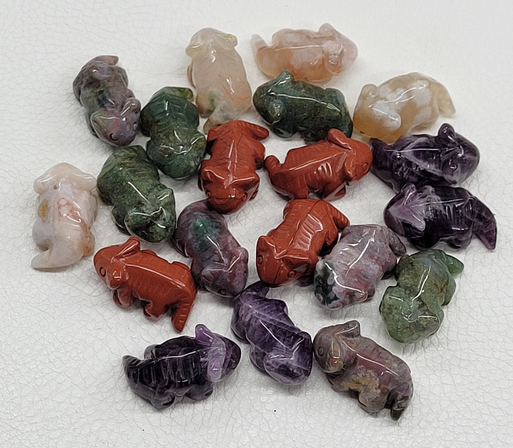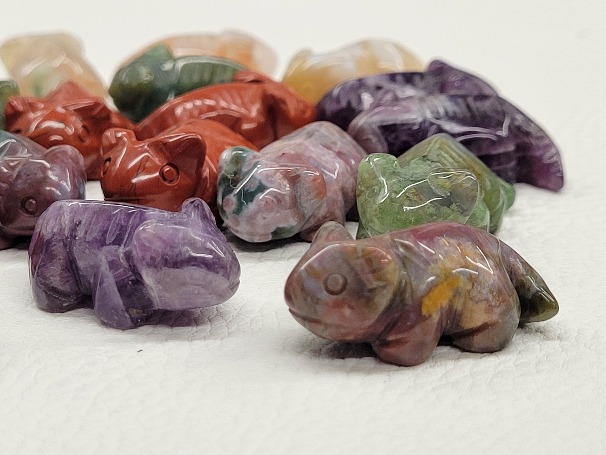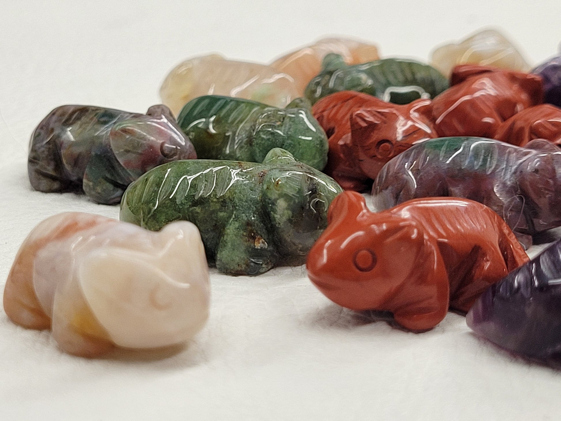 Cute Axolotl carvings in a variety of materials that measure approx. 1"