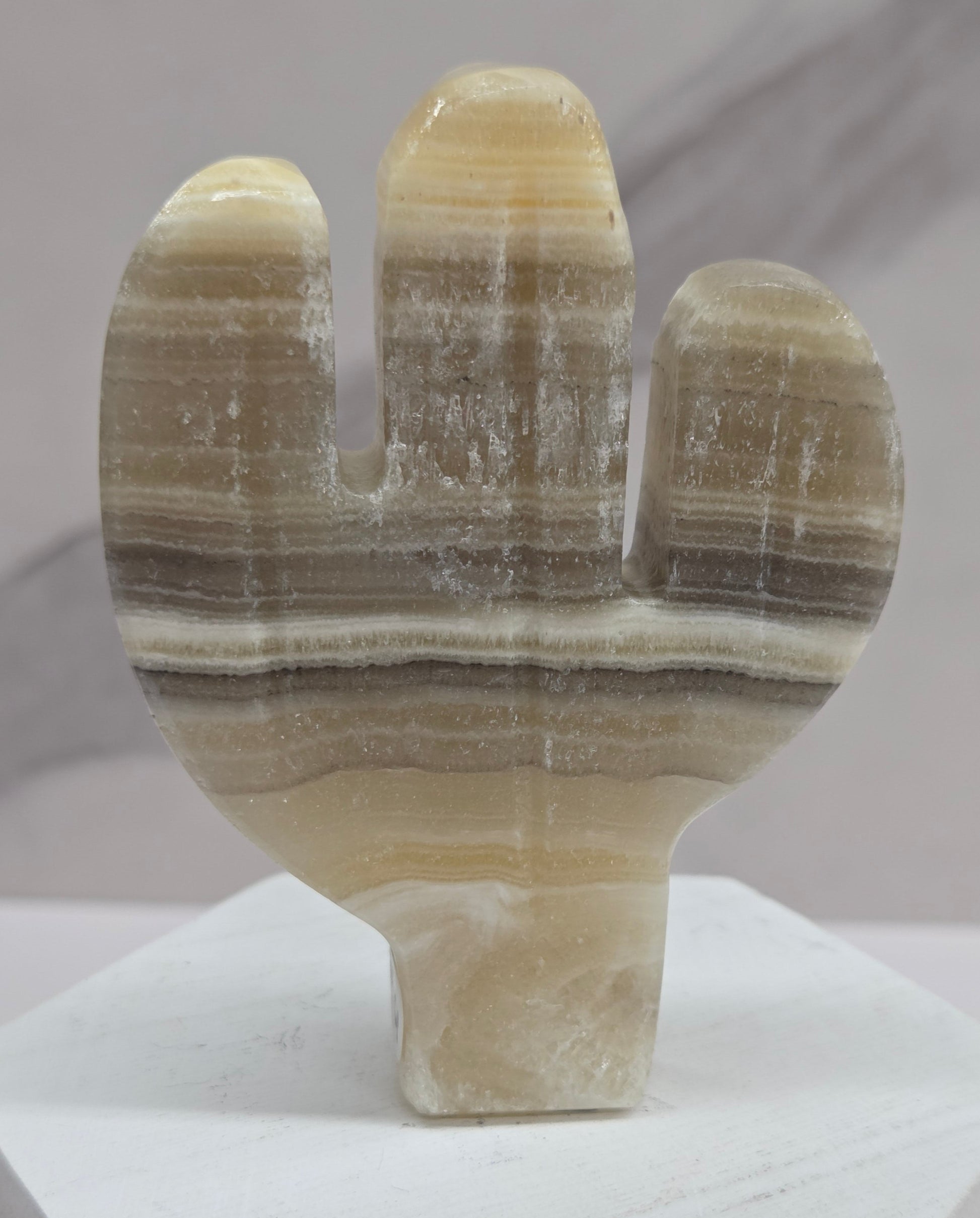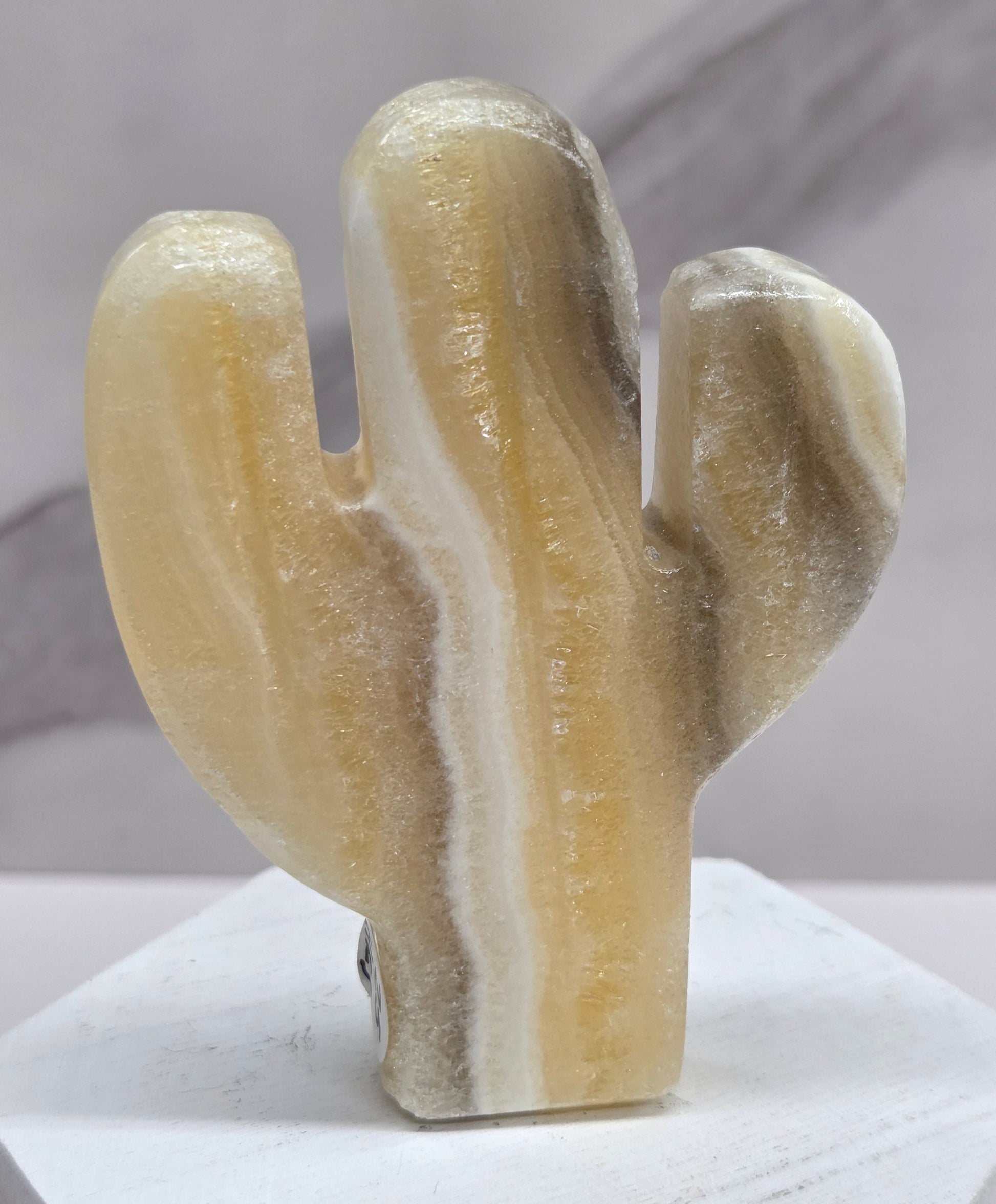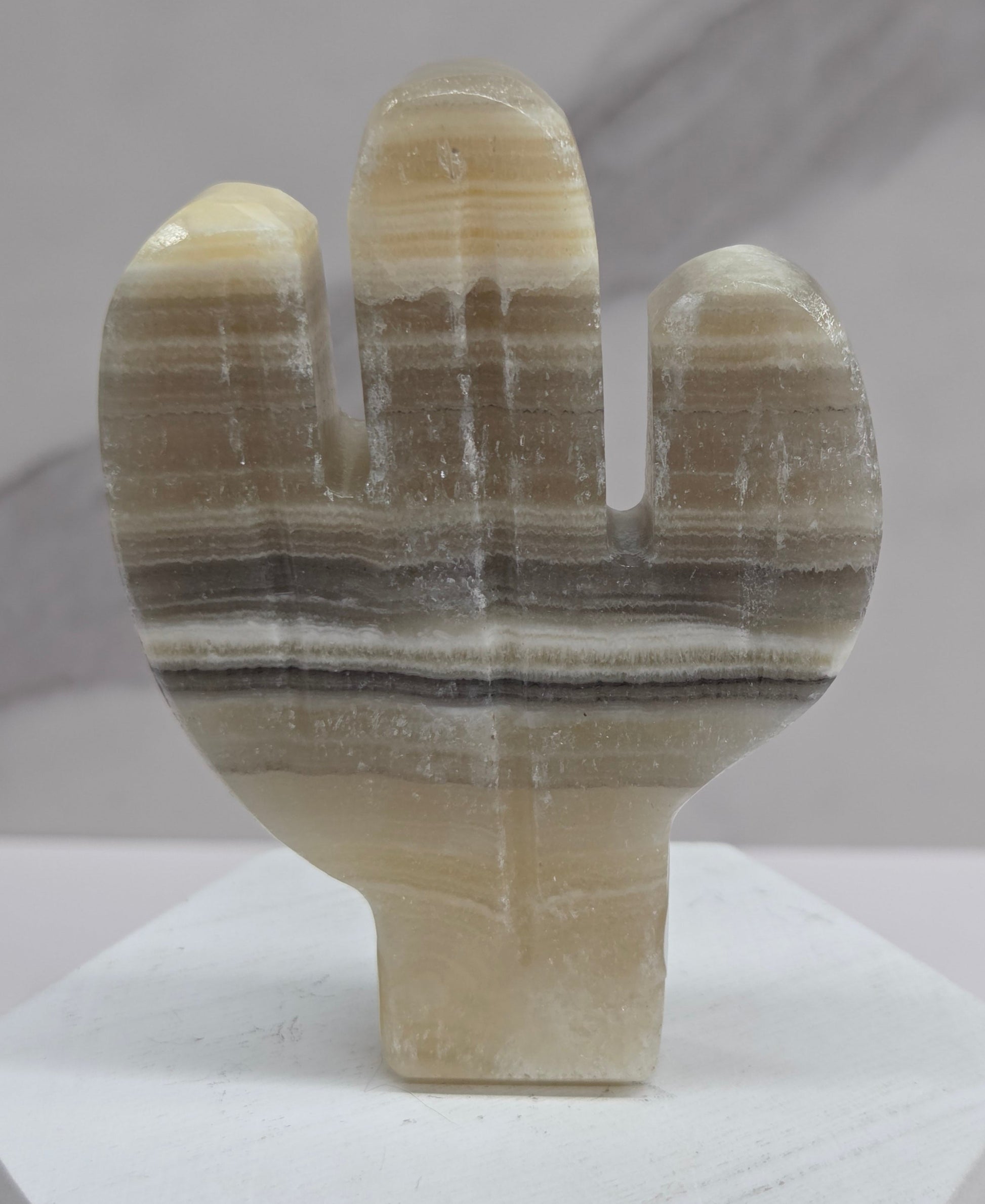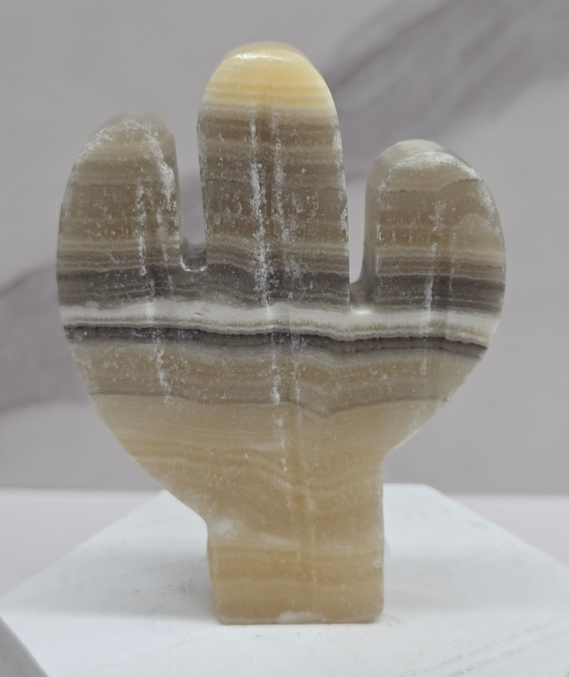 Banded calcite from Mexico, often called Mexican Onyx, is a type of calcite (calcium carbonate) knowns for its distinctive layered, or banded, appearance. These bands can be various colors, including white, brown, golden yellow, black, and even green. The coloration is due to variations in impurities during the mineral's formation.