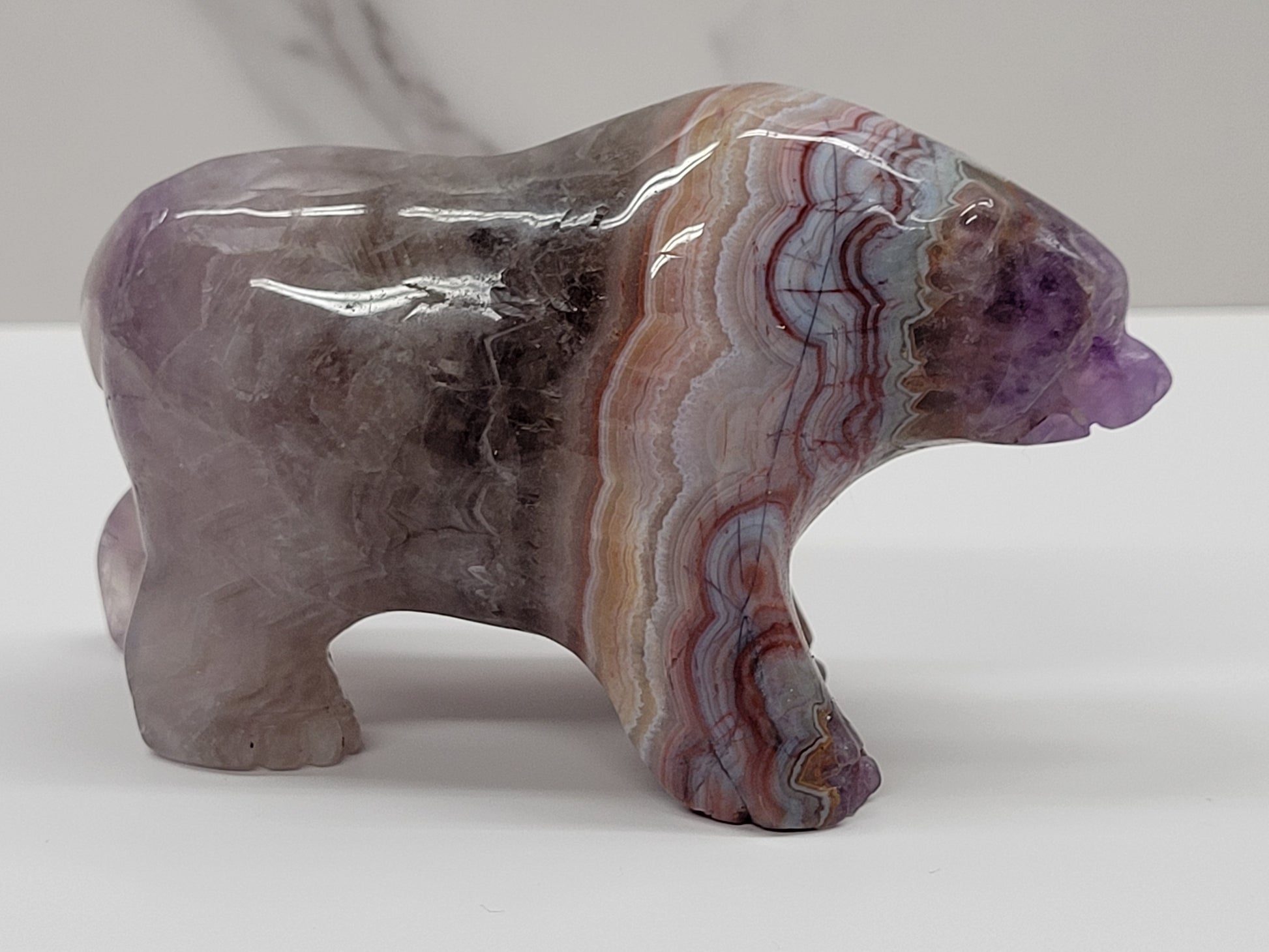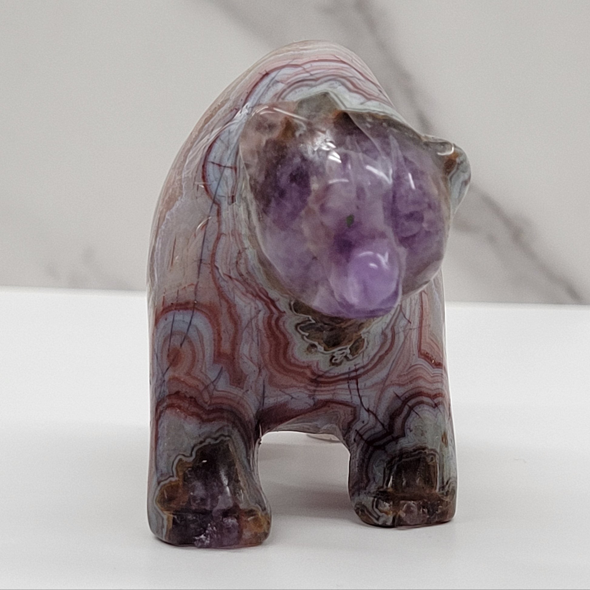 Bear carving - Amethyst w/ Agate (L)