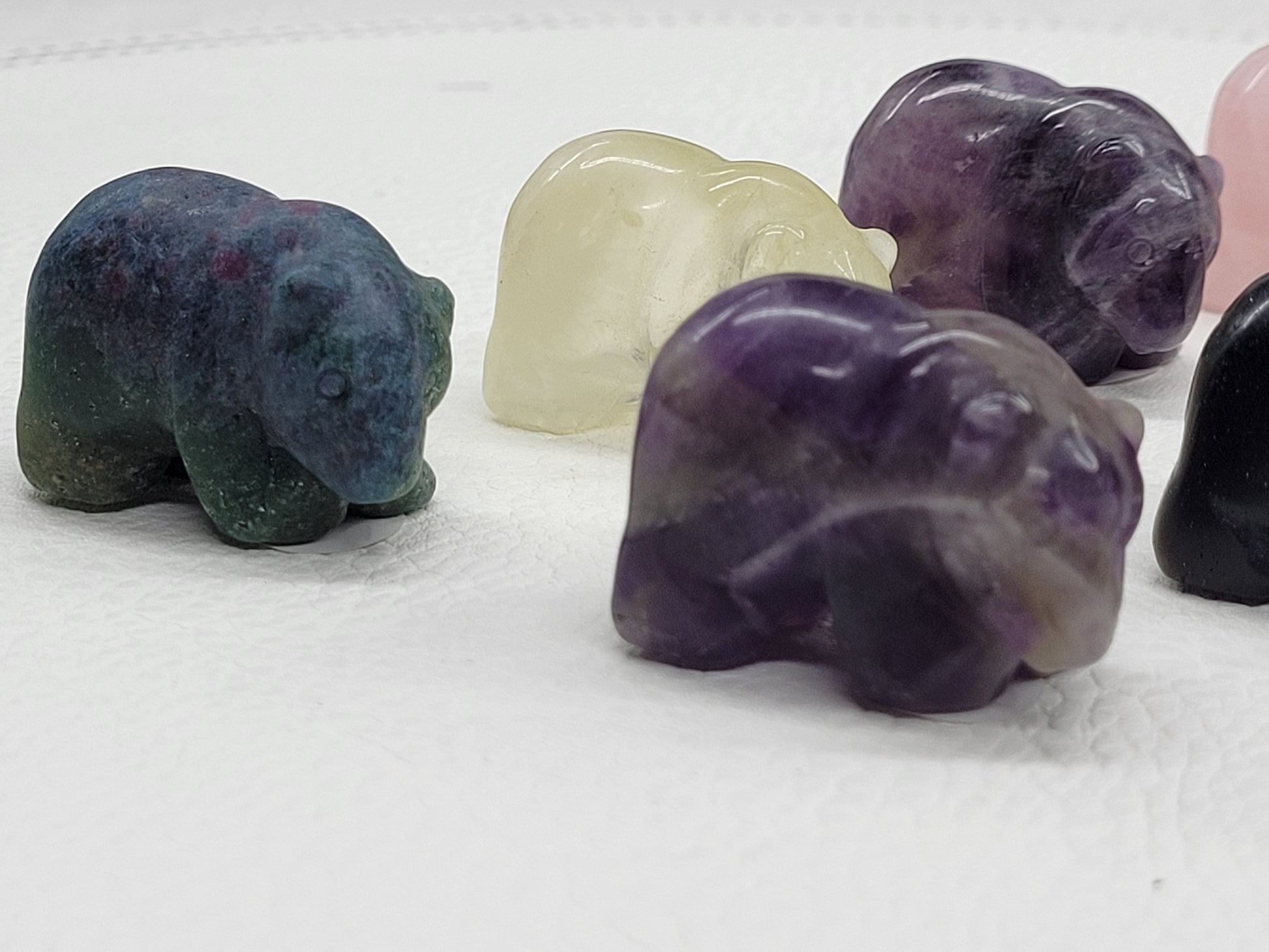 Bear carvings in a variety of materials. Each bear measures approx. 1.25"