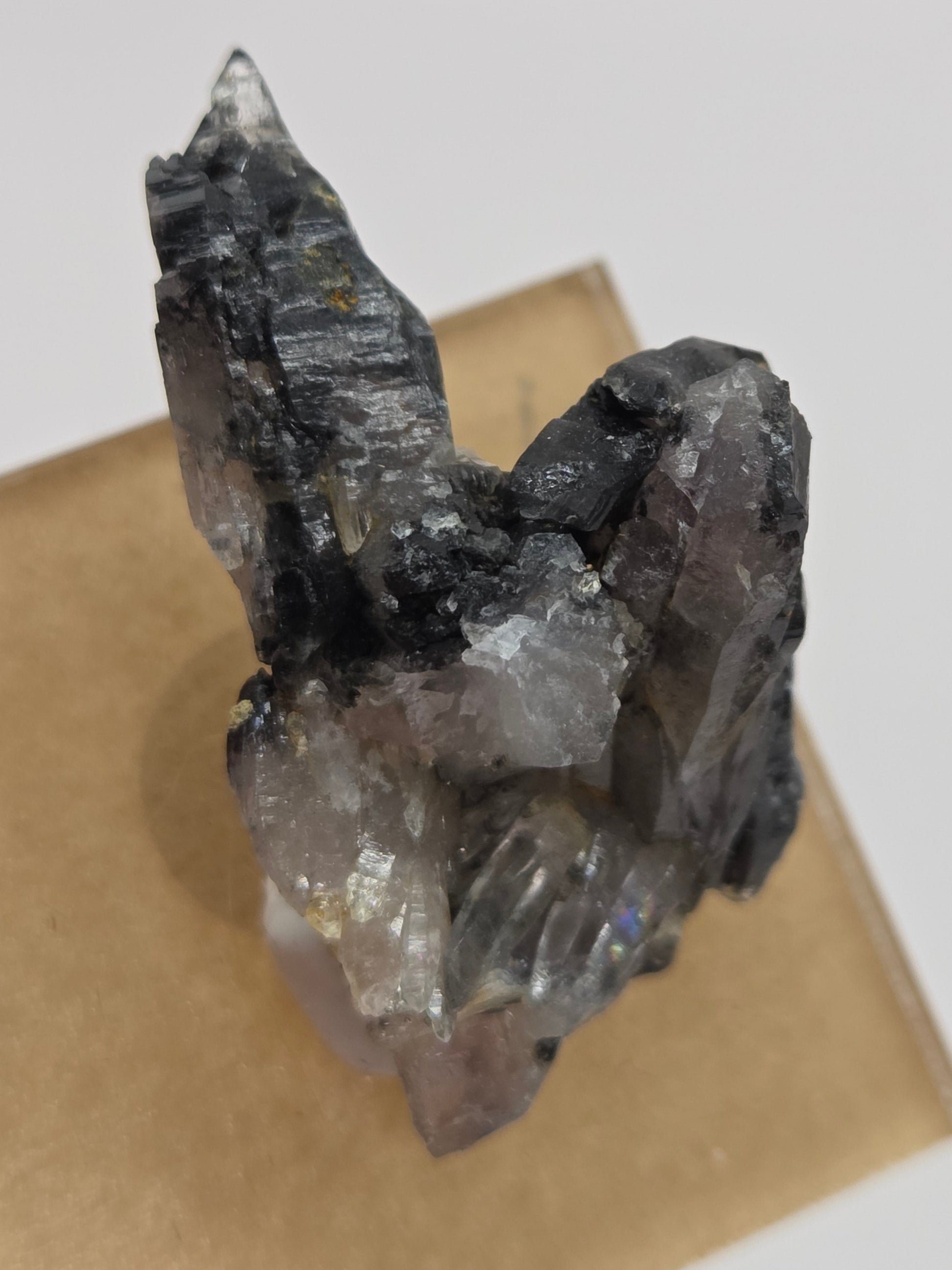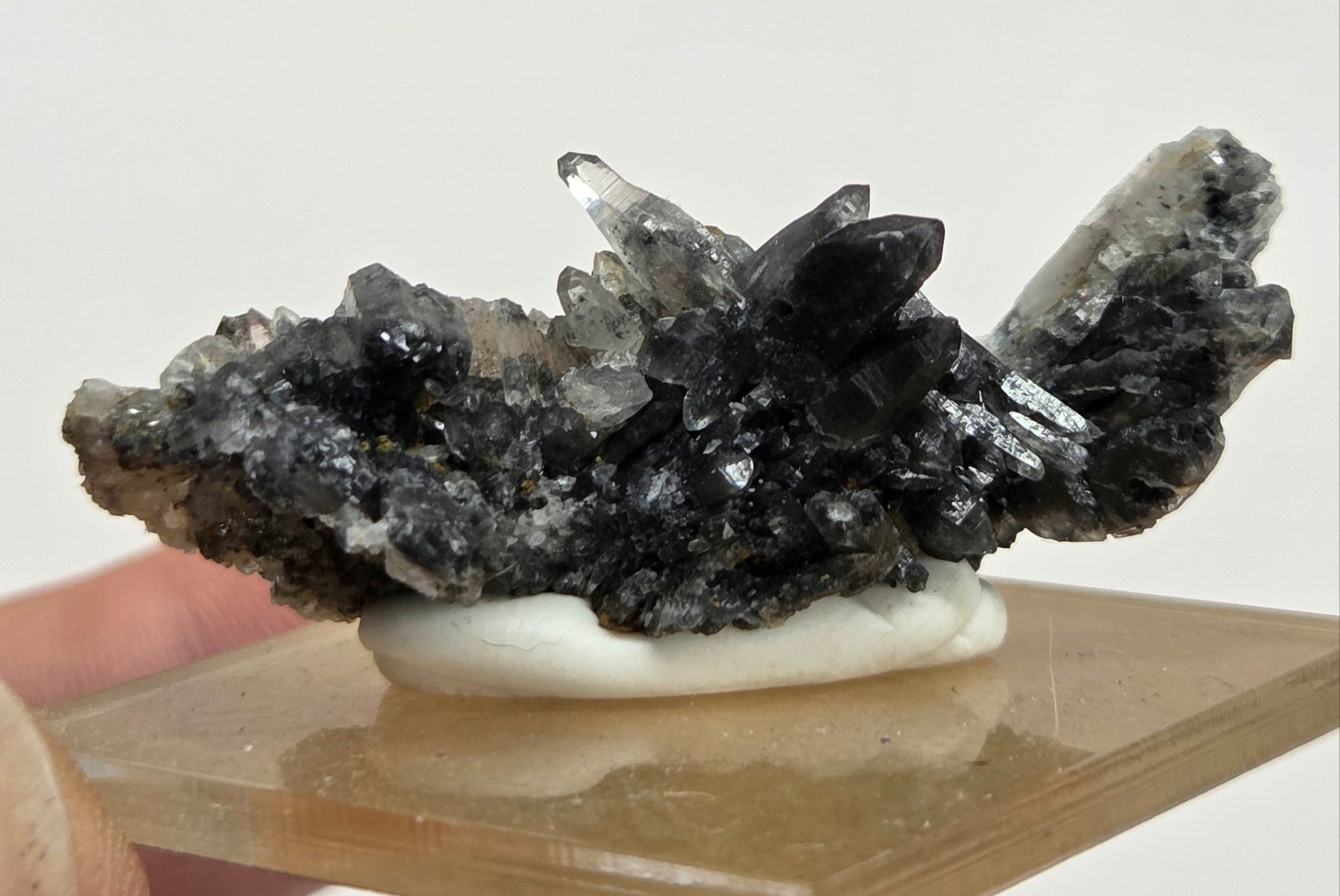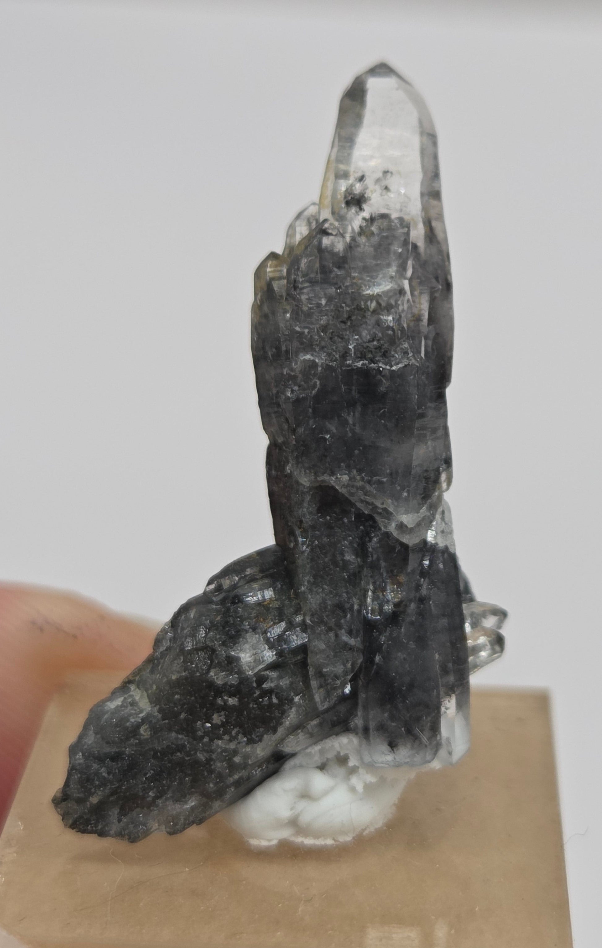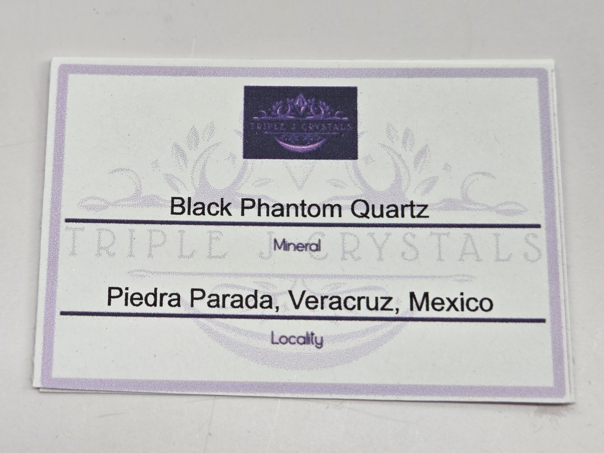 Black phantom quartz is a quartz variety known for its phantom or ghost-like inclusions of black carbon or manganese.