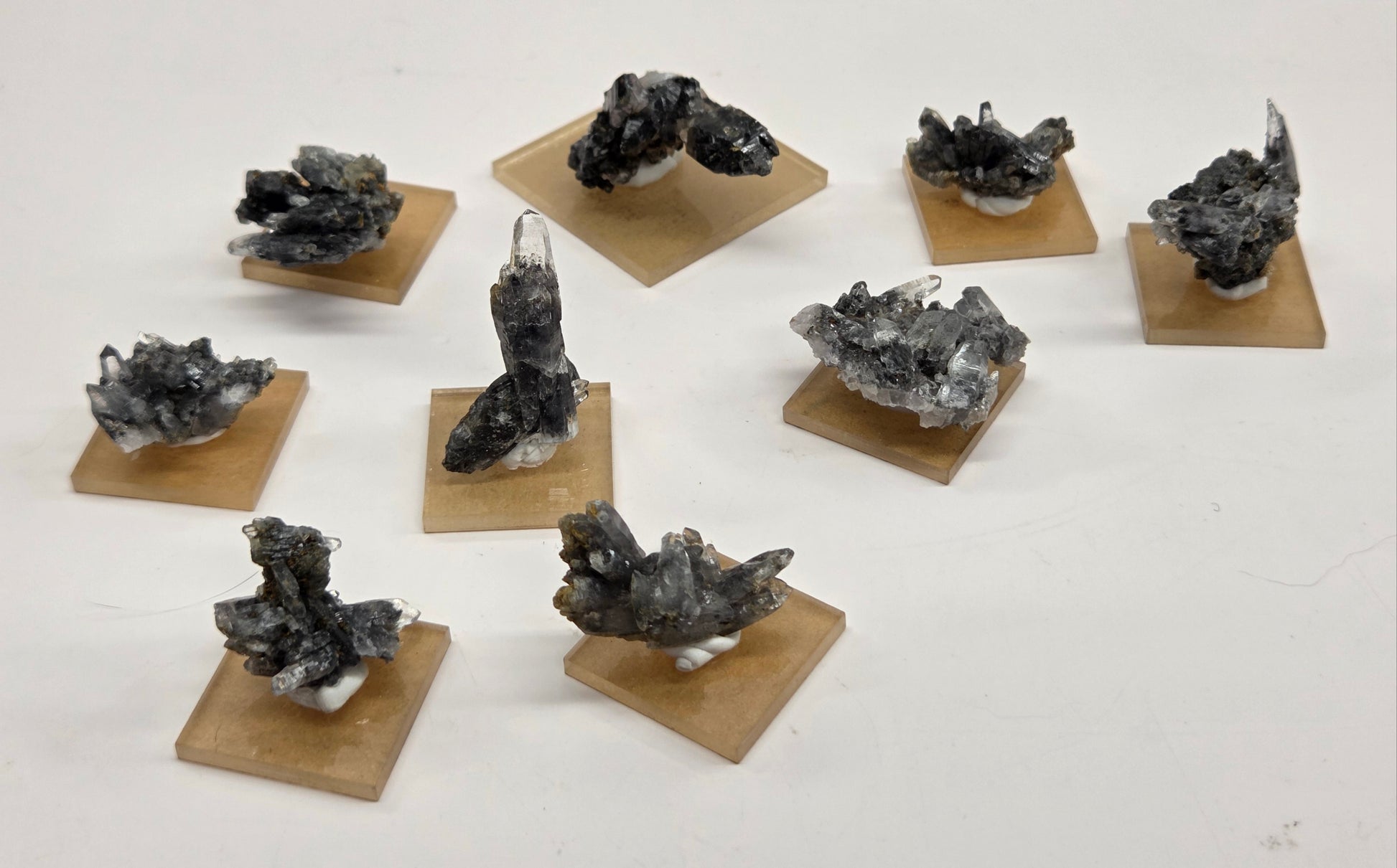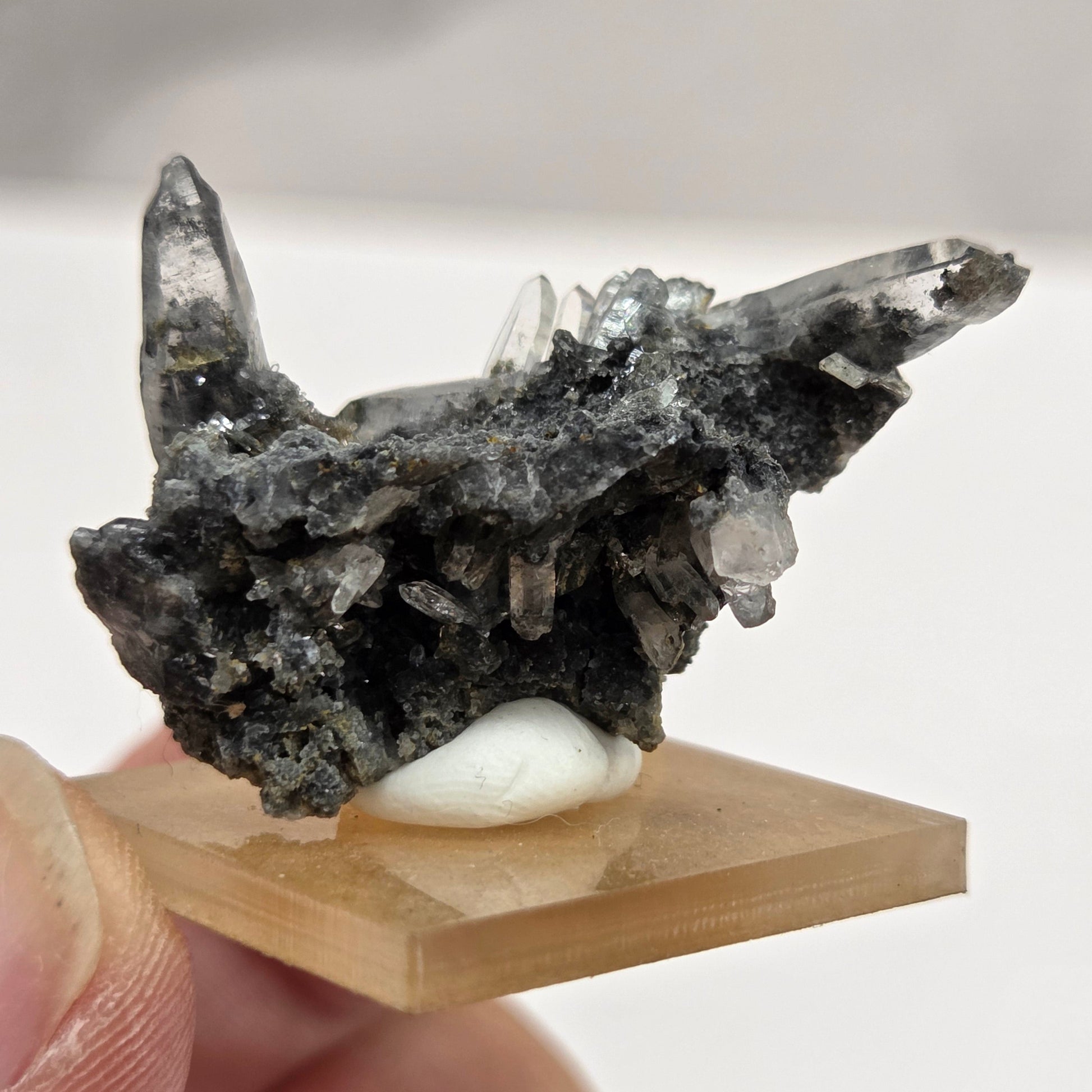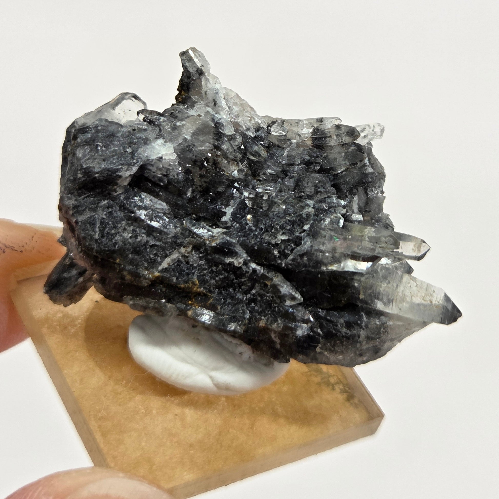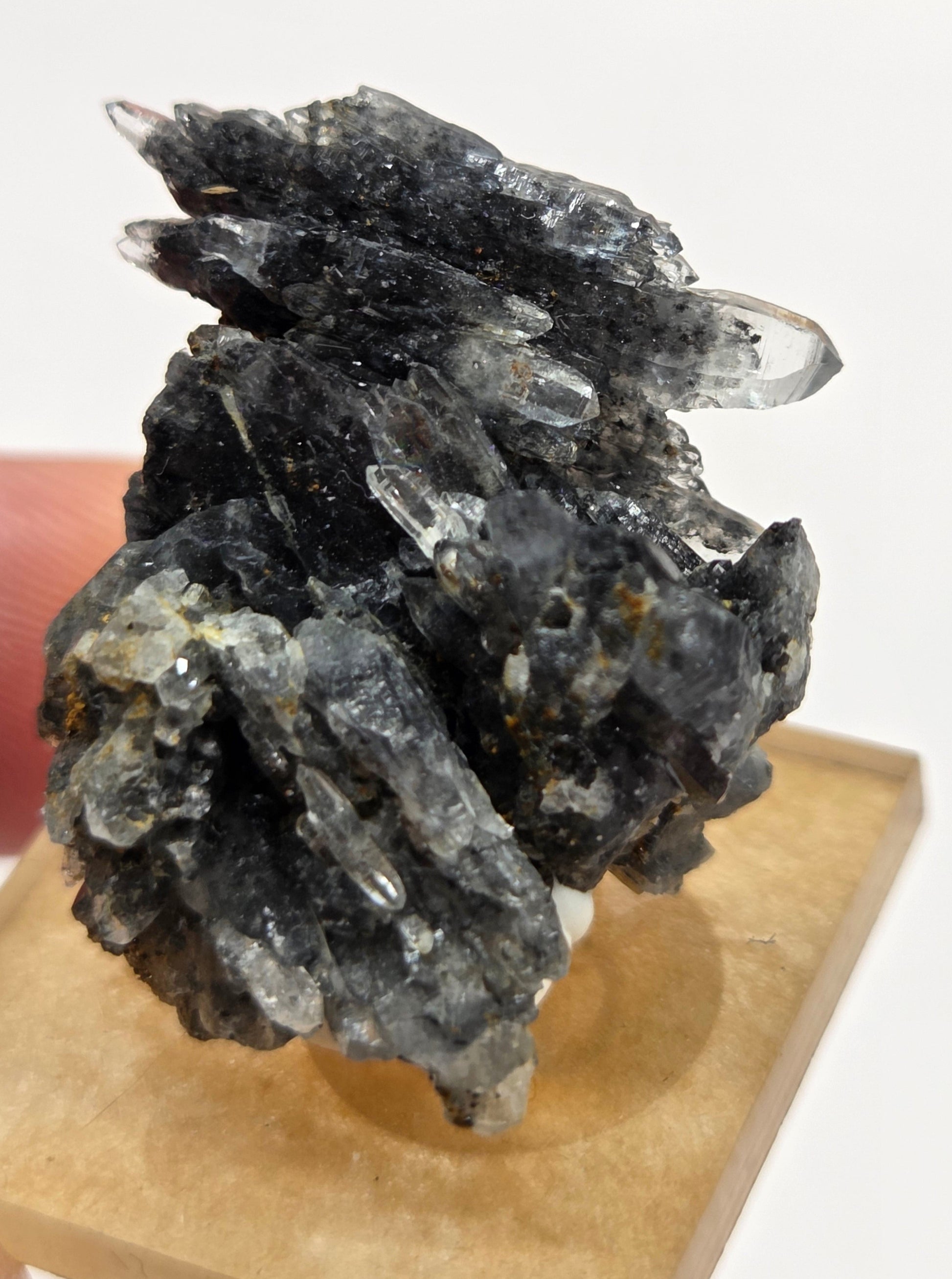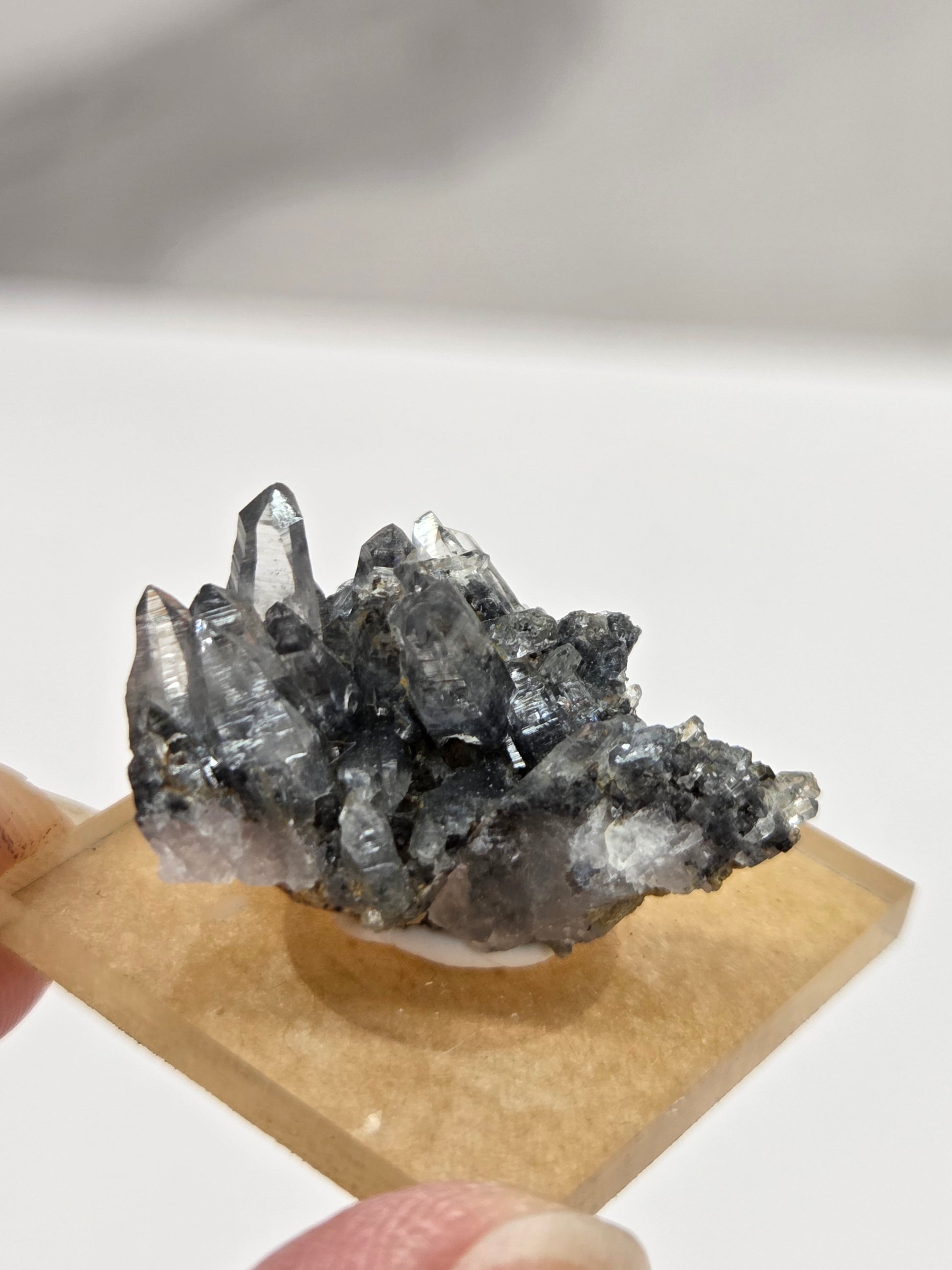 Black phantom quartz is a quartz variety known for its phantom or ghost-like inclusions of black carbon or manganese.