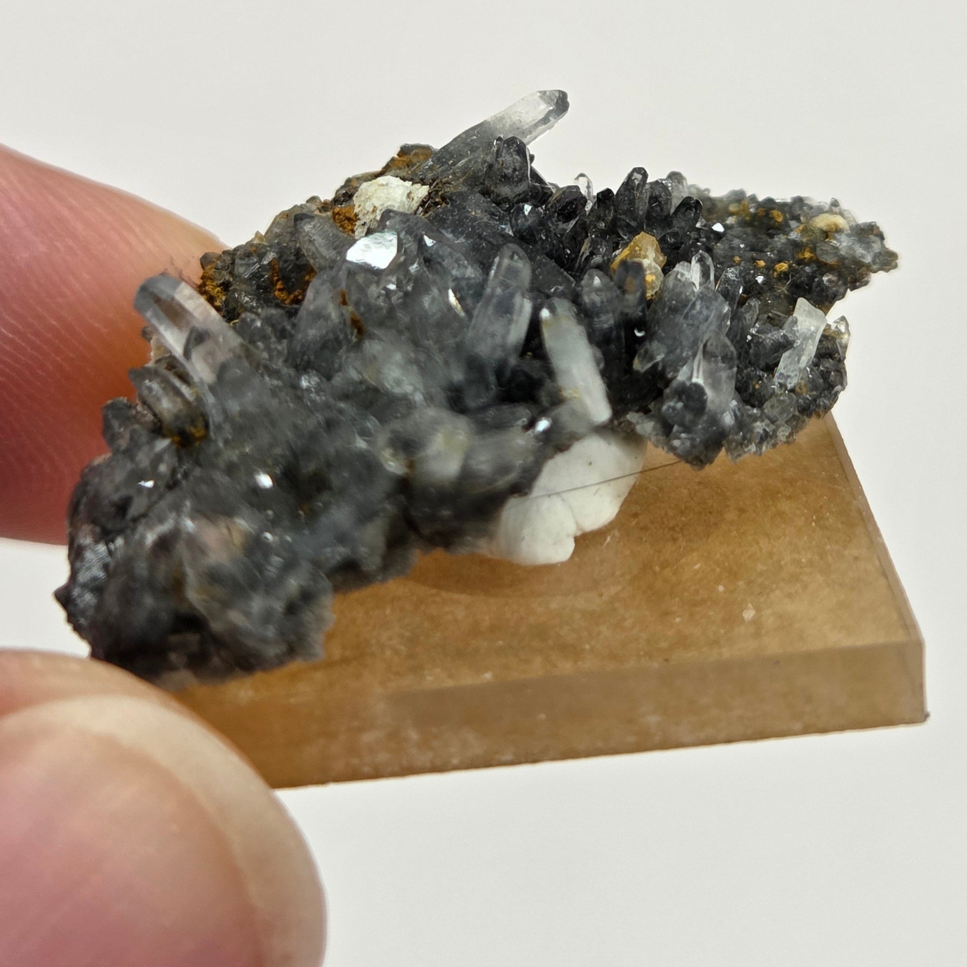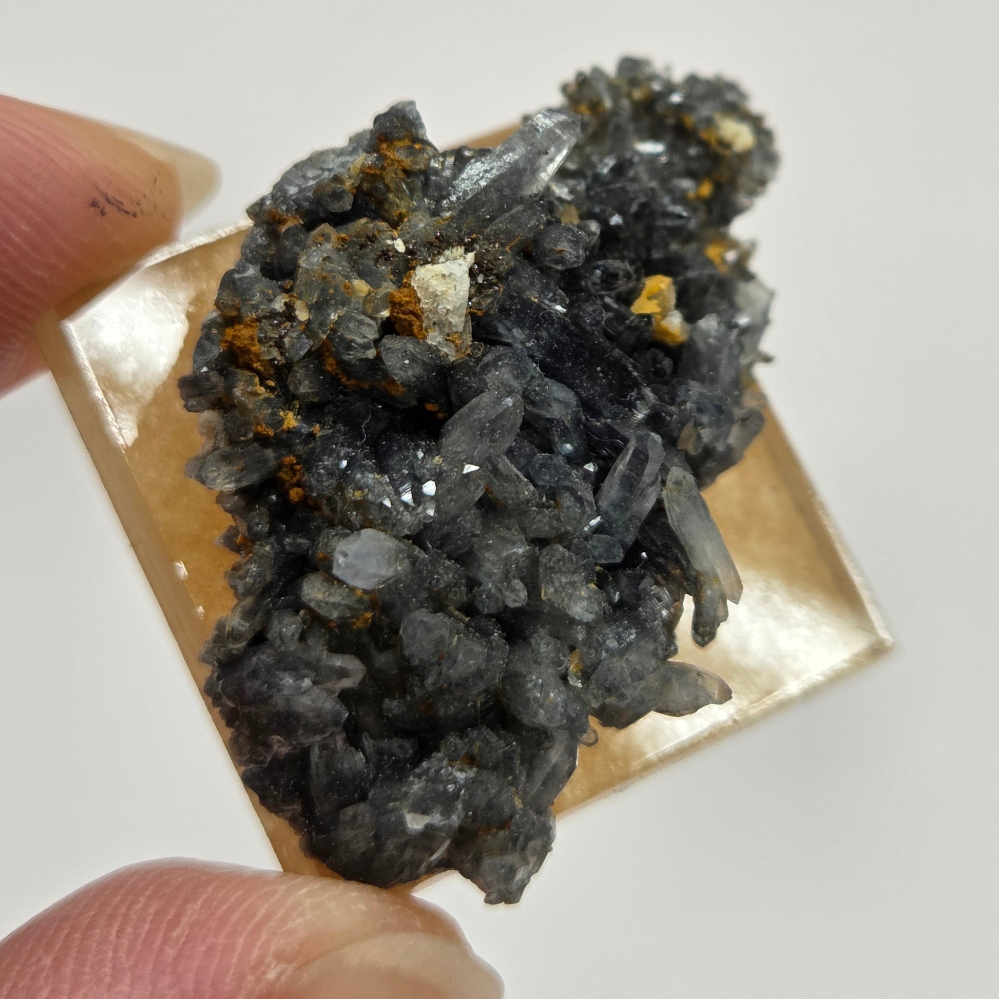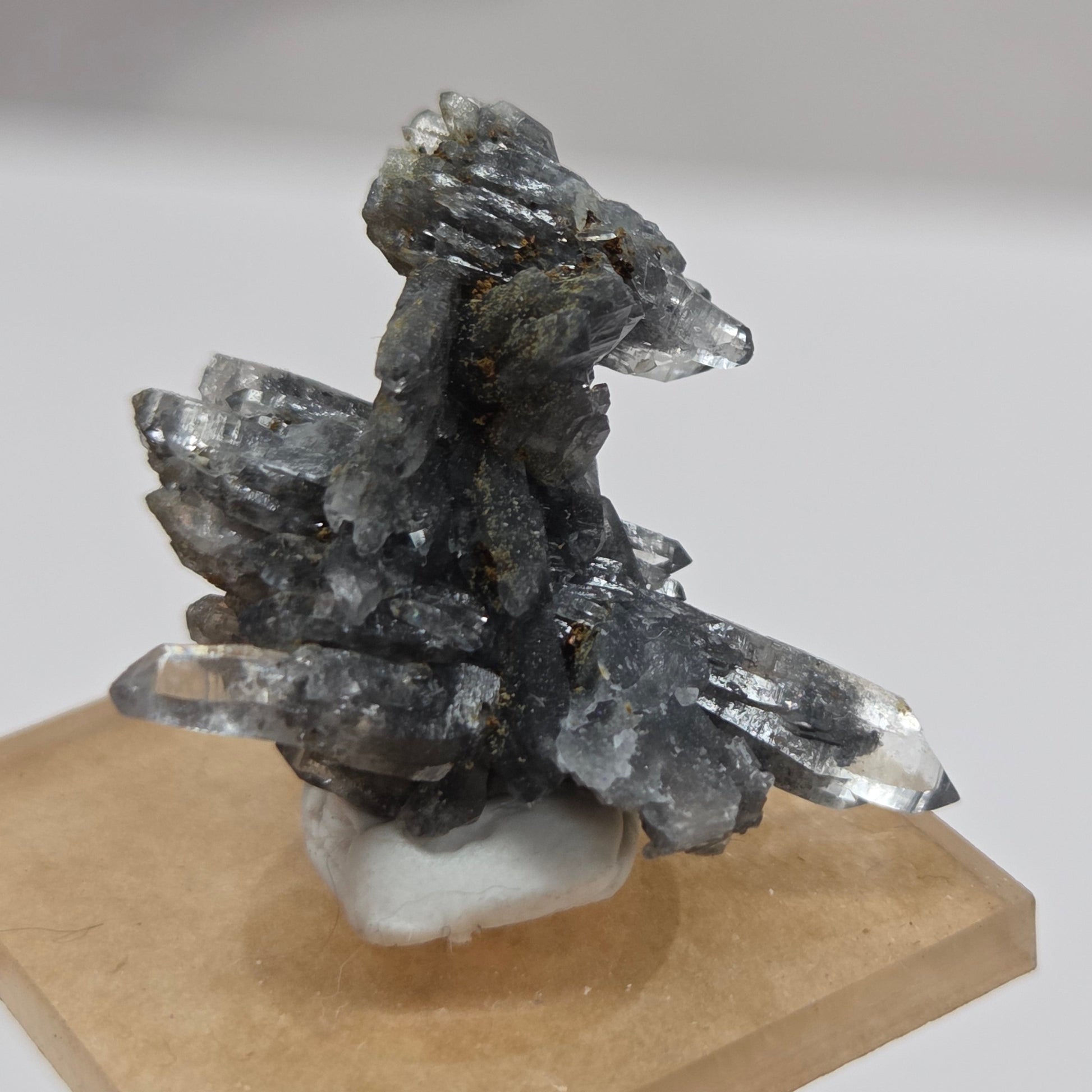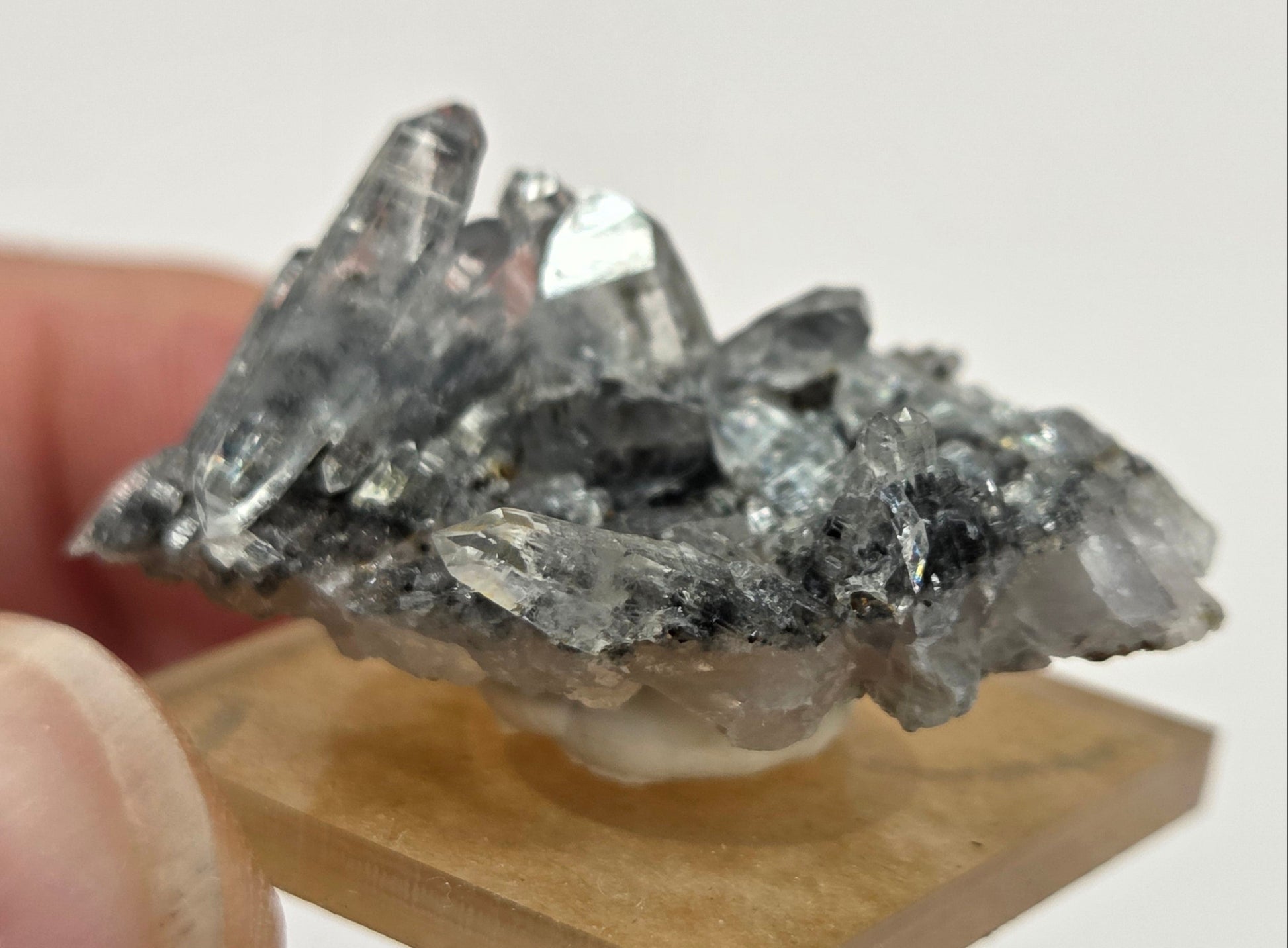 Black phantom quartz is a quartz variety known for its phantom or ghost-like inclusions of black carbon or manganese.