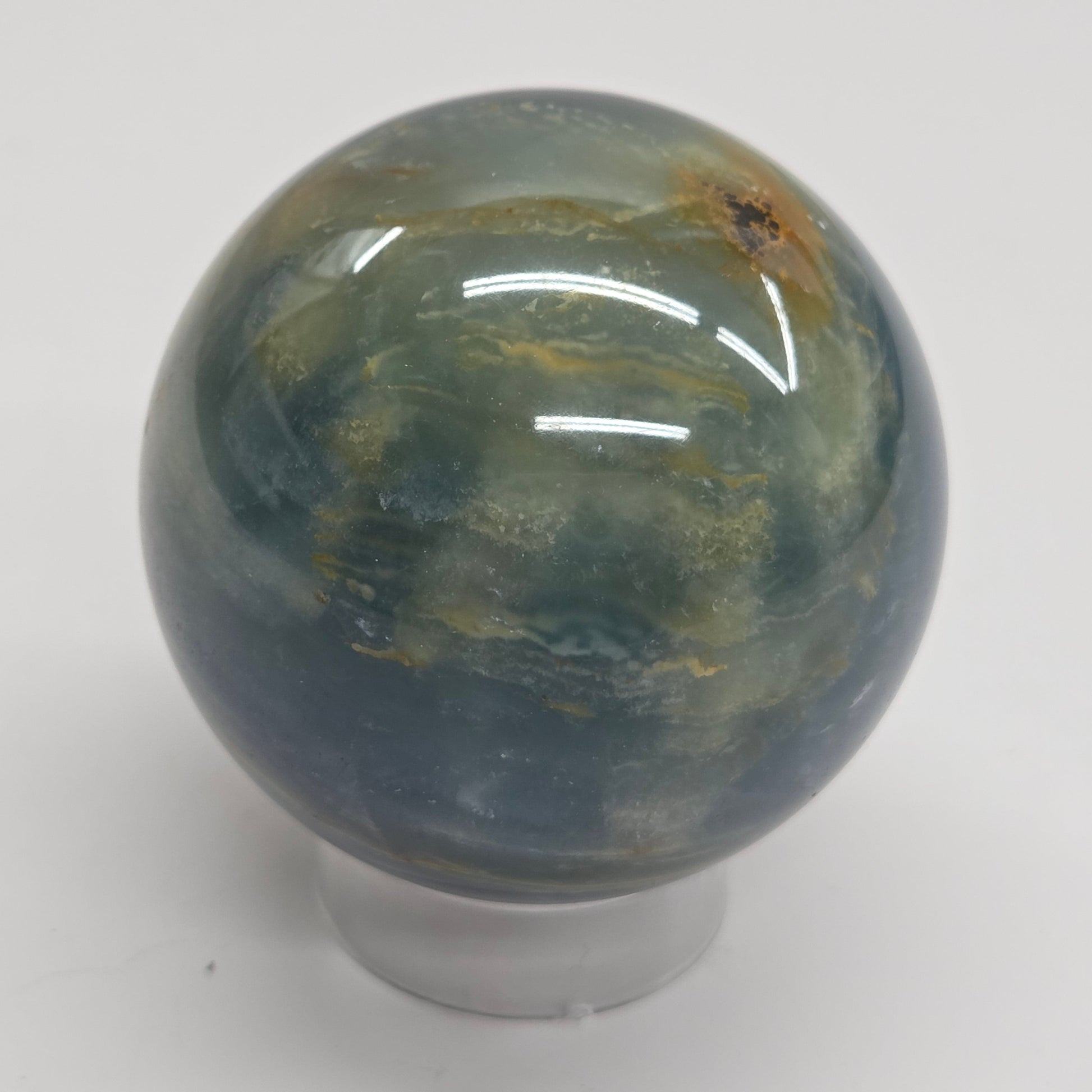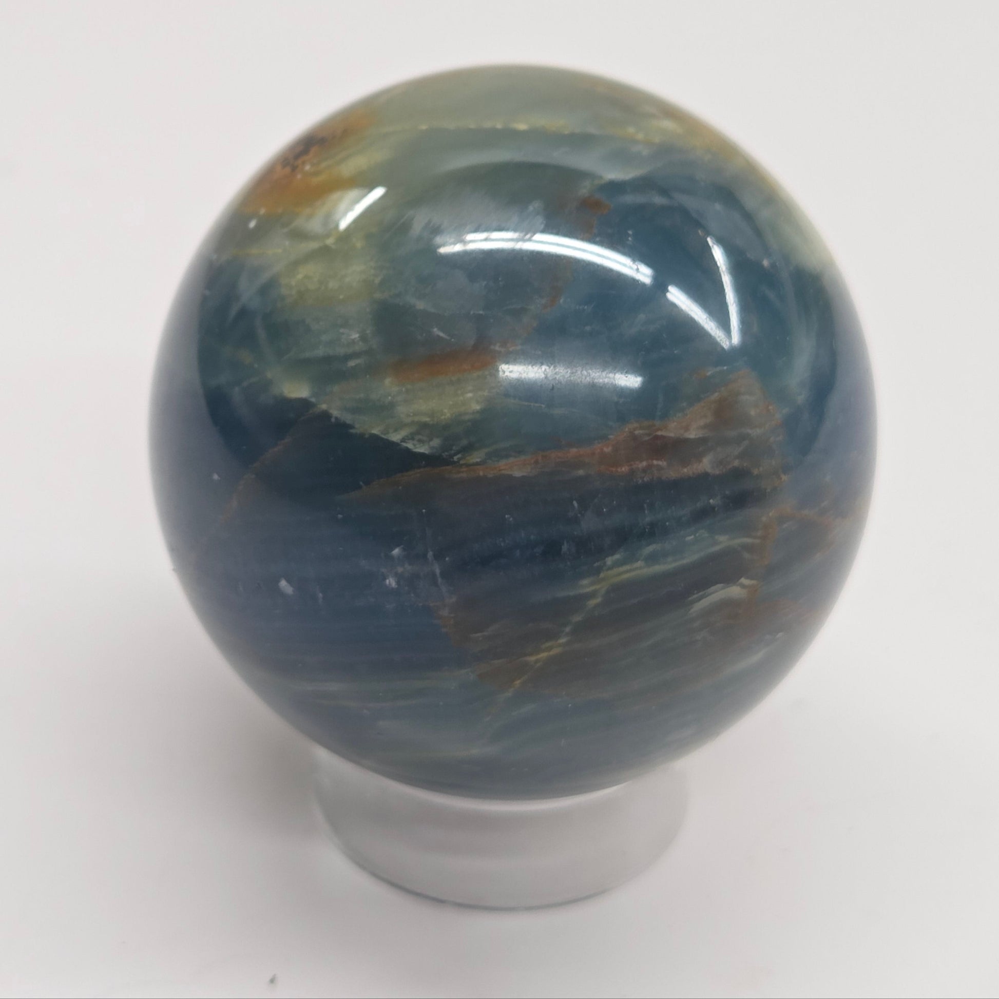 Blue Onyx is a variety of Onyx, which is a type of Chalcedony, that crystallizes in the form of blue, white, and brown-banded masses. Just like Blue Chalcedony, its color is caused by what we refer to as the “Tyndall Effect” which occurs when light scatters from colloid-sized particles. The highest-quality Blue Onyx is found in Argentina, while most other commercial deposits are found in Mexico.