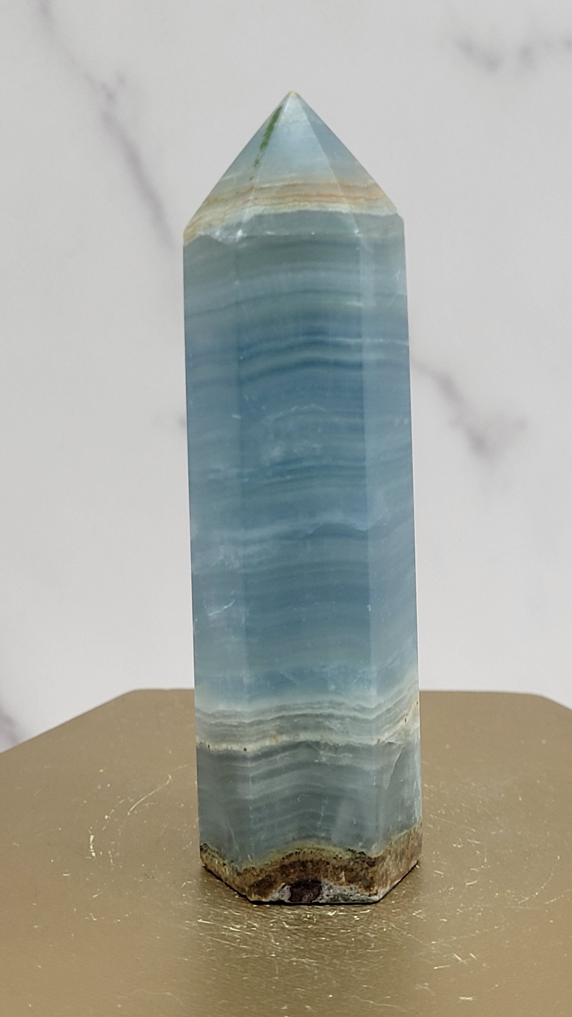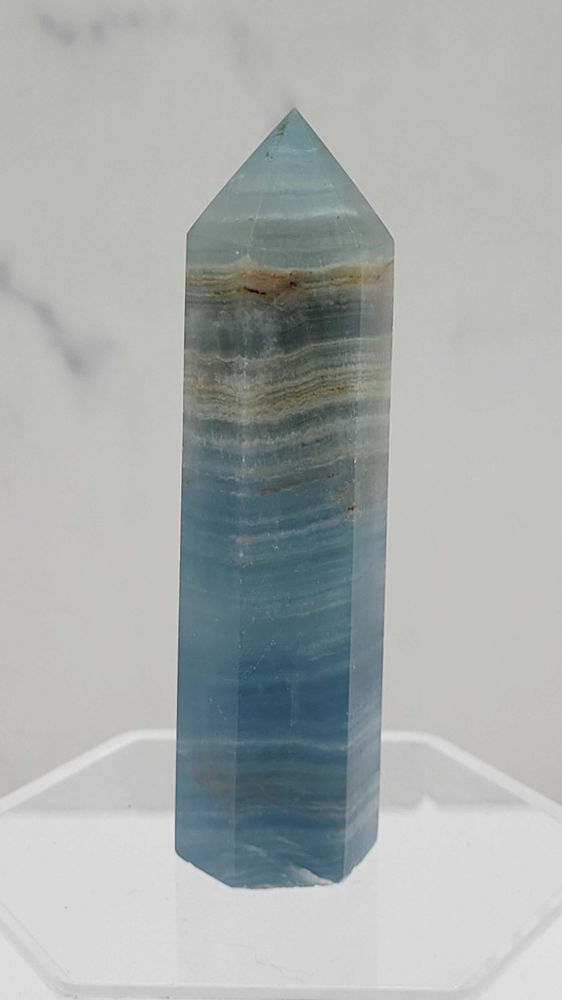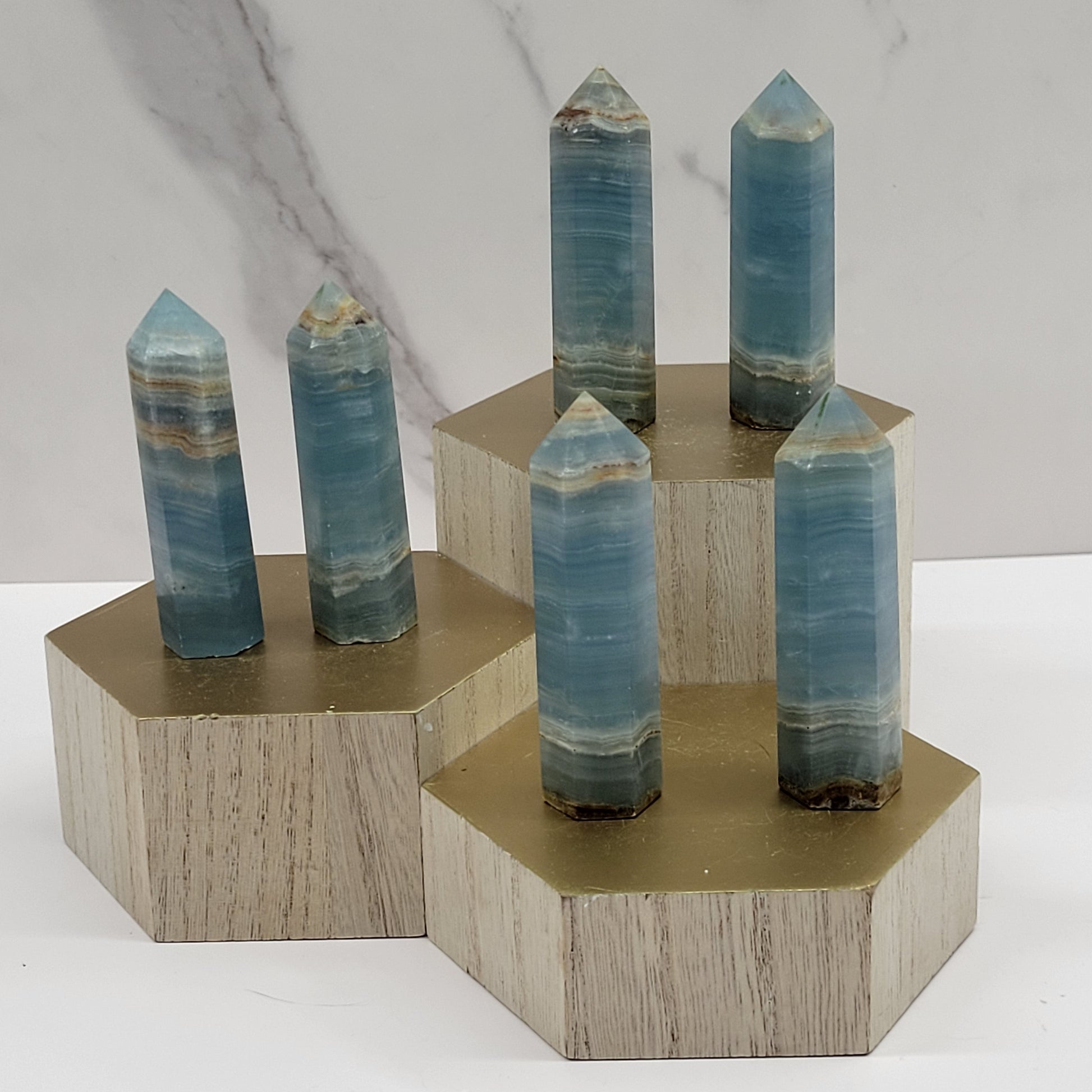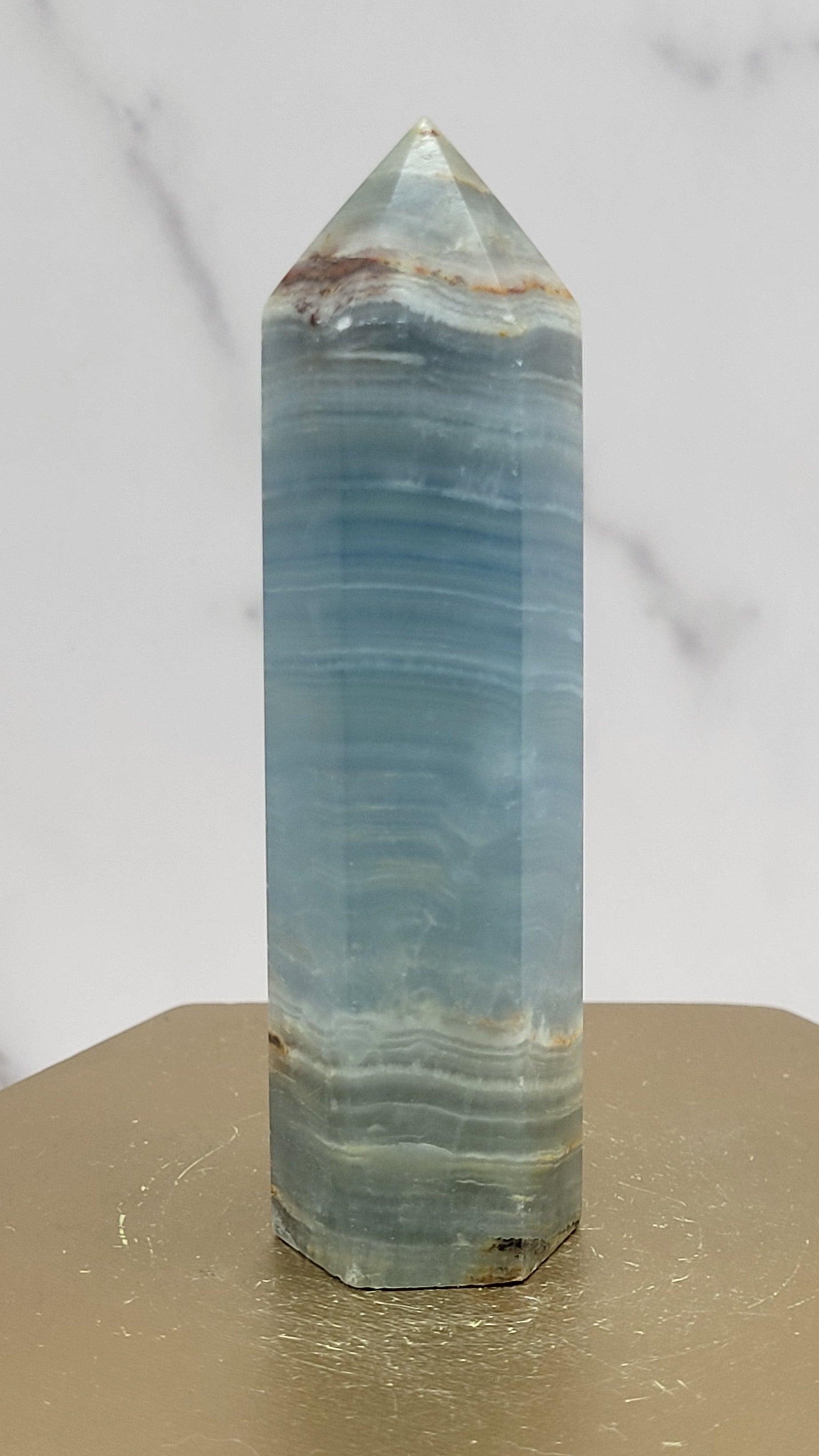 Blue Onyx is a variety of Onyx, which is a type of Chalcedony, that crystallizes in the form of blue, white, and brown-banded masses. Just like Blue Chalcedony, its color is caused by what we refer to as the “Tyndall Effect” which occurs when light scatters from colloid-sized particles. The highest-quality Blue Onyx is found in Argentina, while most other commercial deposits are found in Mexico.