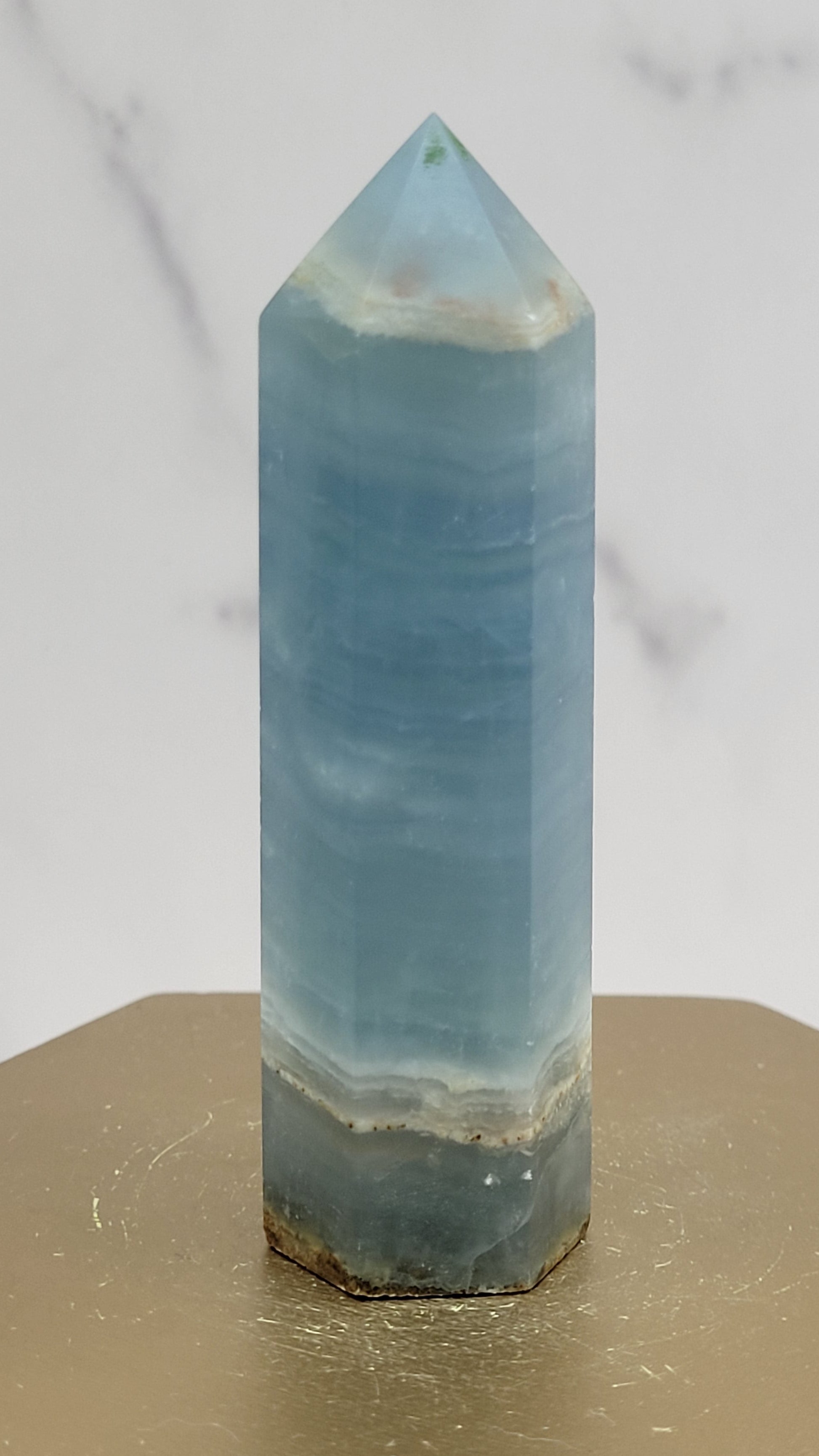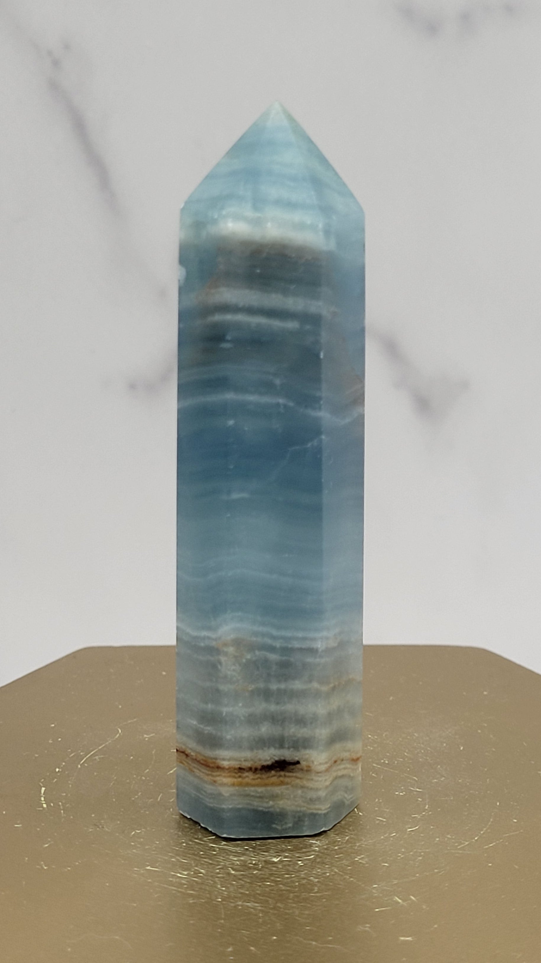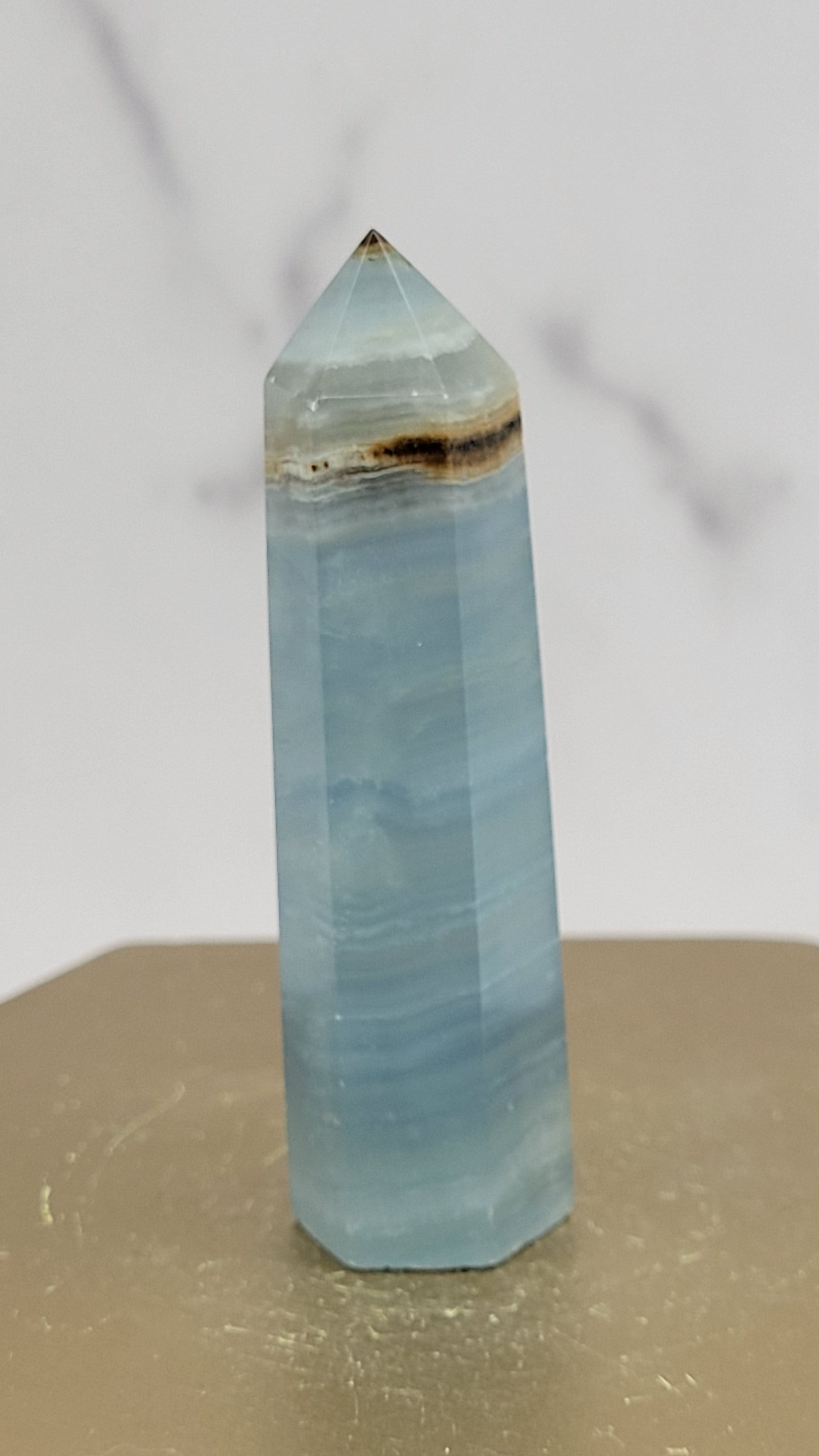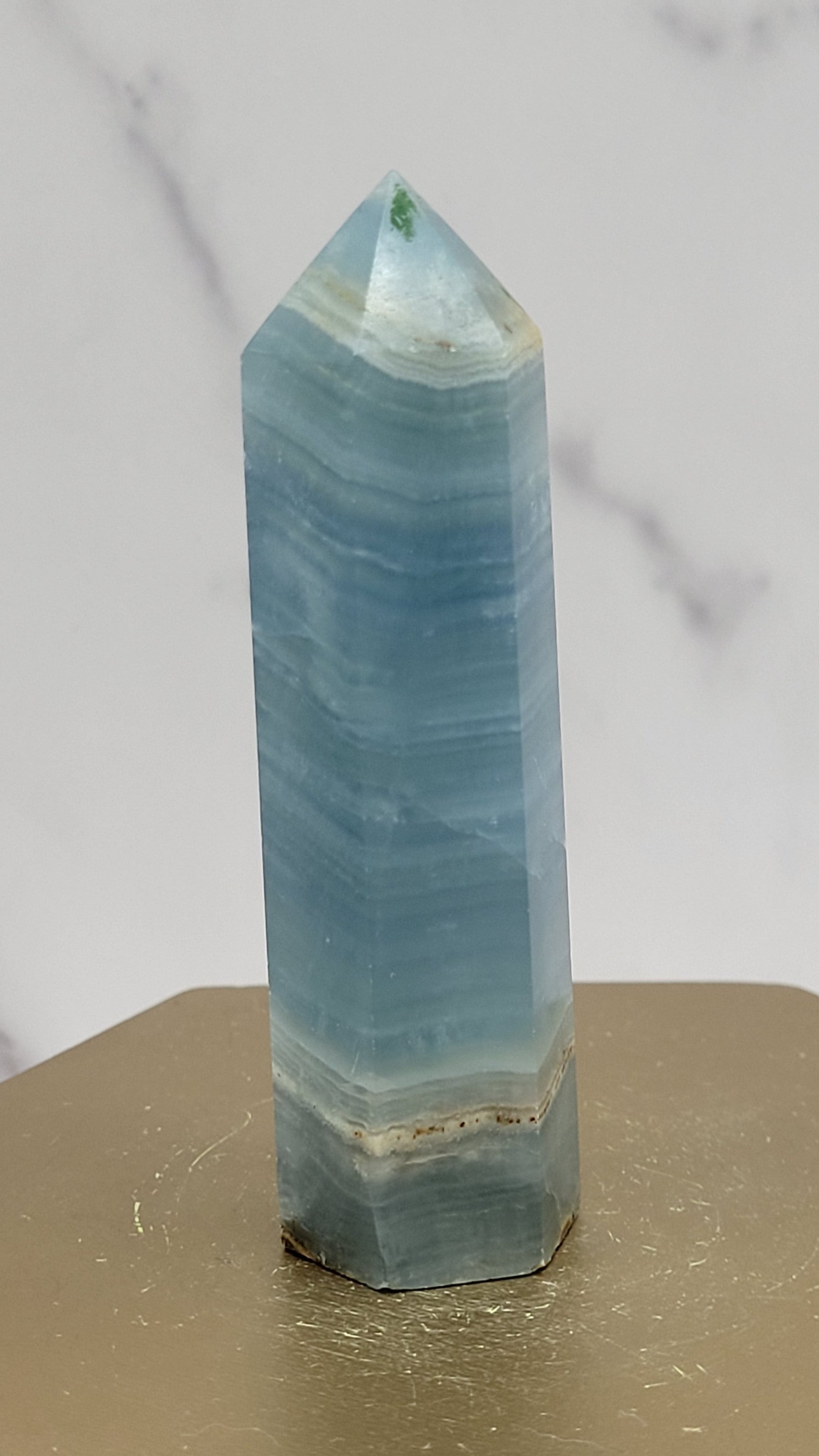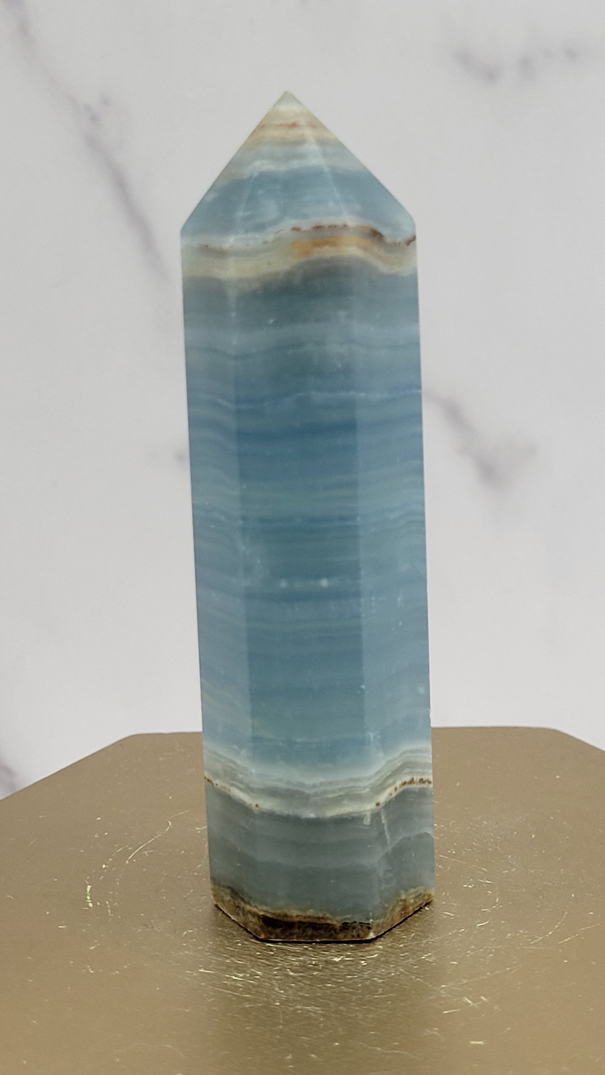 Blue Onyx is a variety of Onyx, which is a type of Chalcedony, that crystallizes in the form of blue, white, and brown-banded masses. Just like Blue Chalcedony, its color is caused by what we refer to as the “Tyndall Effect” which occurs when light scatters from colloid-sized particles. The highest-quality Blue Onyx is found in Argentina, while most other commercial deposits are found in Mexico.