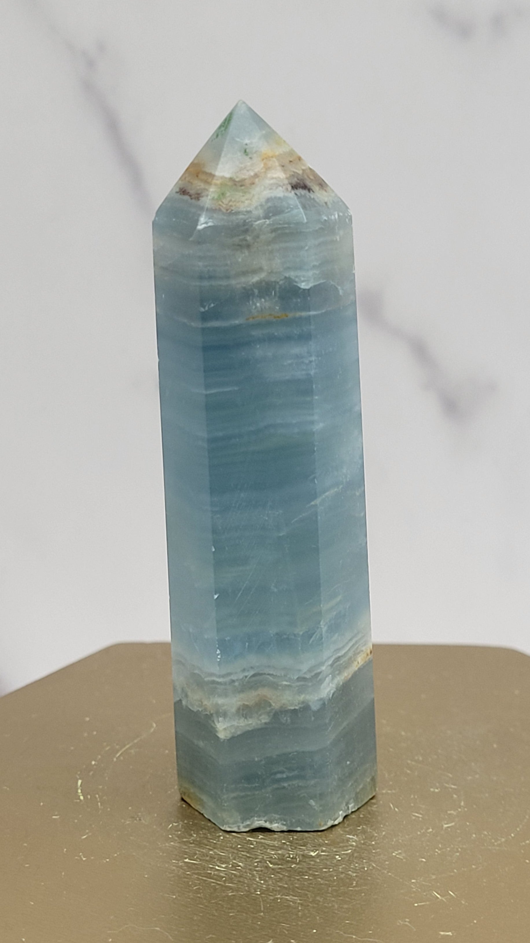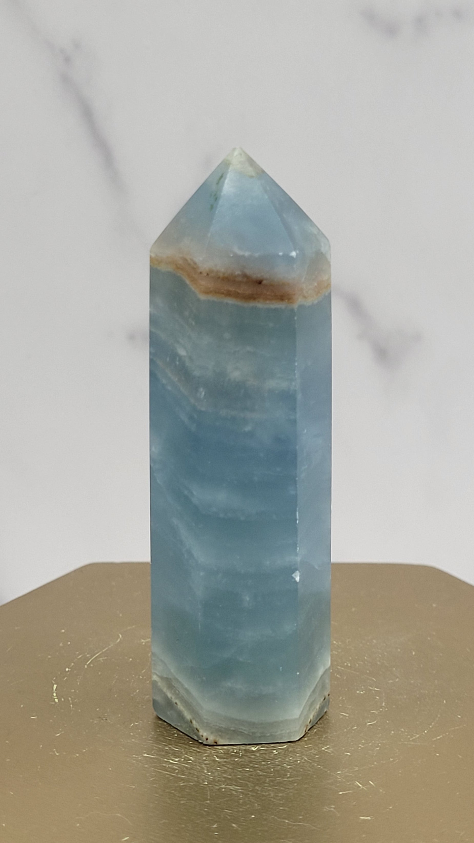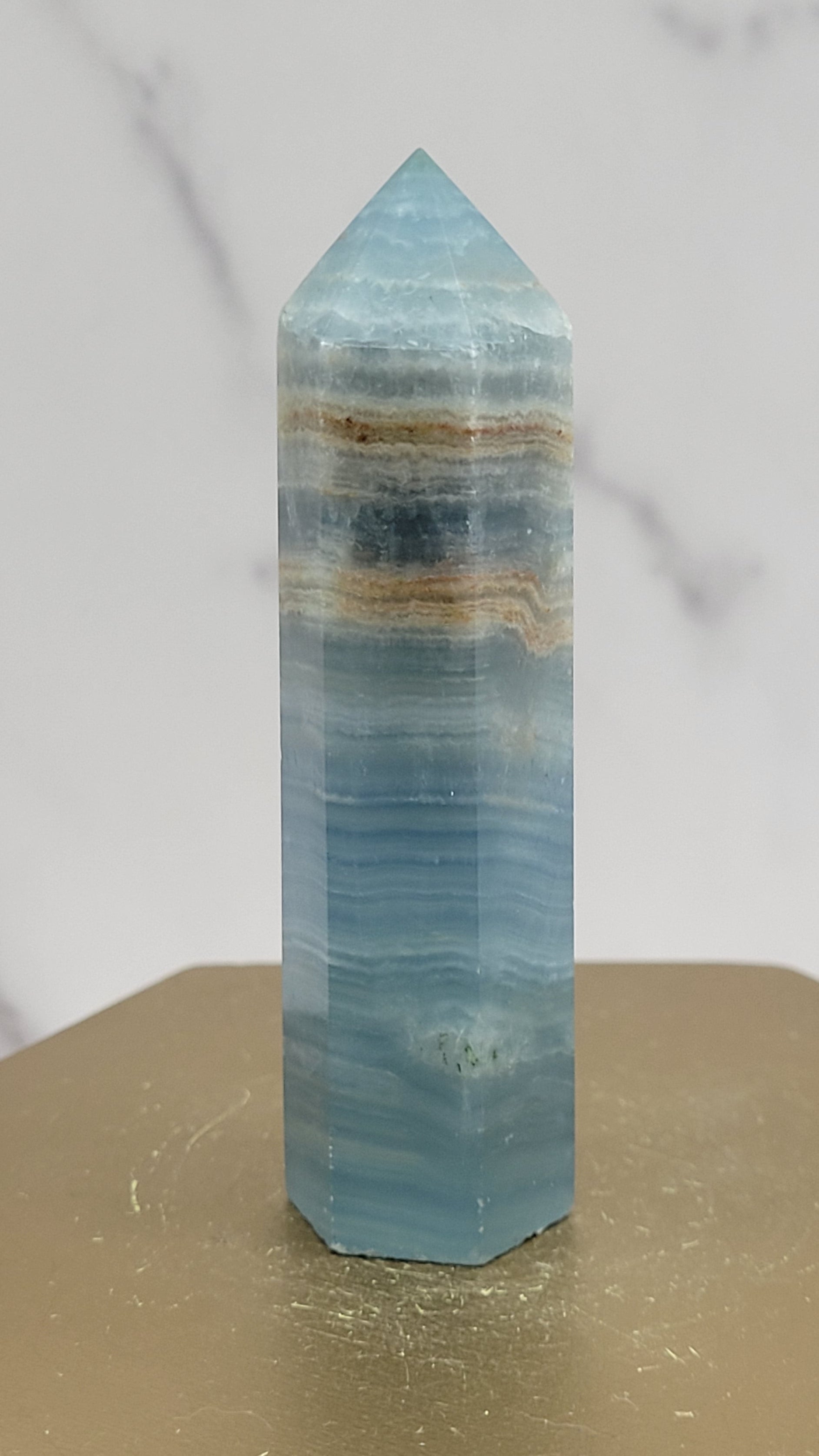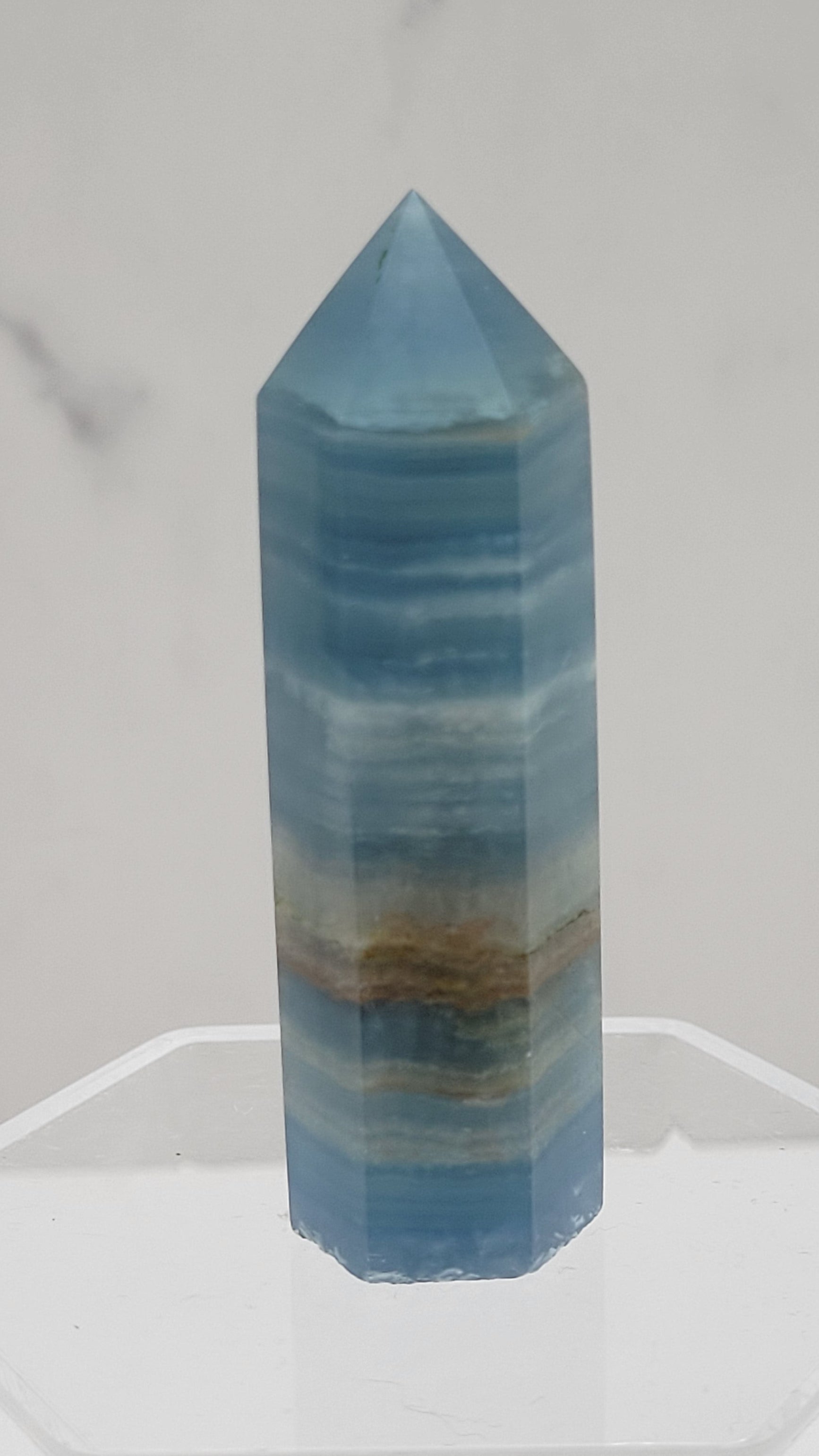Blue Onyx is a variety of Onyx, which is a type of Chalcedony, that crystallizes in the form of blue, white, and brown-banded masses. Just like Blue Chalcedony, its color is caused by what we refer to as the “Tyndall Effect” which occurs when light scatters from colloid-sized particles. The highest-quality Blue Onyx is found in Argentina, while most other commercial deposits are found in Mexico.