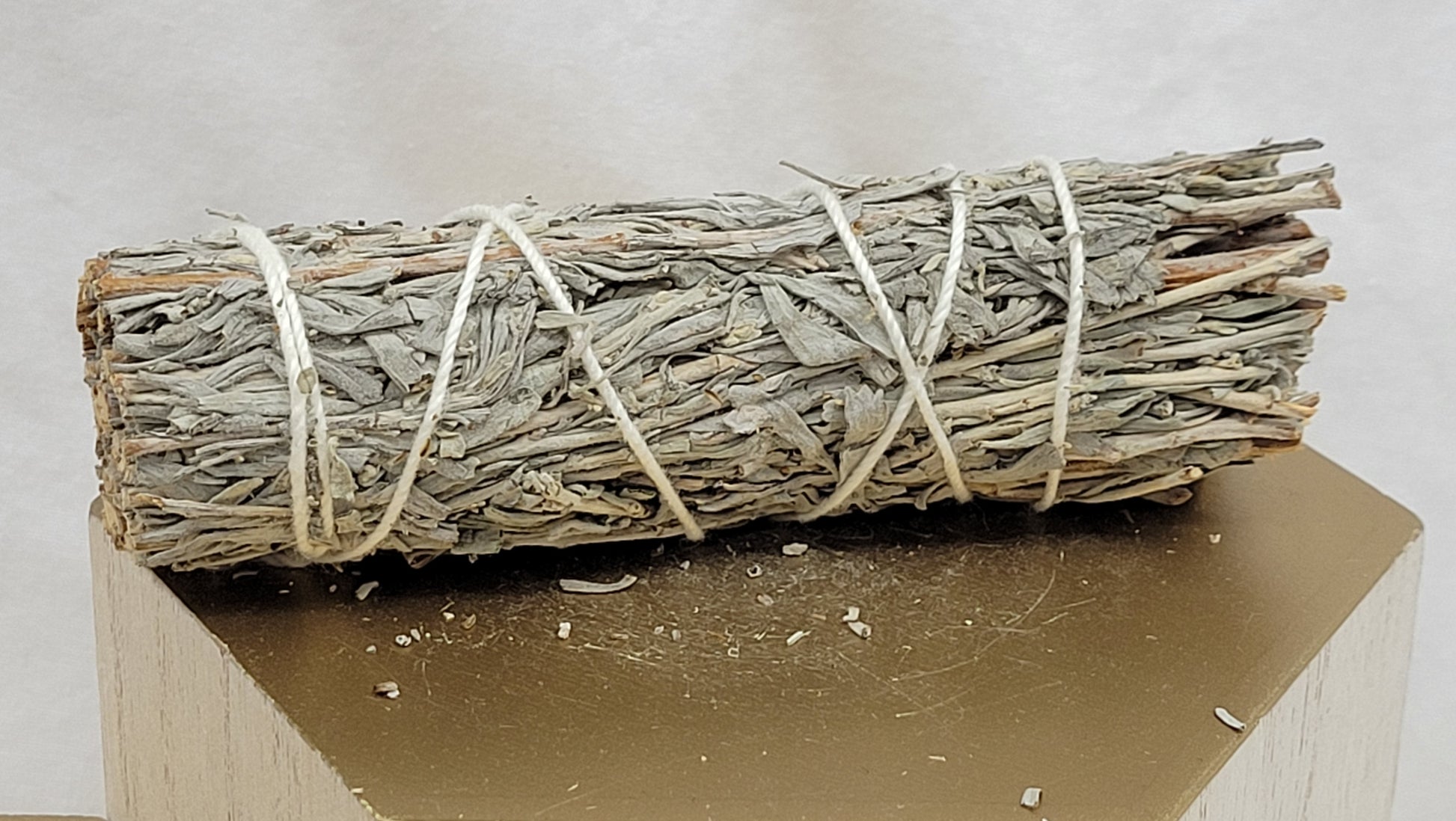 4" Blue Sage (Grandmother Sage): Smoke cleansing w/blue sage attracts wealth and prosperity. Enhances clarity by cleansing self &/or space. The practice helps tranquility and love.