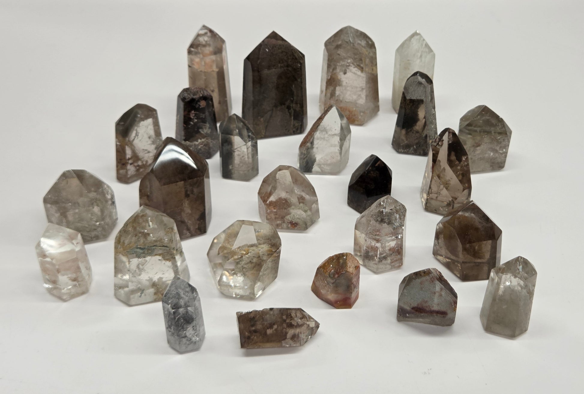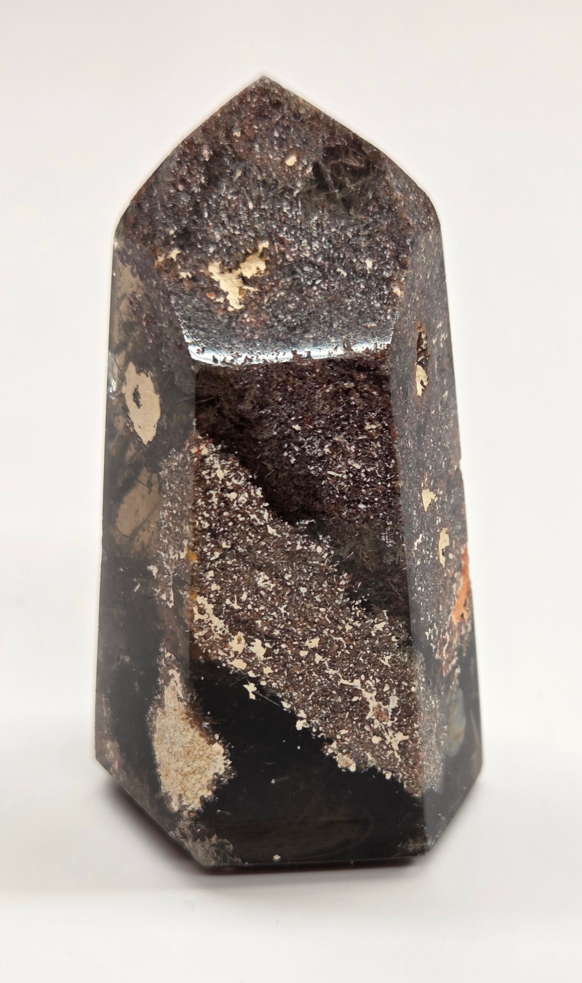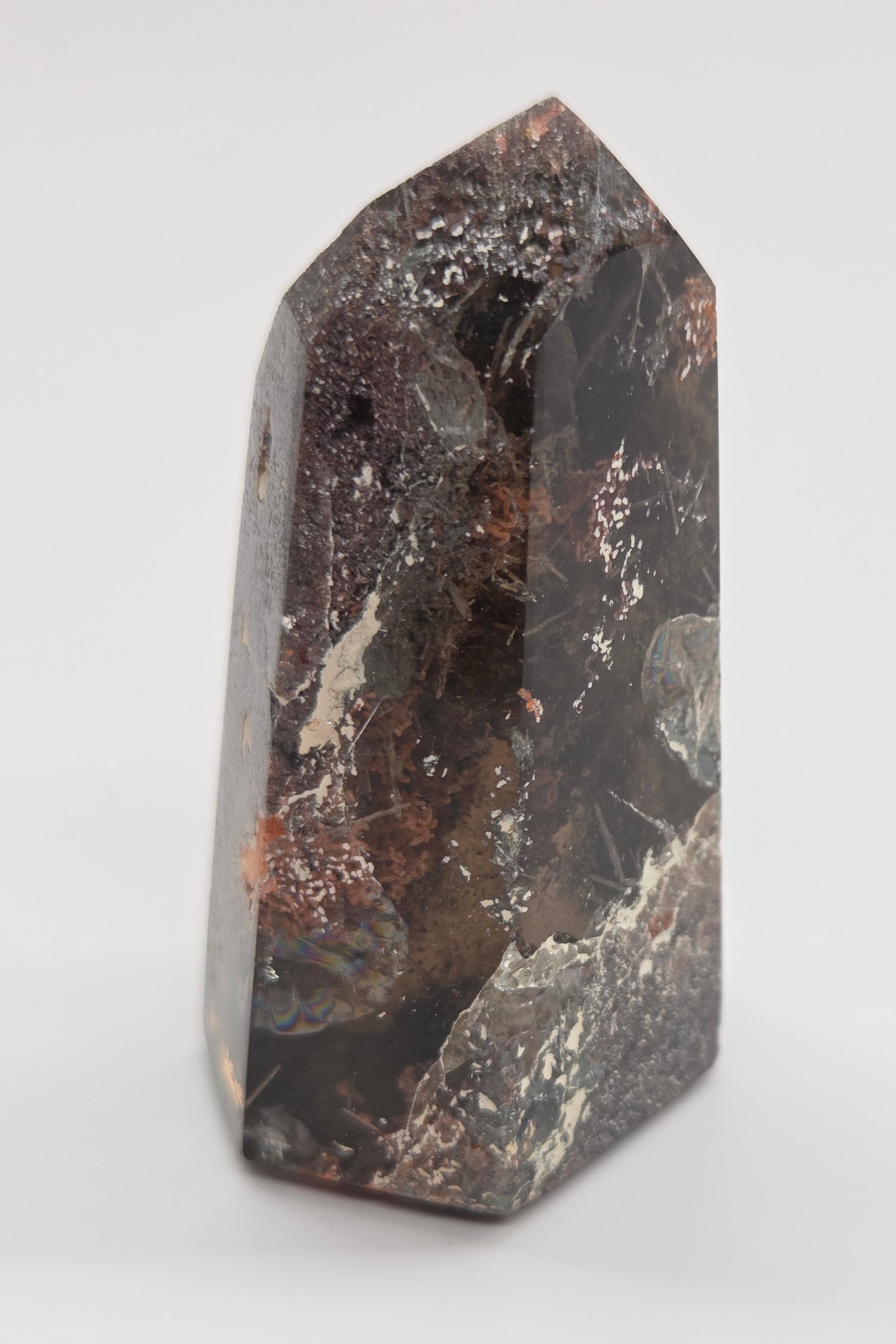 Garden Quartz and/or Thousand Layer Quartz, also known as Lodolite, is a variety of Quartz with inclusions of Chloride, Iron, and other trace minerals. The color can range to just about anything, depending on what trace minerals are inside and how transparent the Quartz crystal is. Its most commonly found in mossy green, pink, black, brown, or grey.