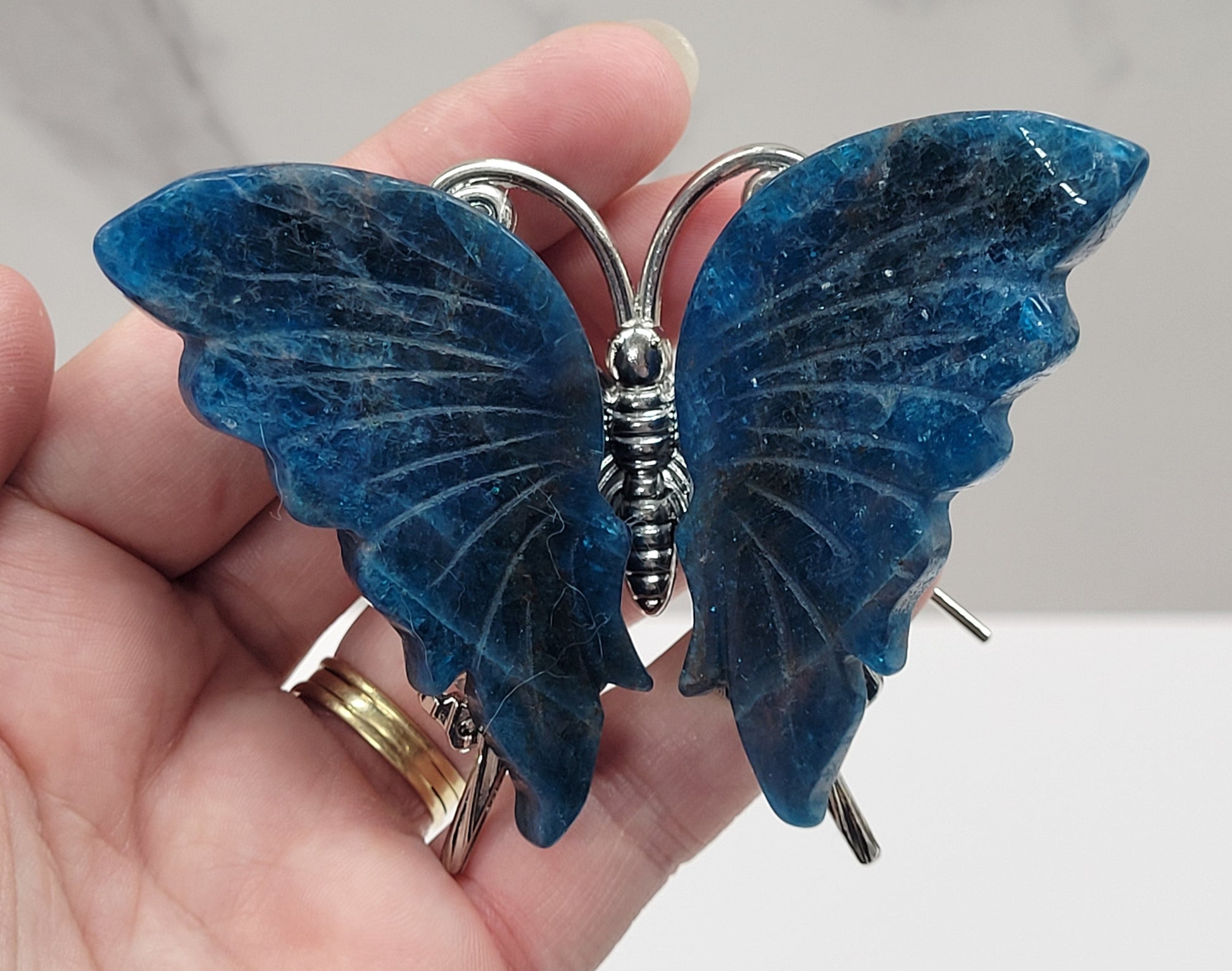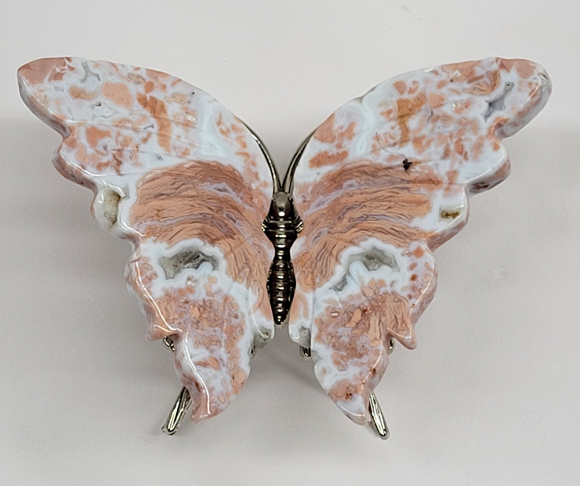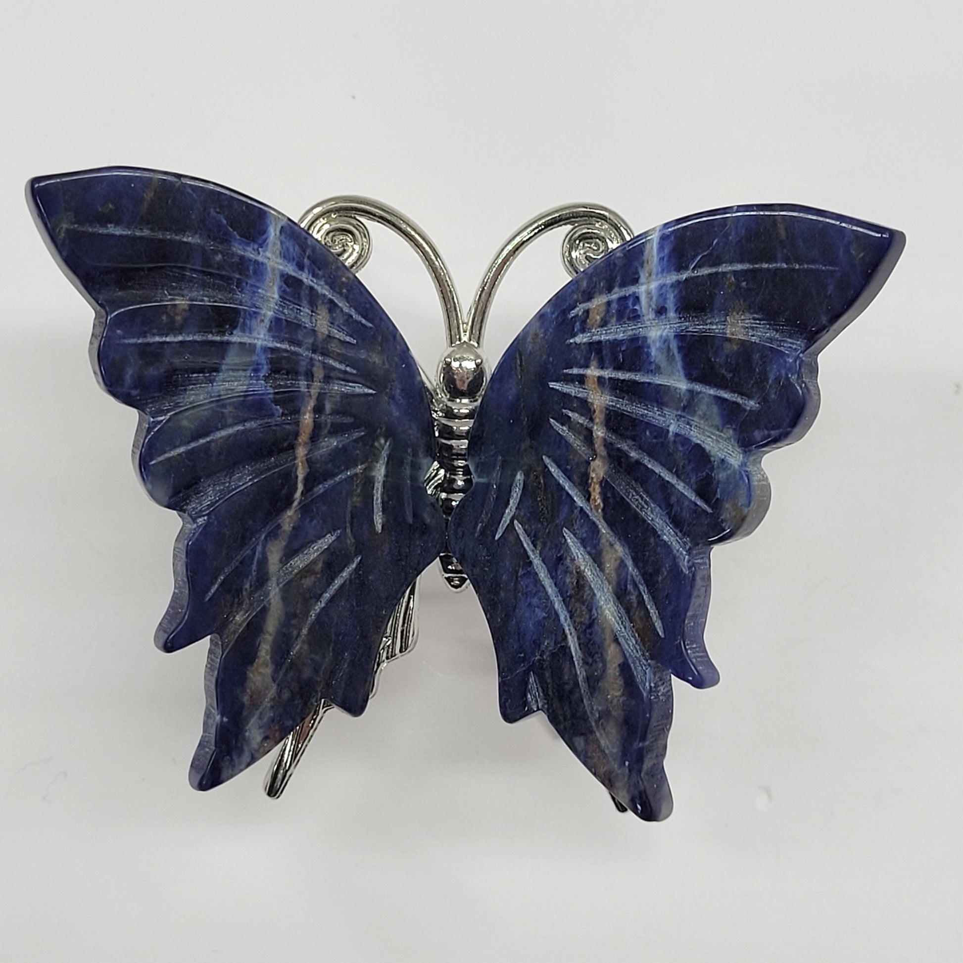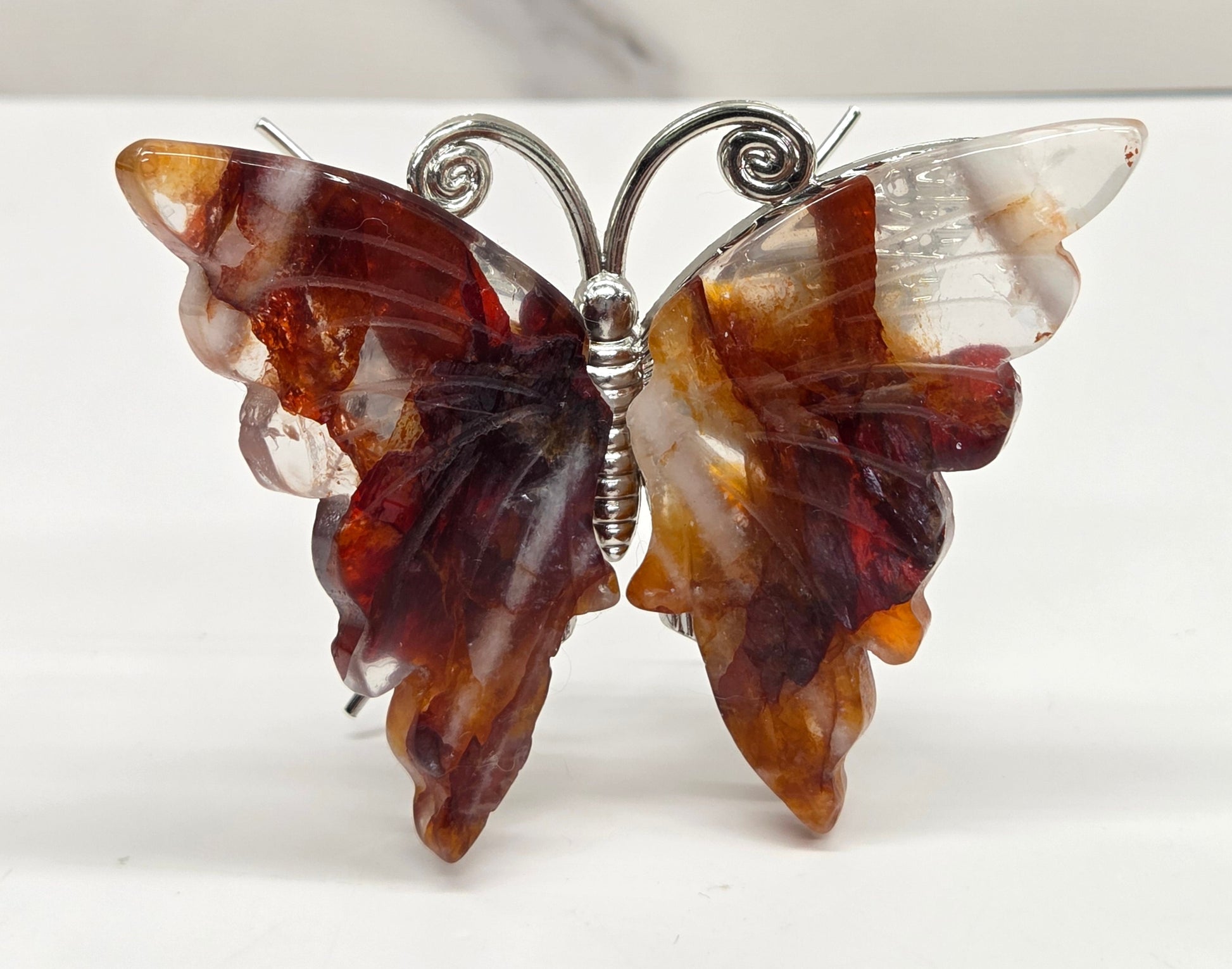 Beautiful butterflies in a variety of materials. Each butterfly is on a silver body with crystal wings. Butterflies range from 3" x 2.5" to 4" x 2.7"