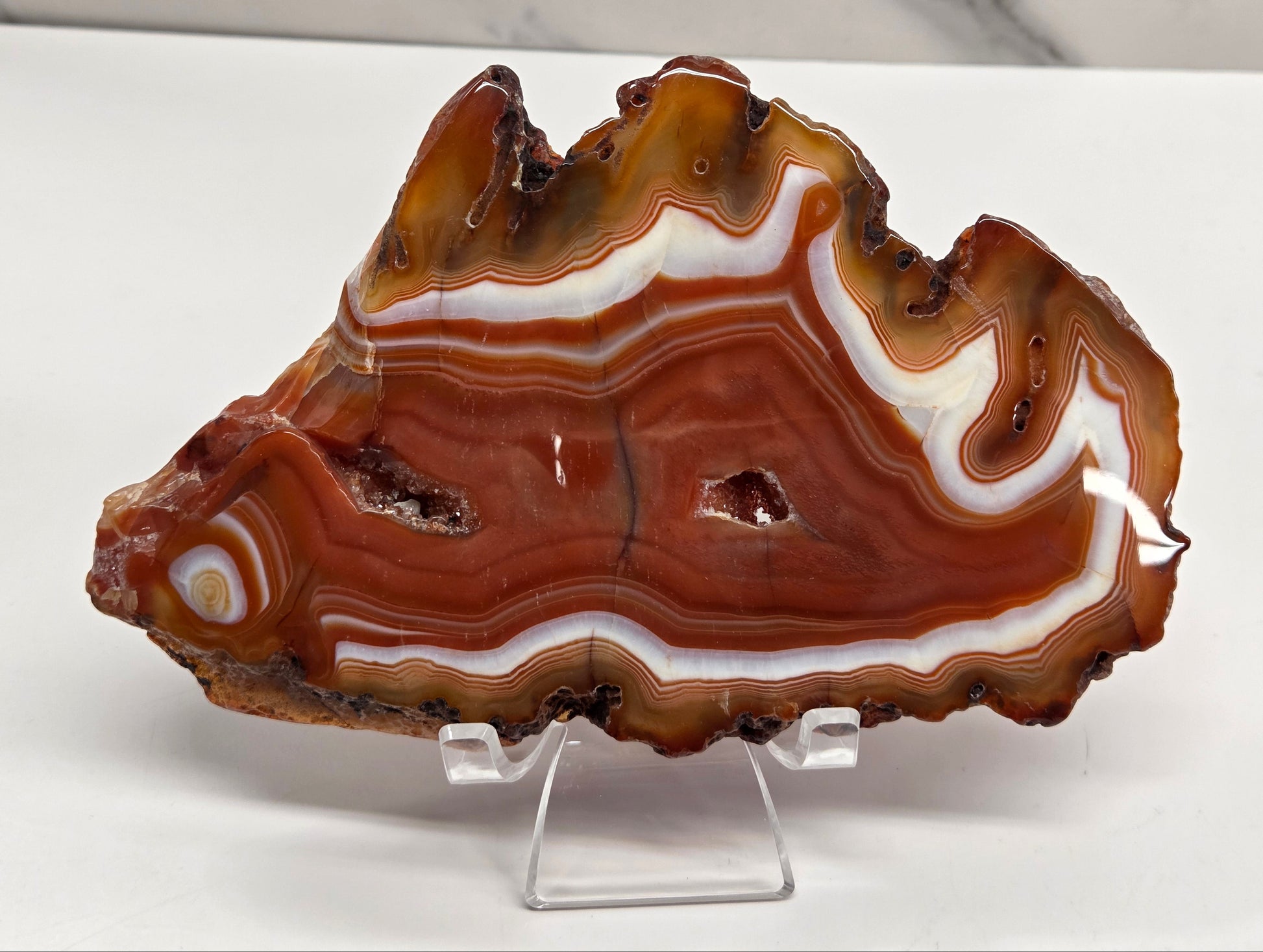 A glassy, translucent stone, Carnelian is an orange-colored variety of Chalcedony, a mineral of the Quartz family. Its color varies from pale pinkish-orange to a deep rusty brown, though it is most known for its brilliant orange and red-orange crystals.