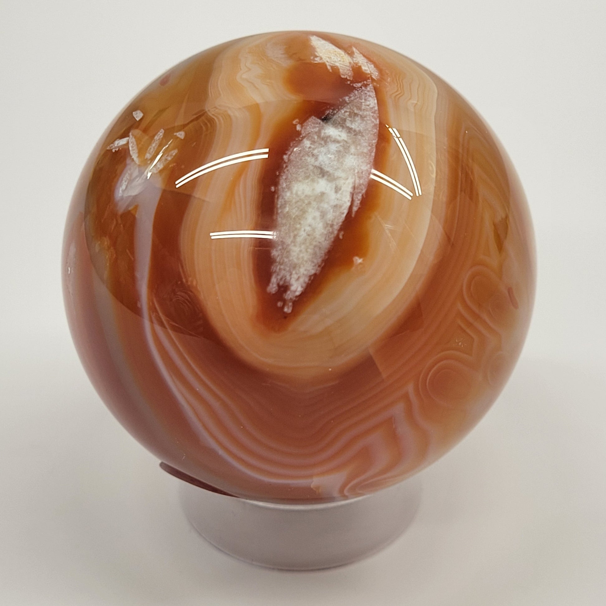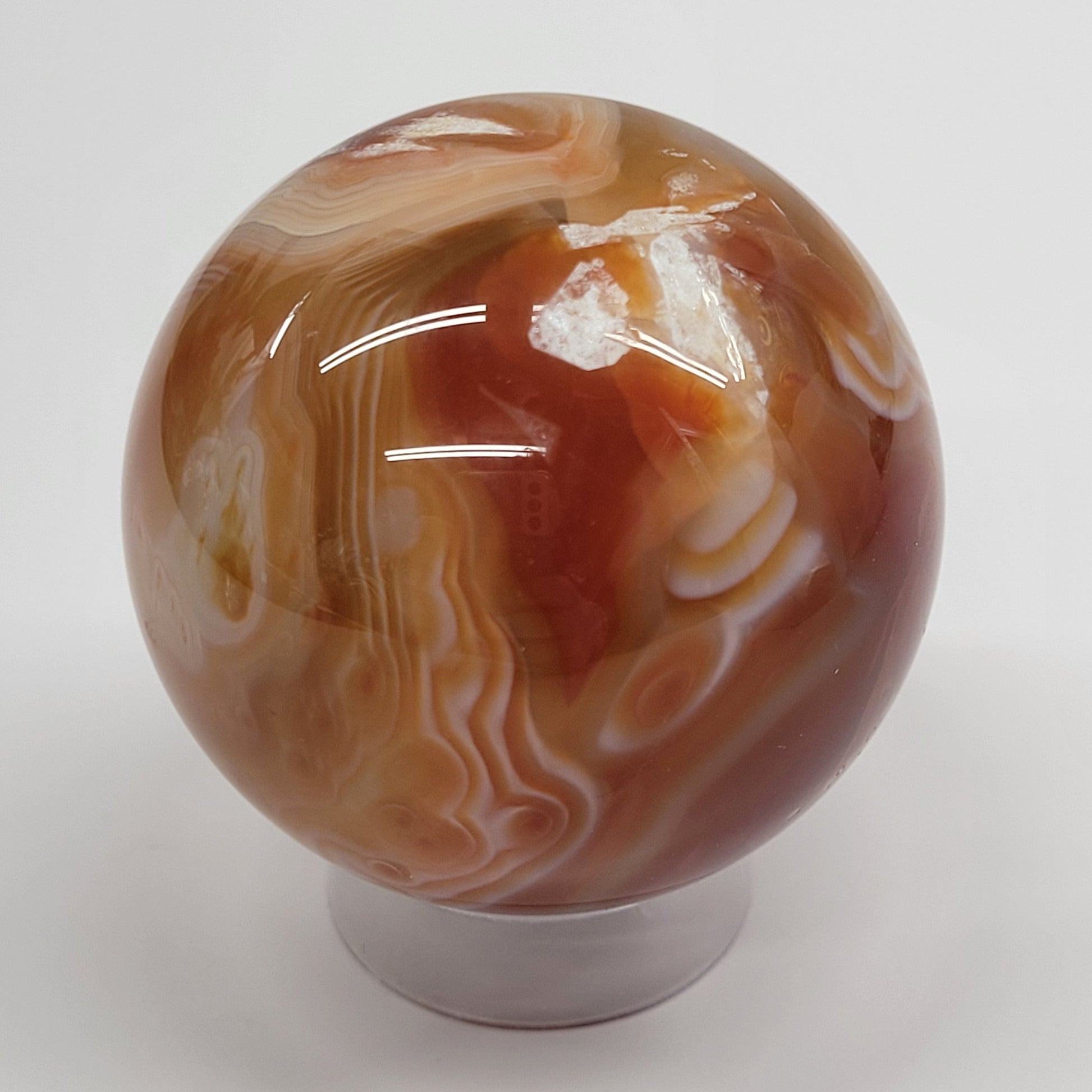 A glassy, translucent stone, Carnelian is an orange-colored variety of Chalcedony, a mineral of the Quartz family. Its color varies from pale pinkish-orange to a deep rusty brown, though it is most known for its brilliant orange and red-orange crystals.
