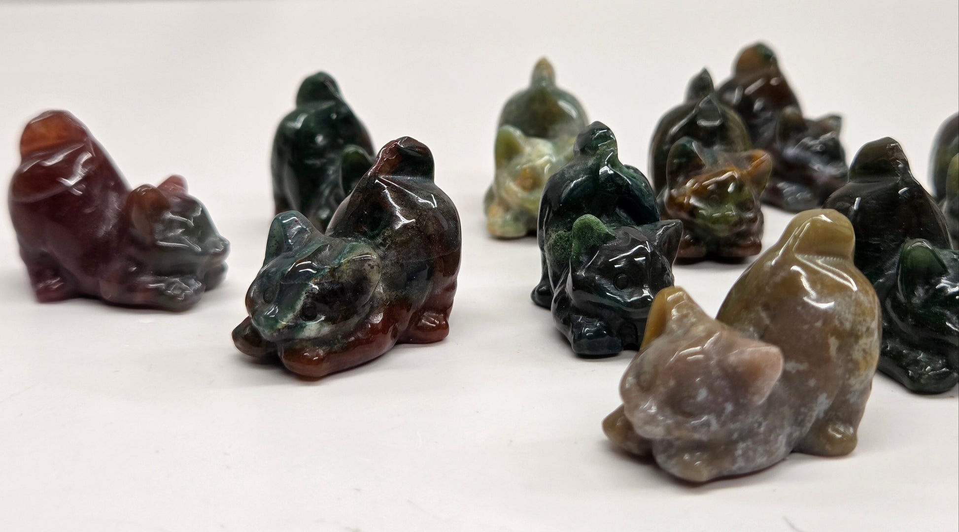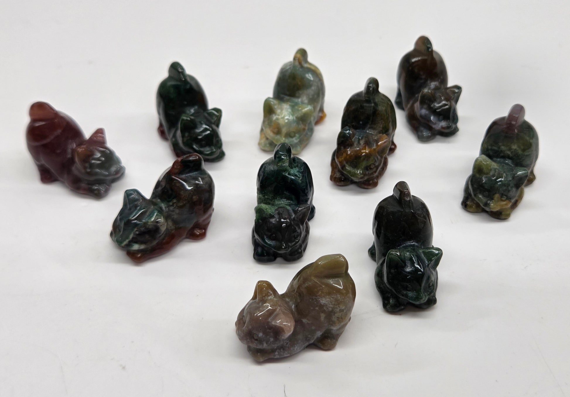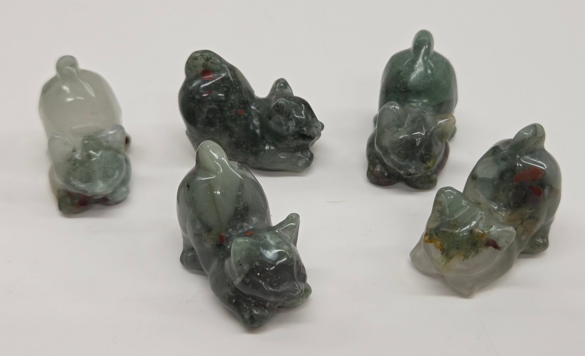 Adorable cat carvings in a variety of materials. Cats measure approx. 1.5"
