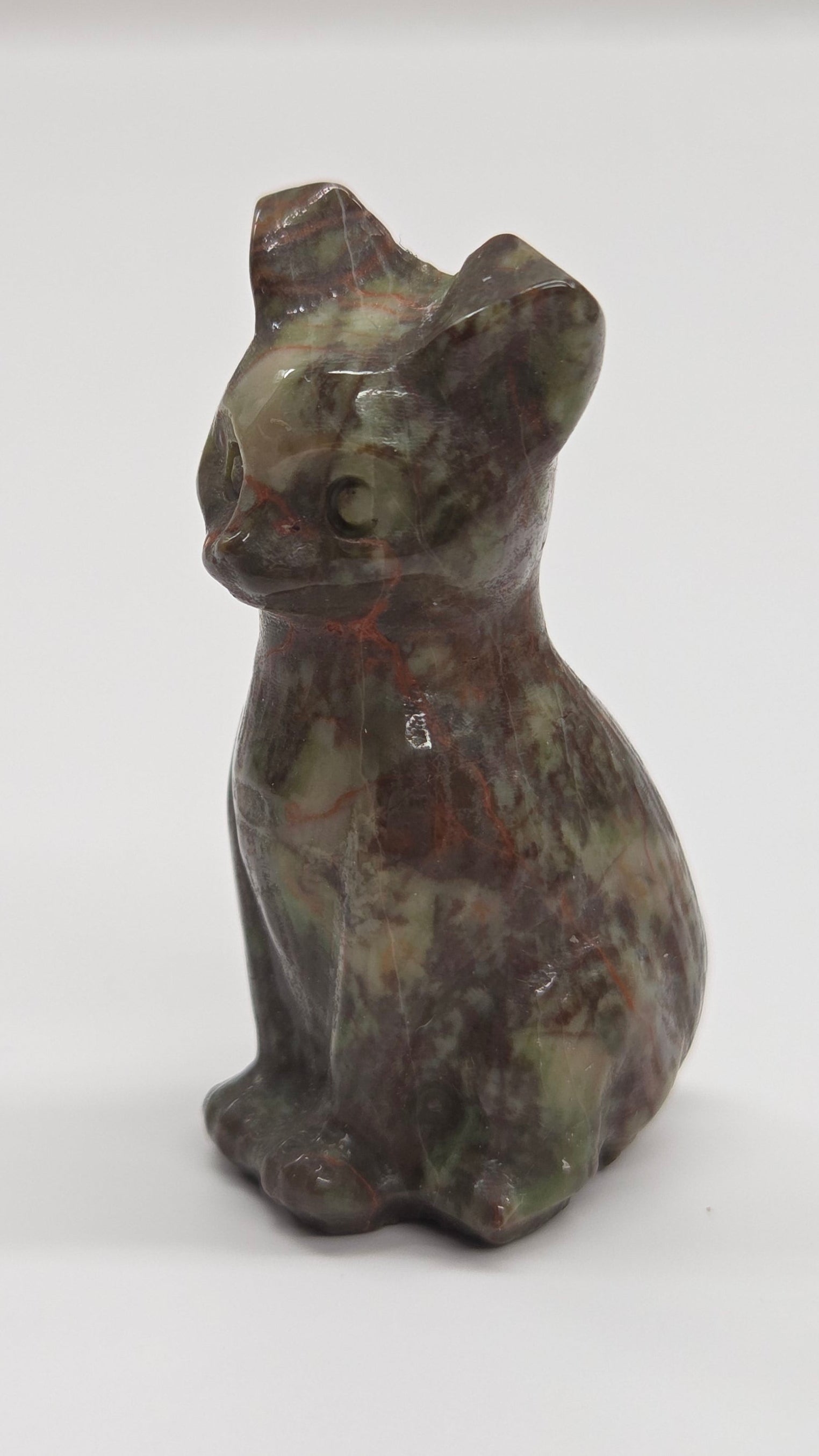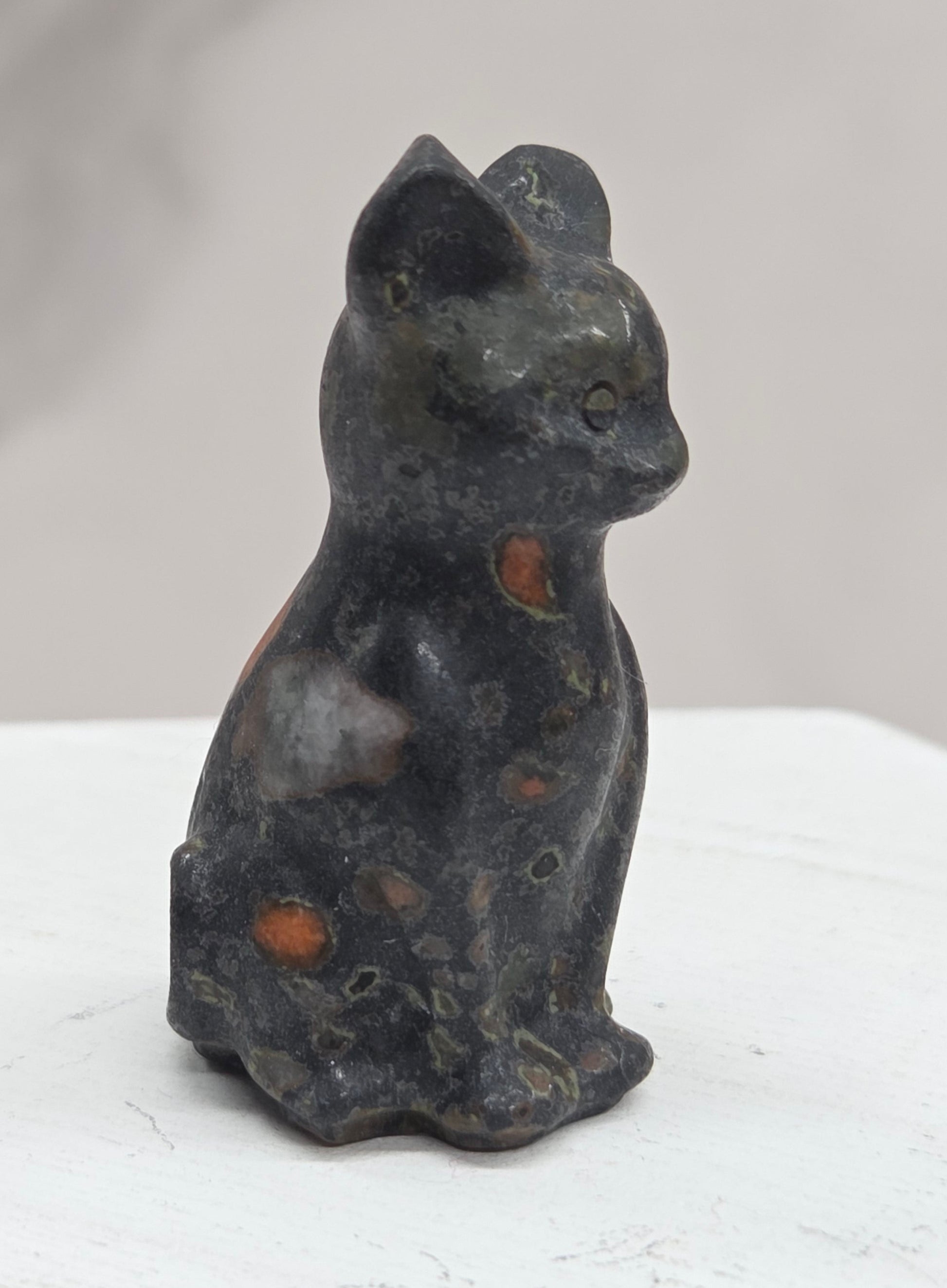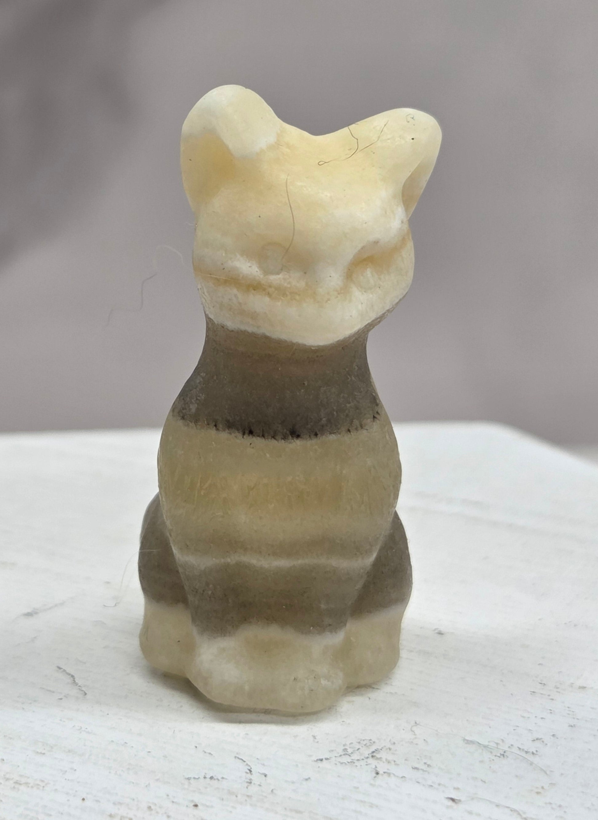 Tall siting cat/kitty carvings in a variety of materials. Each cat measures 1.6" tall