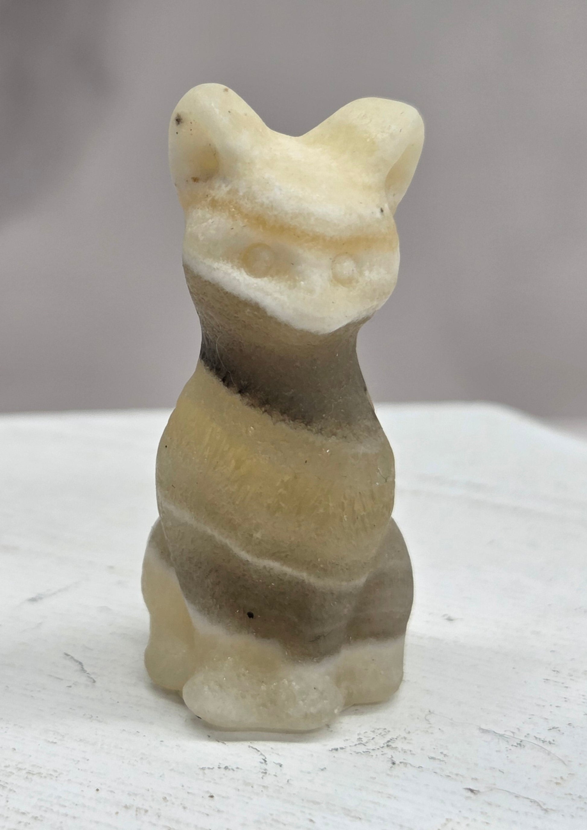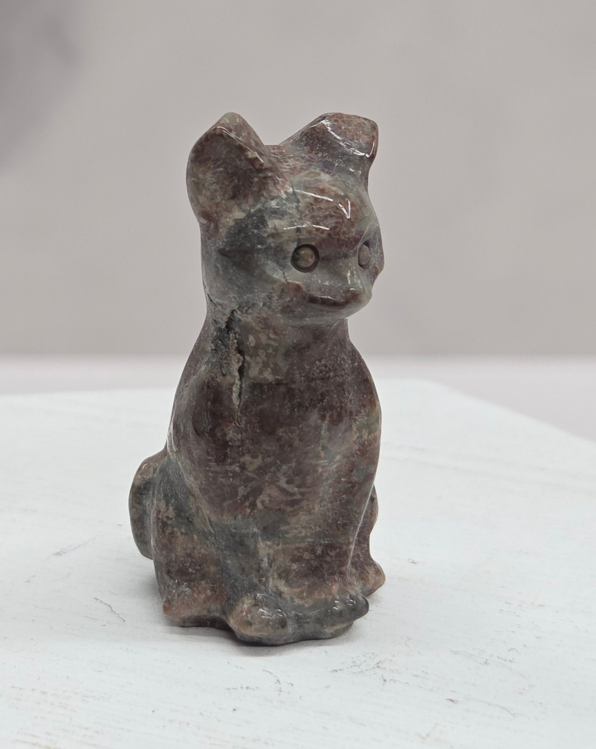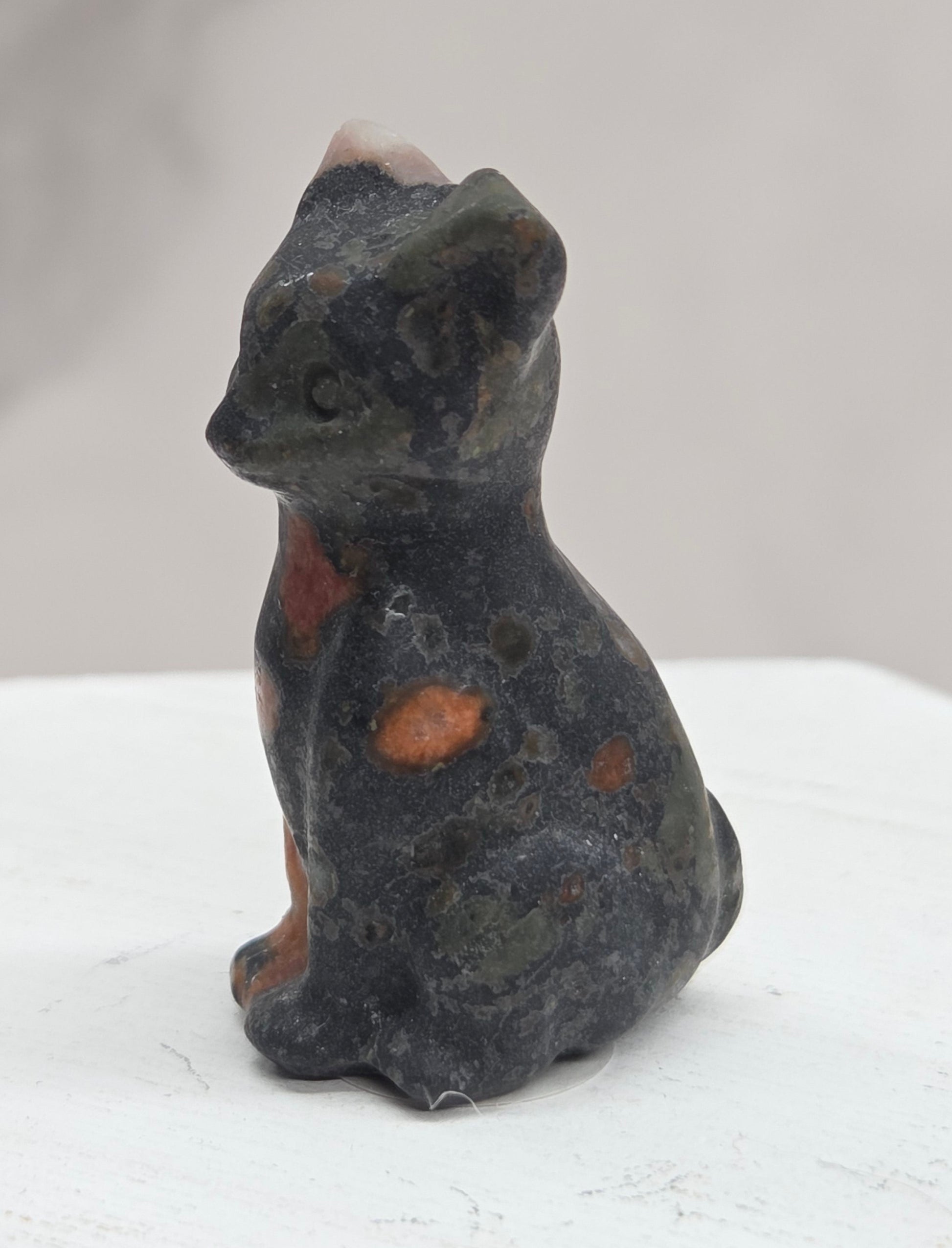 Tall siting cat/kitty carvings in a variety of materials. Each cat measures 1.6" tall