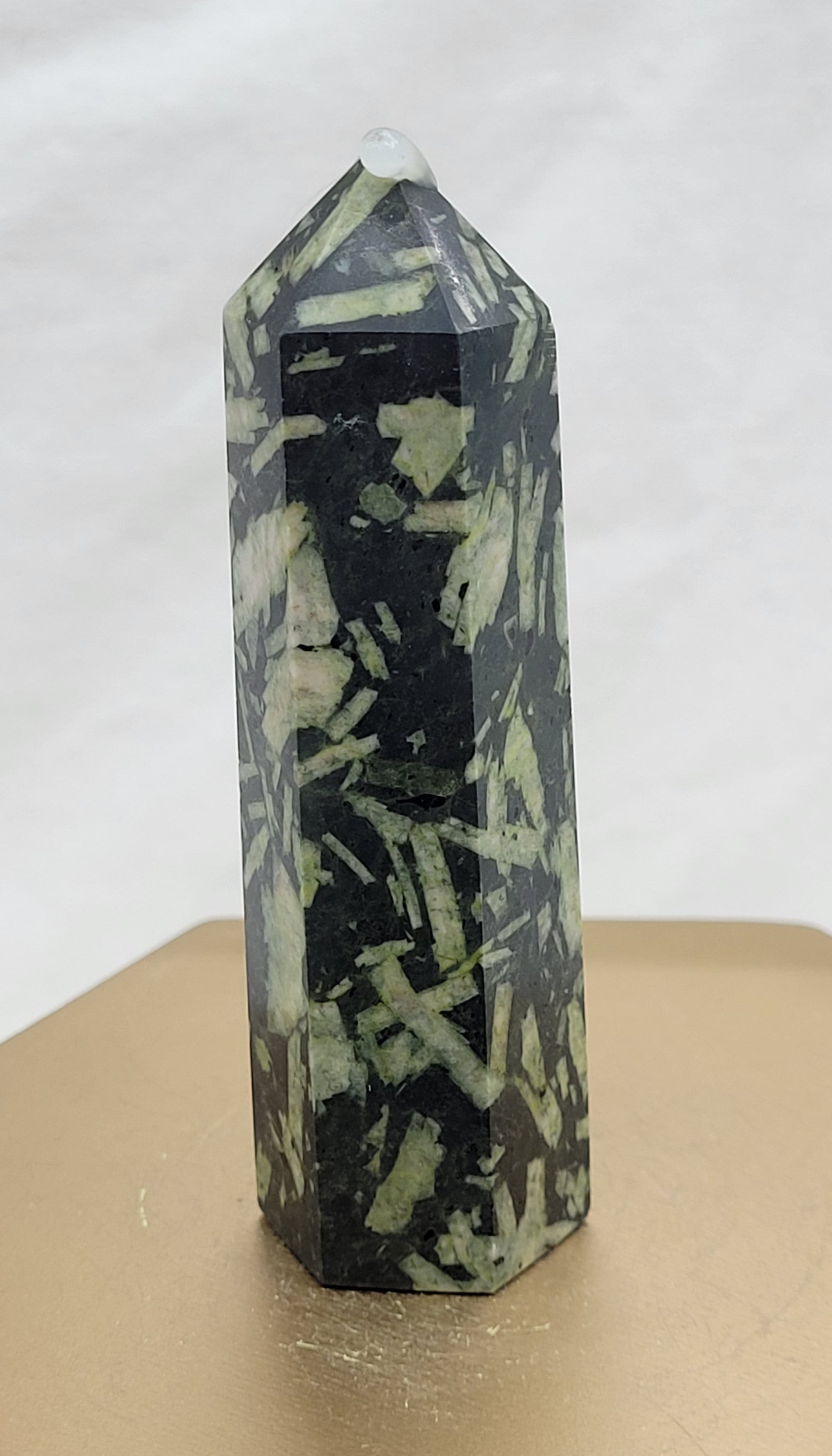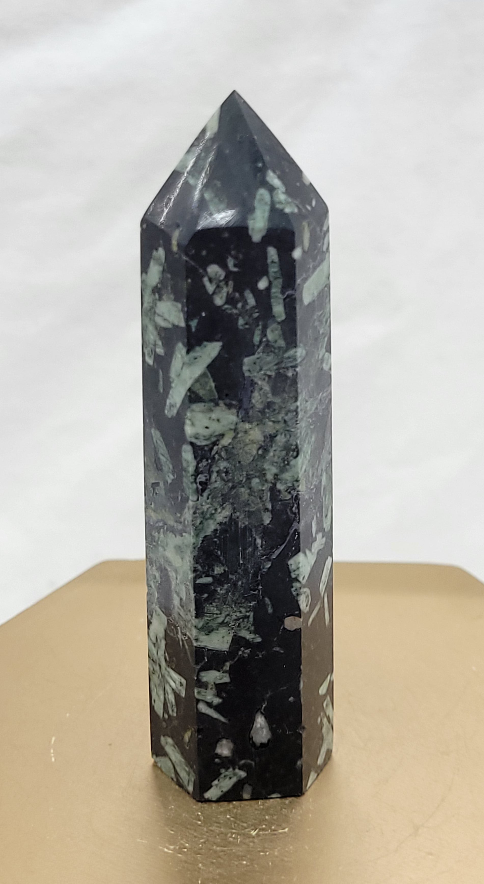 Chinese Writing Stone, also known as Chinese Writing Rock, is a rare Basalt porphyry (a combination of granular sediment dispersed in a matrix) mineral with elongated feldspar crystal inclusions. These crystals are usually white and are oftentimes seen as overlapping, nearly resembling letters of an ancient Chinese script (hence the name).