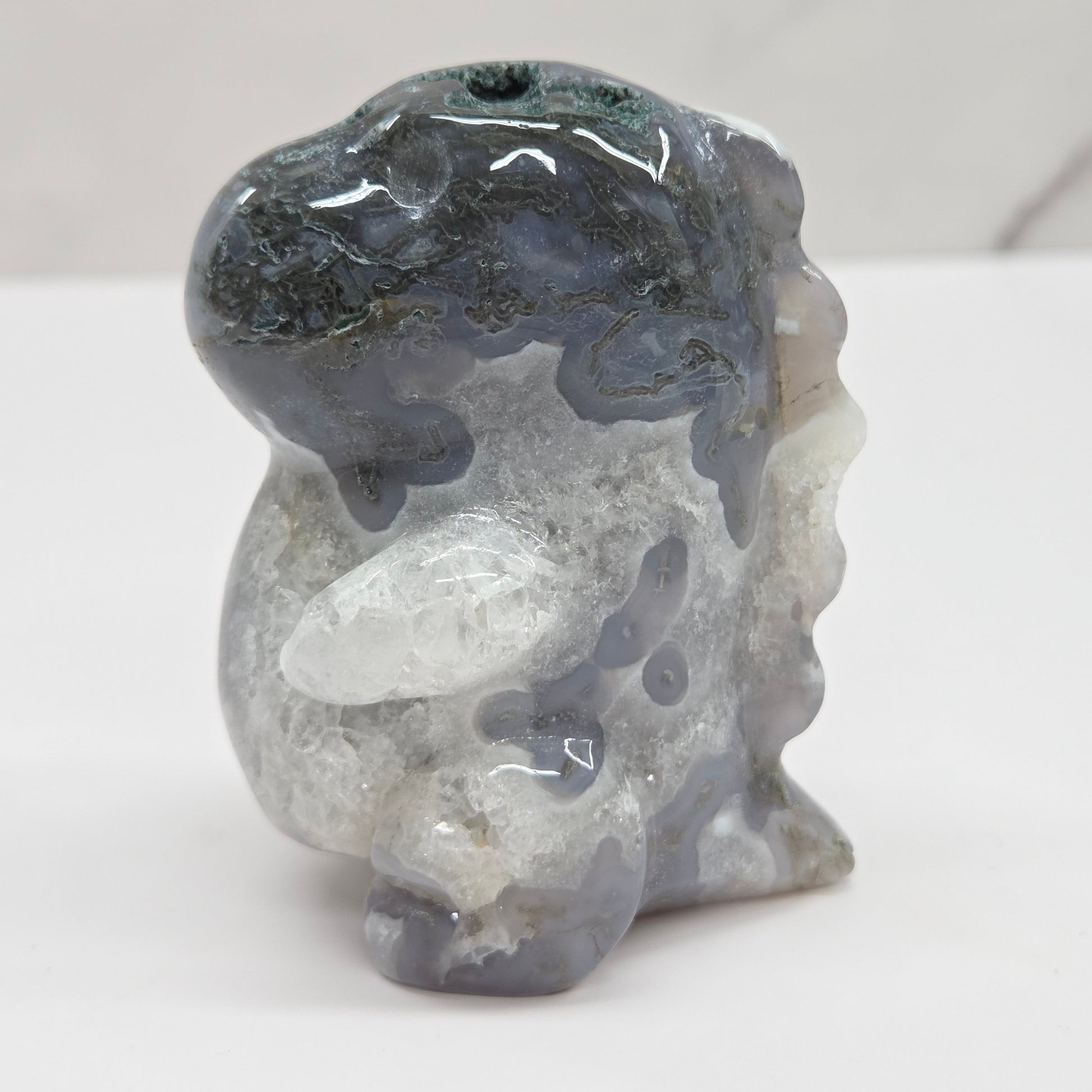 Moss agate isn't actually moss or technically an agate. It is a variety of chalcedony, belonging to the quartz family. The spreading moss-like dendritic inclusions you see in moss agate are mostly oxides of manganese or iron.