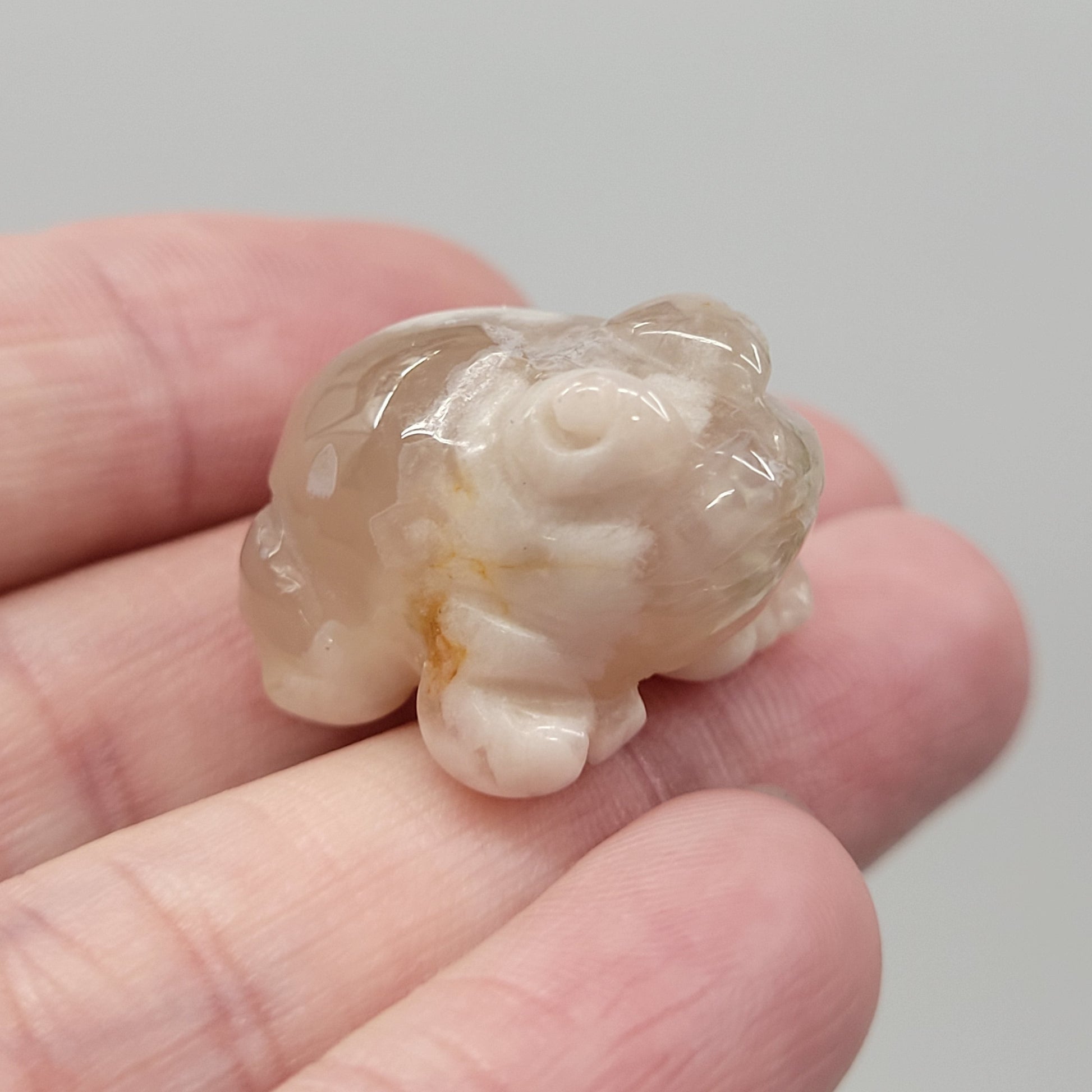 Adorable chunky frog carvings in Flower Agate or Amazonite. Each frog measures 1"