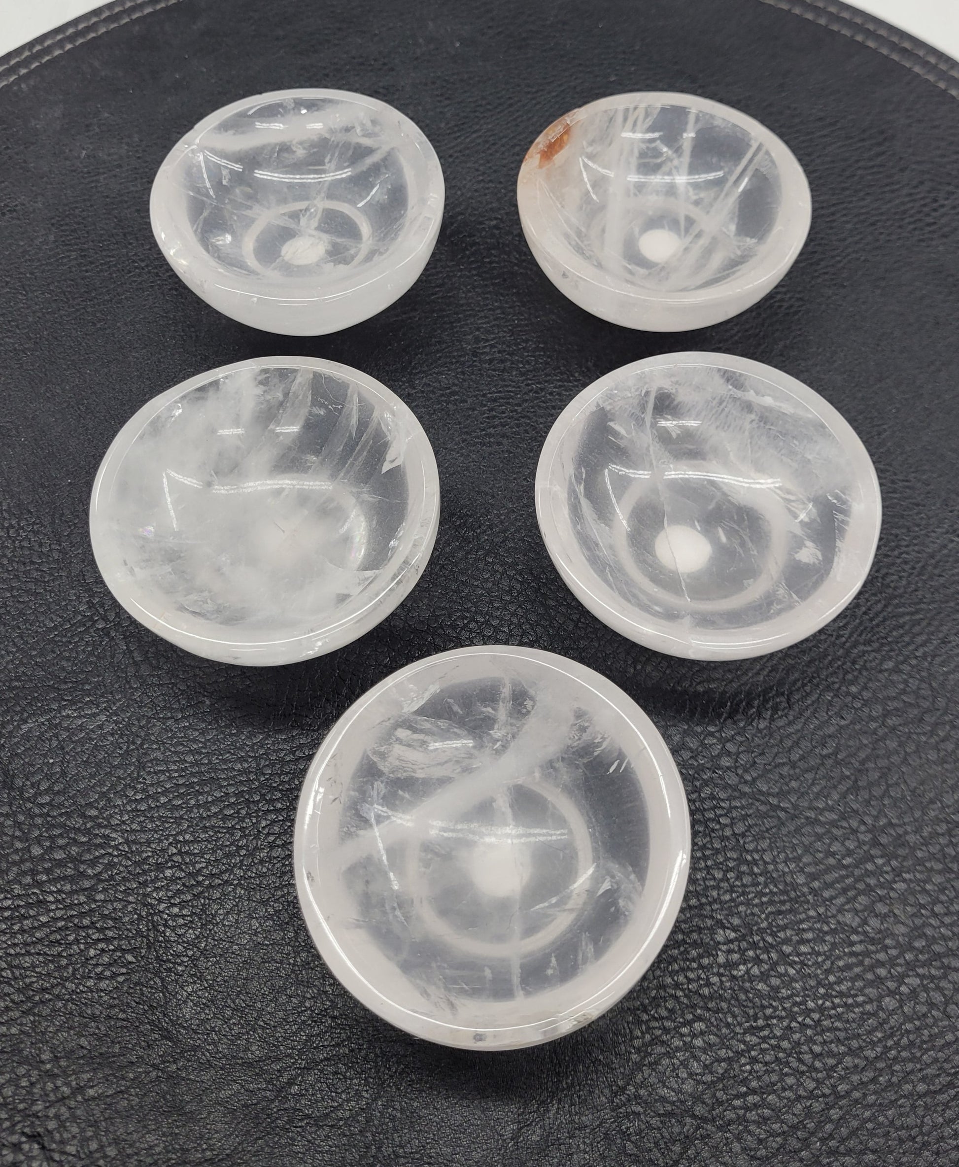 Beautiful and gemmy Clear Quartz bowls. Each bowl measures approx. 2.5" x 2.5"