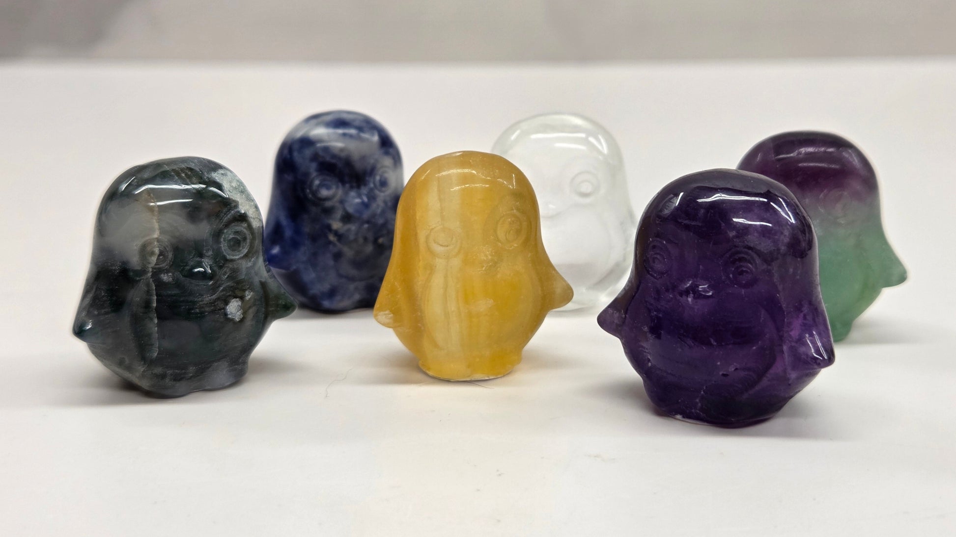Adorable penguin carvings in a variety of materials. Each carving measures approx. 1"