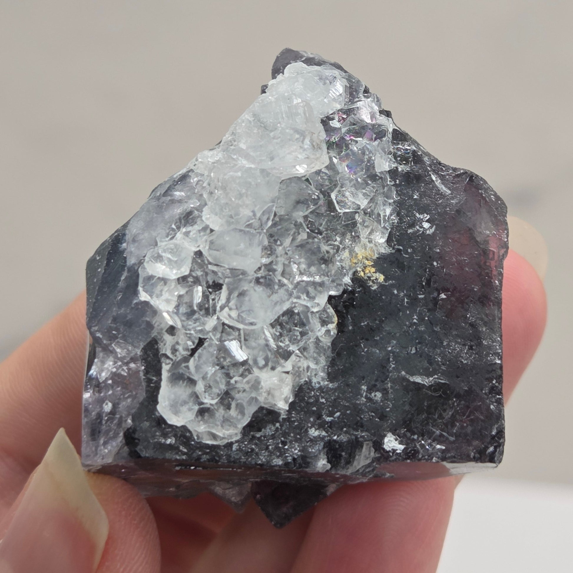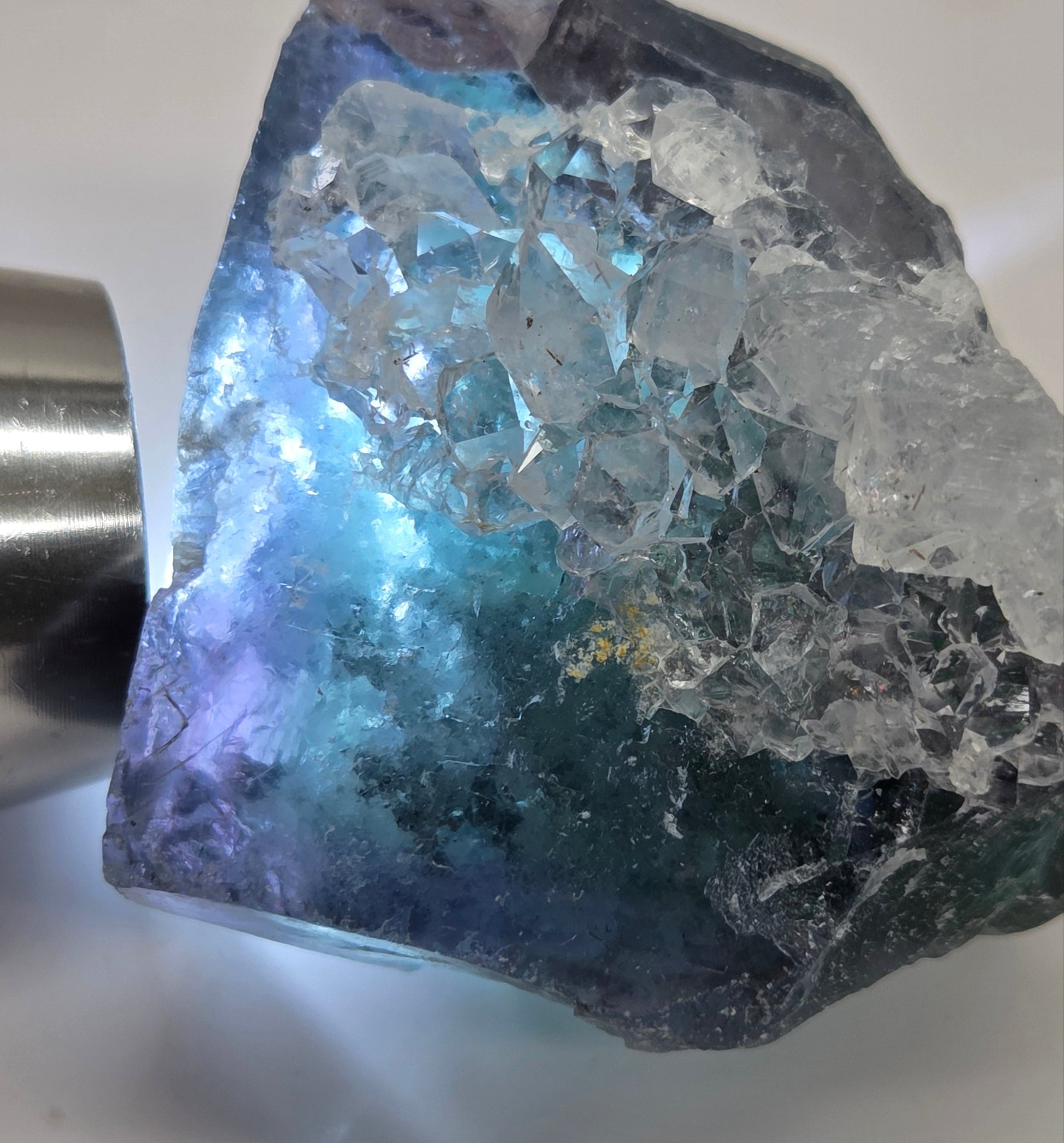 "Daylight fluorite" from China, refers to fluorite crystals, typically from Fujian, China, that exhibit a color-changing property when exposed to different lighting conditions. These crystals display a purple or blue-purple hue indoors, but shift to a more pronounced blue when viewed in sunlight. This phenomenon is due to the fluorite's unique response to the ultraviolet (UV) component of sunlight.