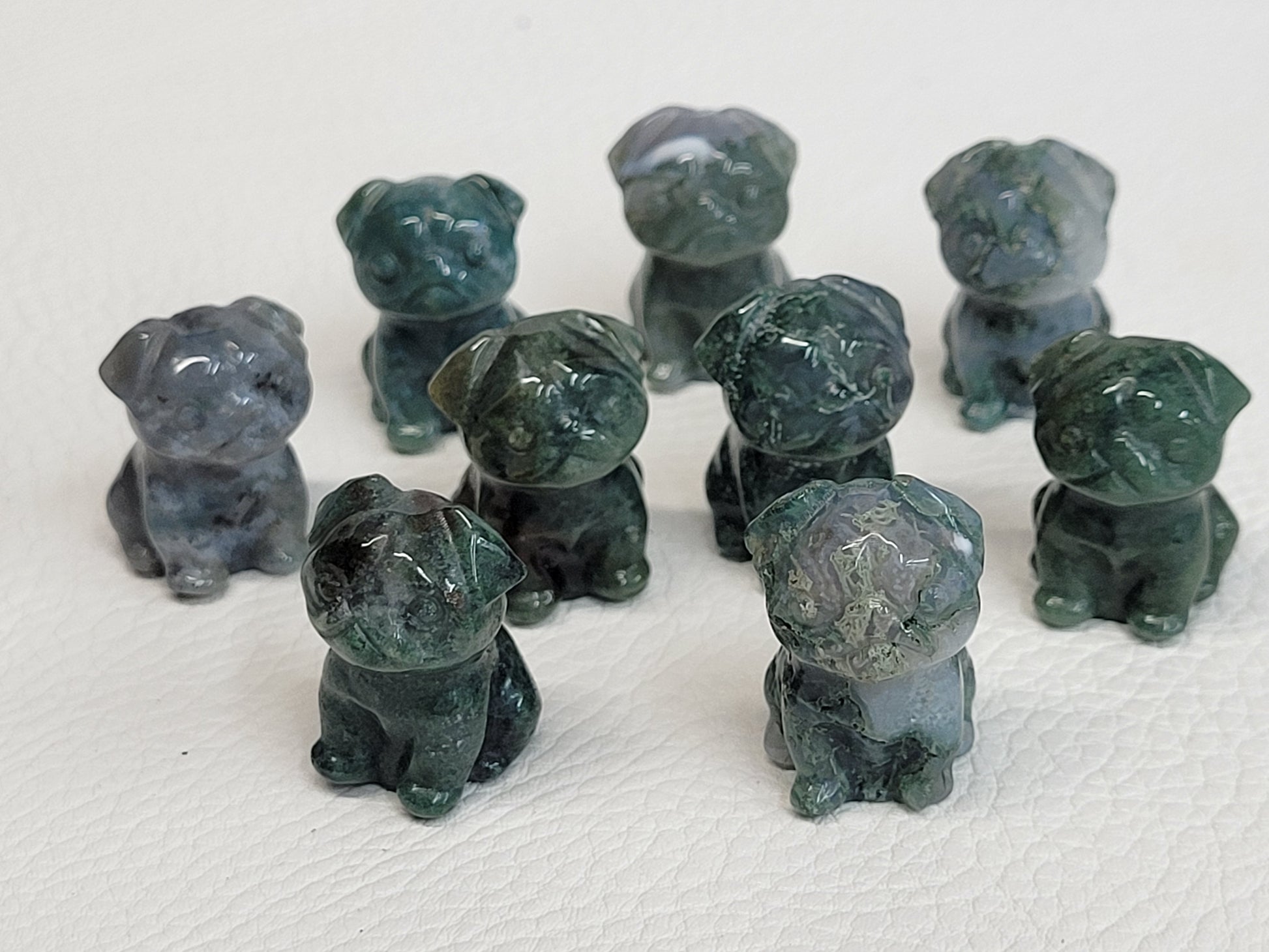 Smaller Pug carvings in a variety of materials. Each pug measures approx. 1.25" tall.