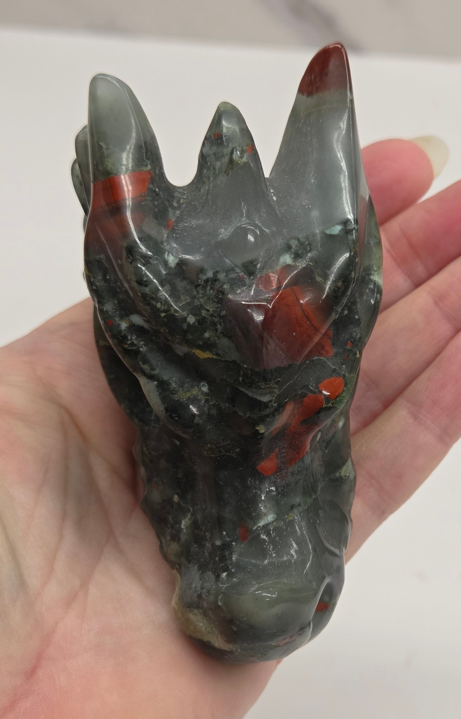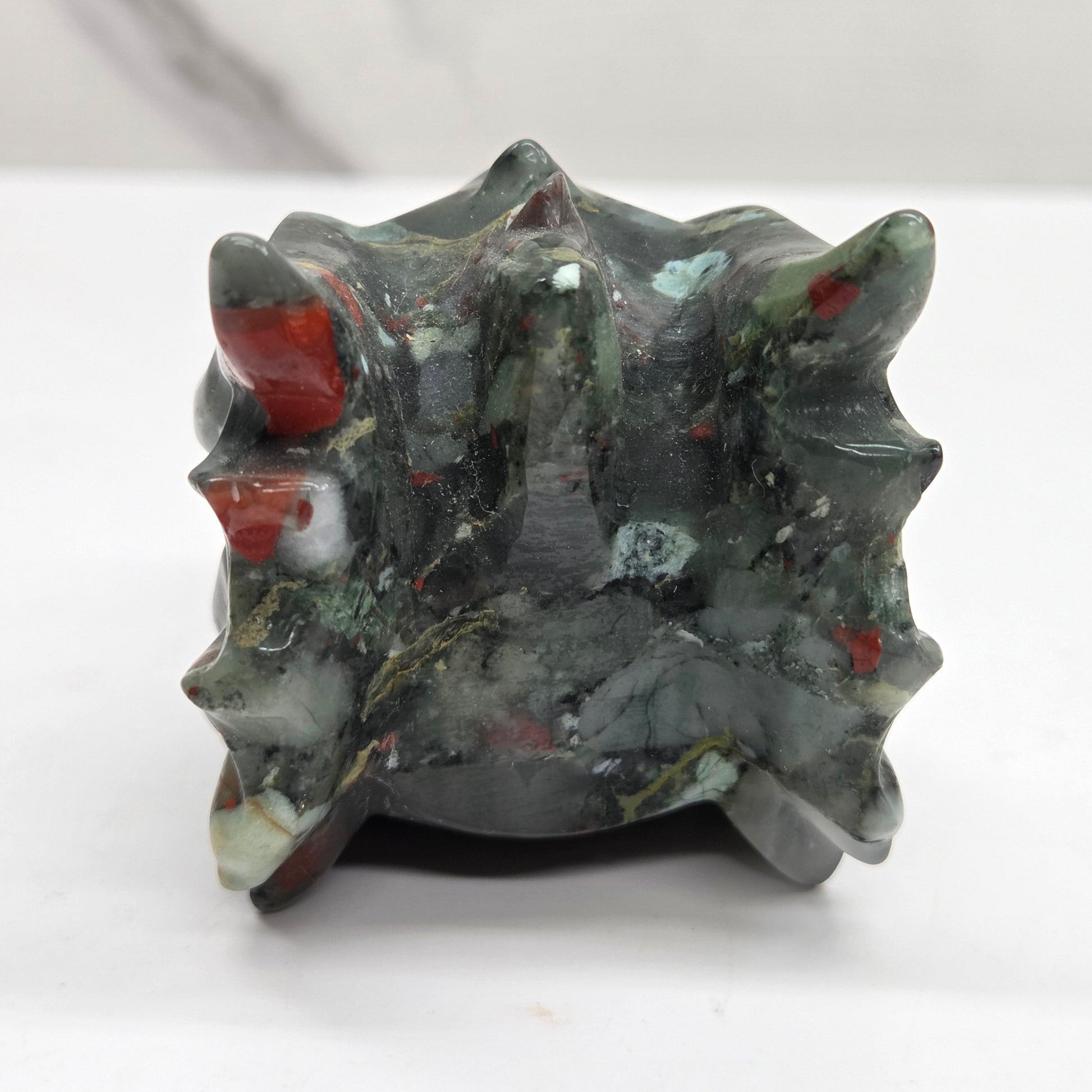 African Bloodstone, also known as setonite, is a type of jasper that gets its distinctive coloring from the presence of iron oxide. It is a variety of deep-green chalcedony, a crypto-crystalline quartz and red jasper flecks.