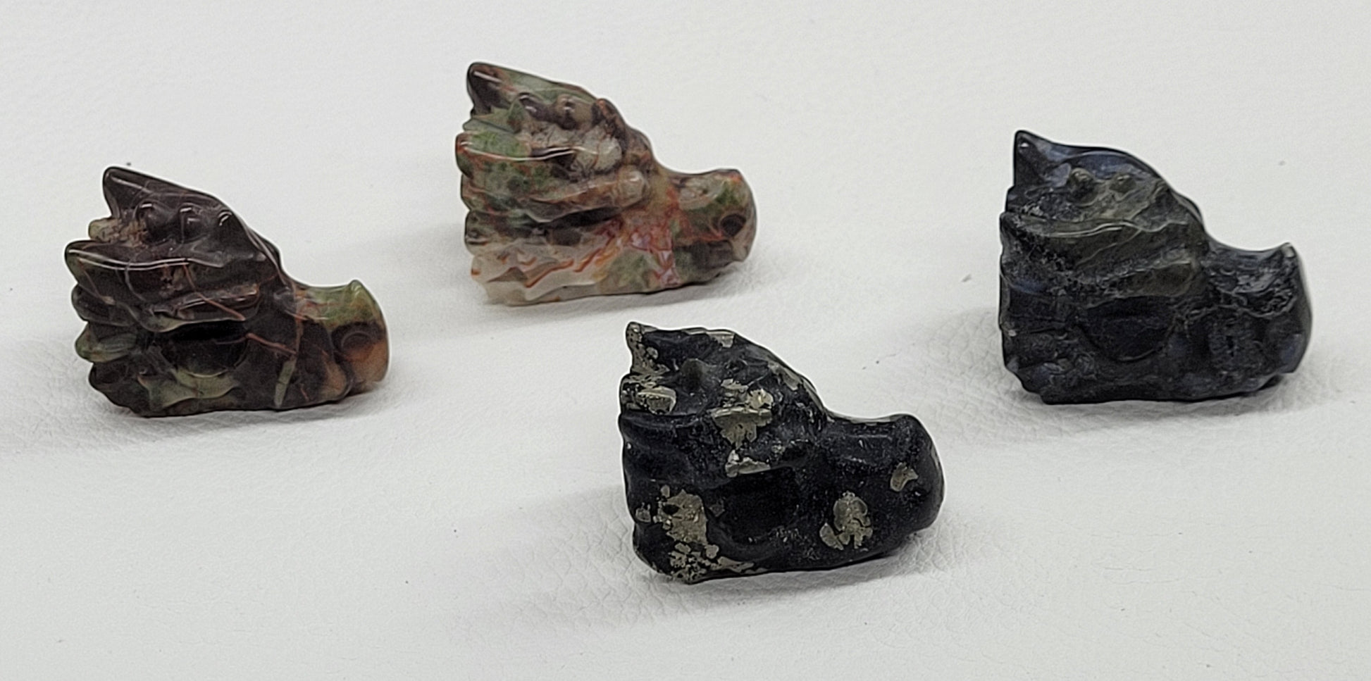 Small/medium size dragon heads in a variety of materials. Each dragon head measures approx. 1" x 1.5"
