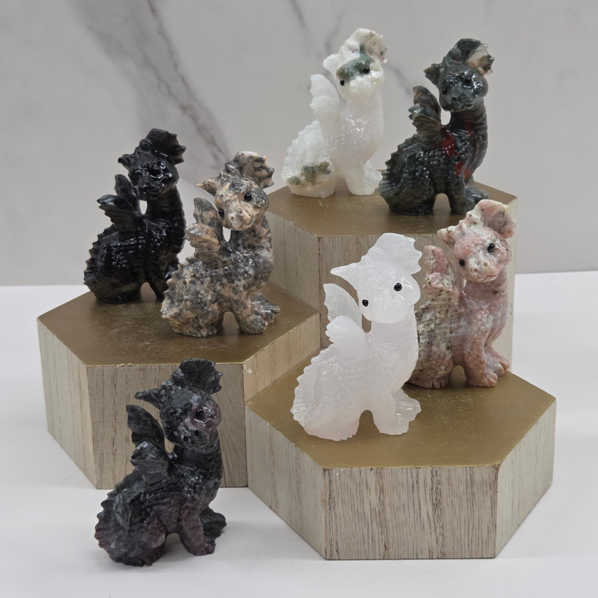 These adorable dragons are side sitting and have the cutest little smiles.