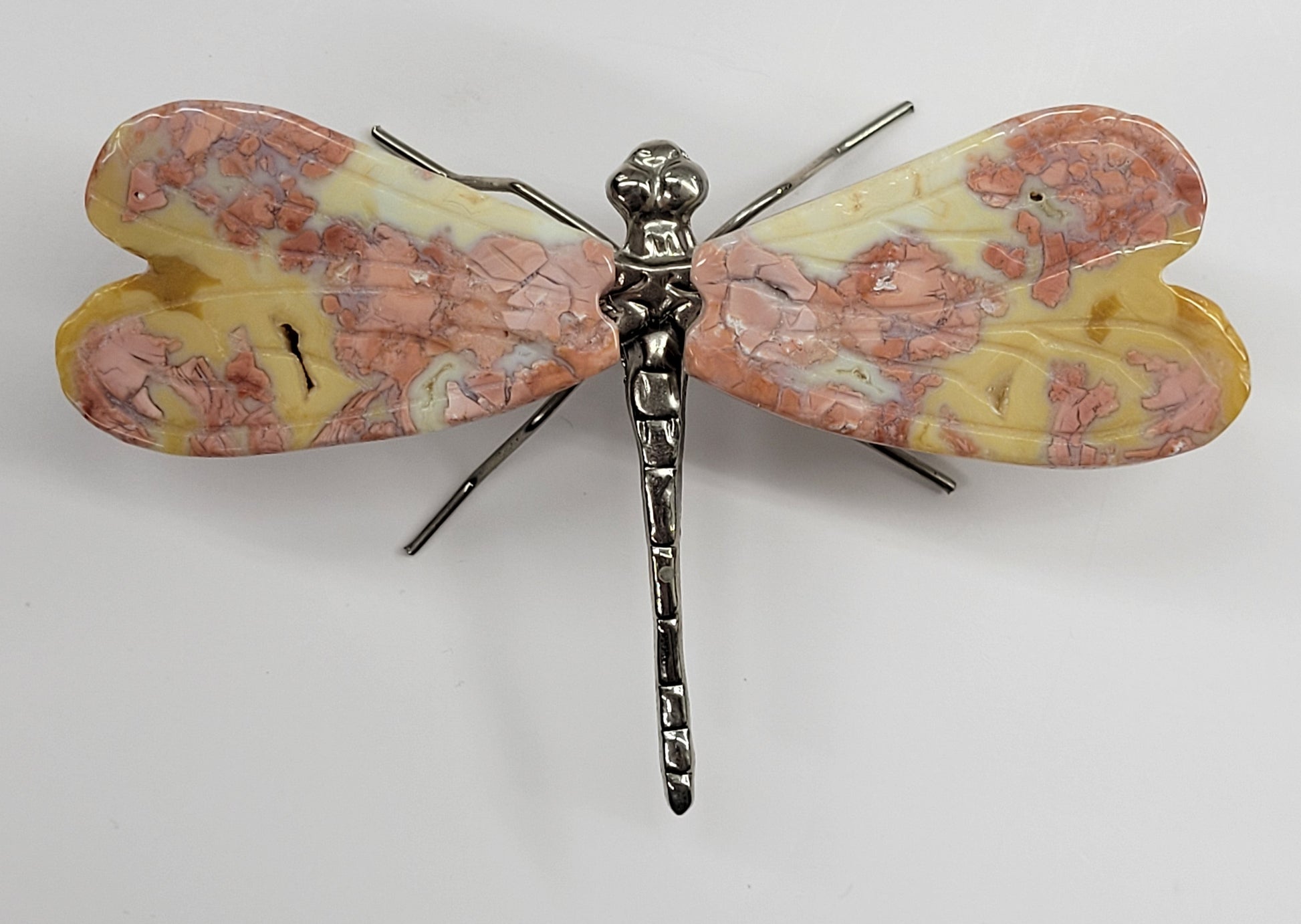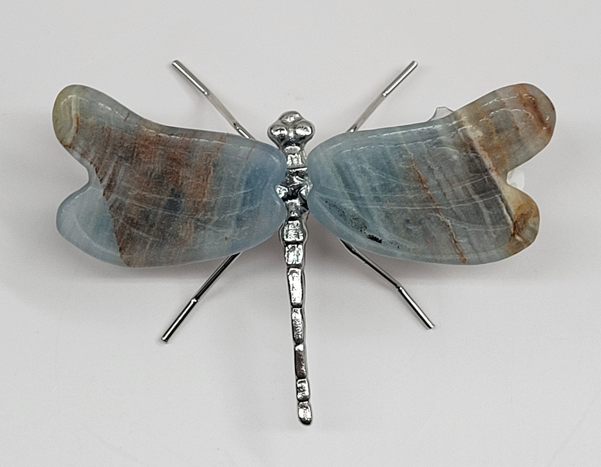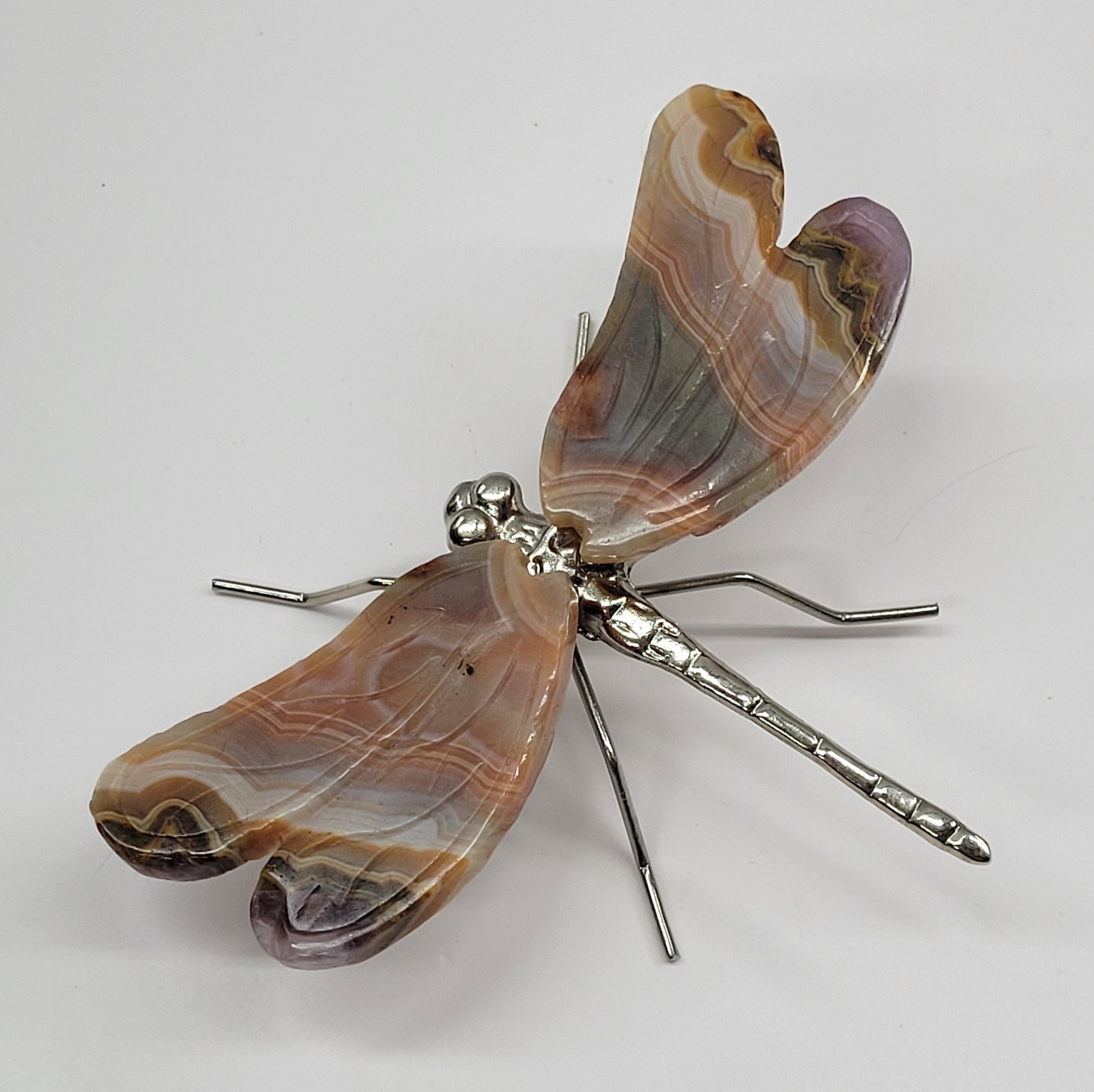 Beautiful dragonflies in a variety of materials. Each dragonfly is on a silver body with crystal wings. Dragonflies measure from 4.25" to 5".