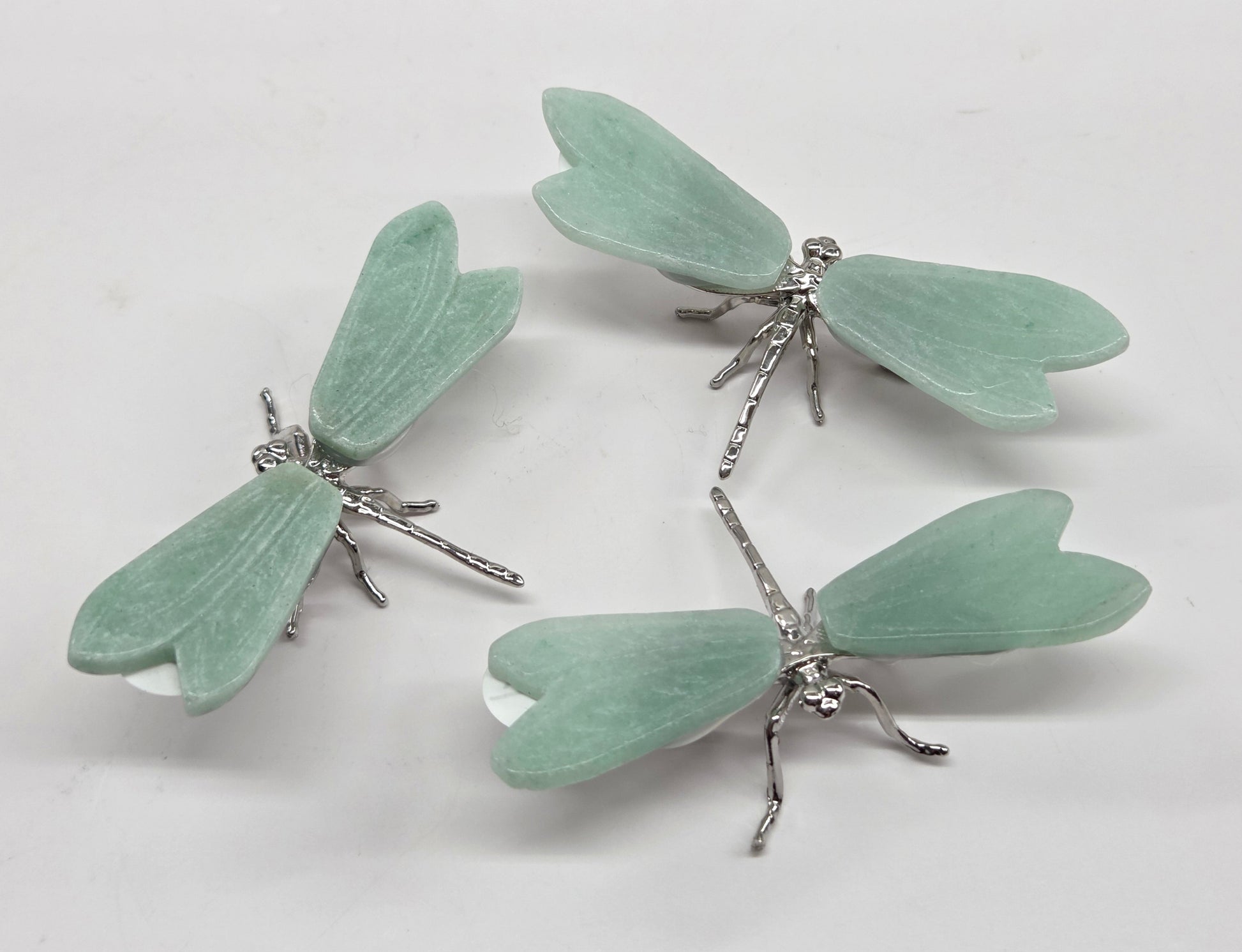 Beautiful dragonflies in a variety of materials. Each dragonfly is on a silver body with crystal wings. Dragonflies measure 3"