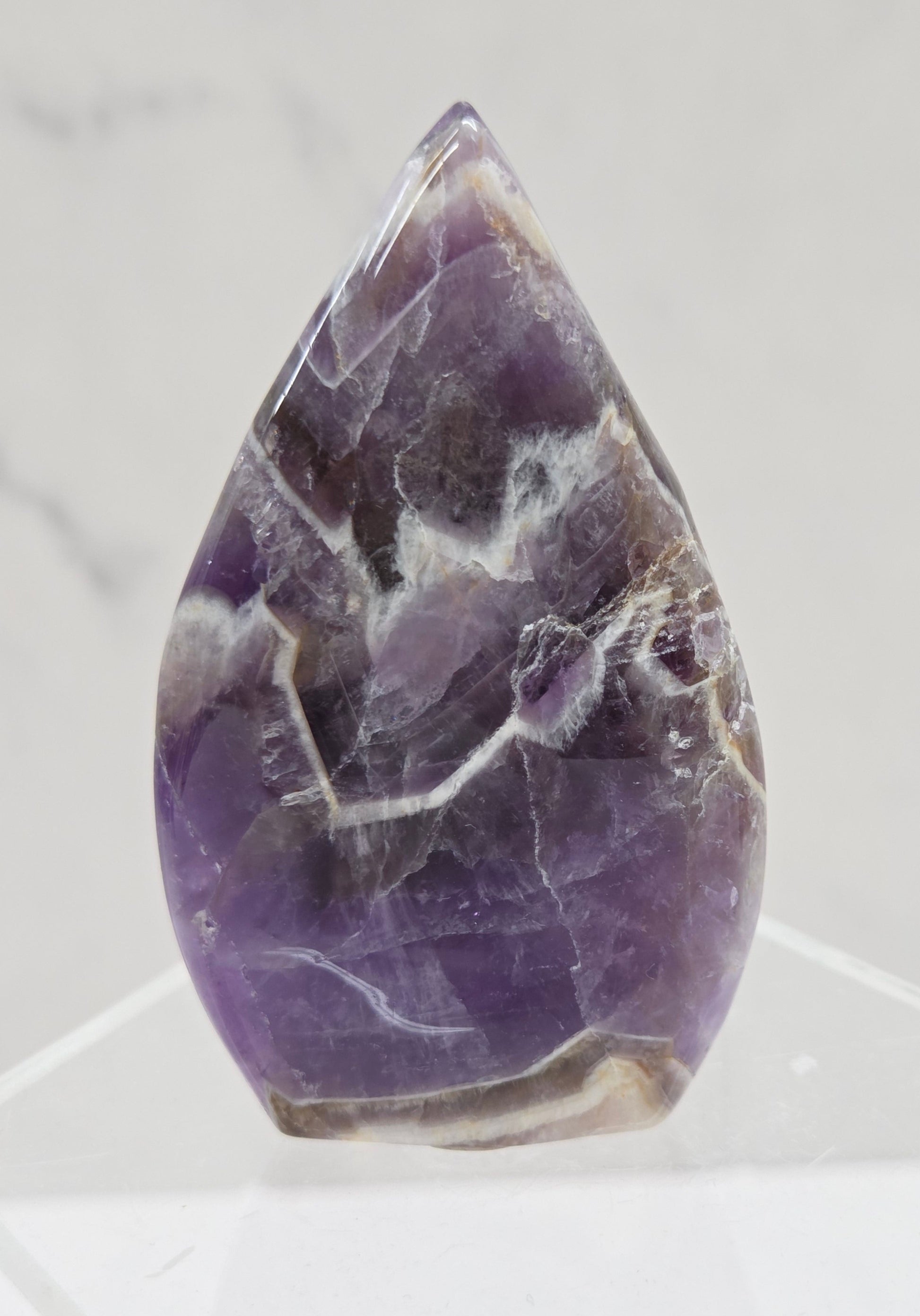 Dream Amethyst is a mix of Amethyst and White Quartz in a V-striped or banded pattern.