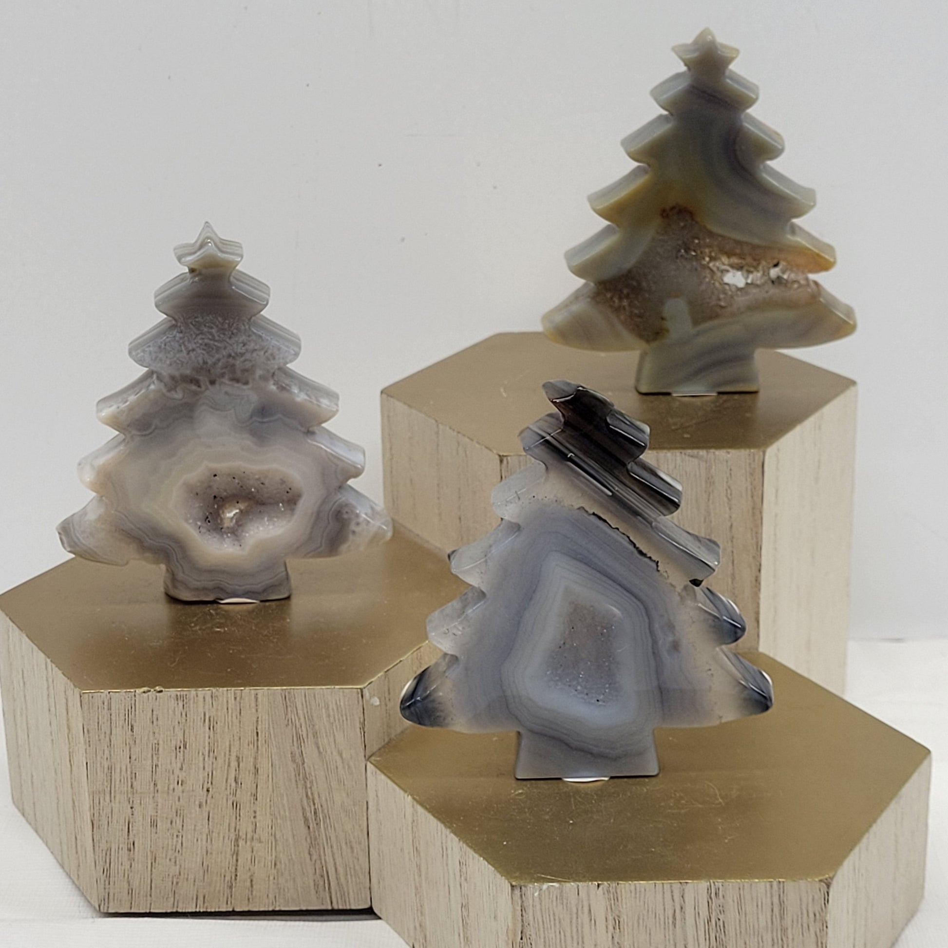 Beautiful selection of Drusy Agate Christmas tree carvings.