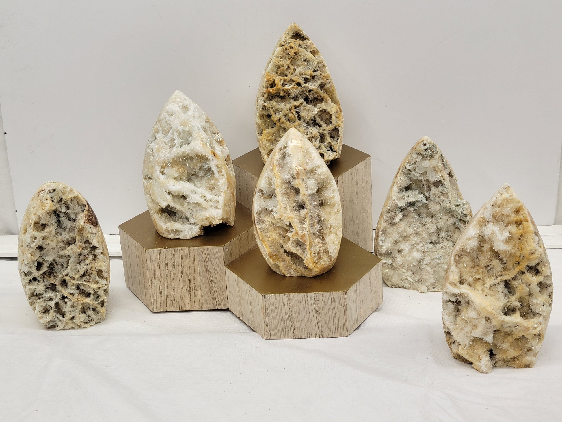 Beautiful Calcite & Quartz free forms from Indonesia.